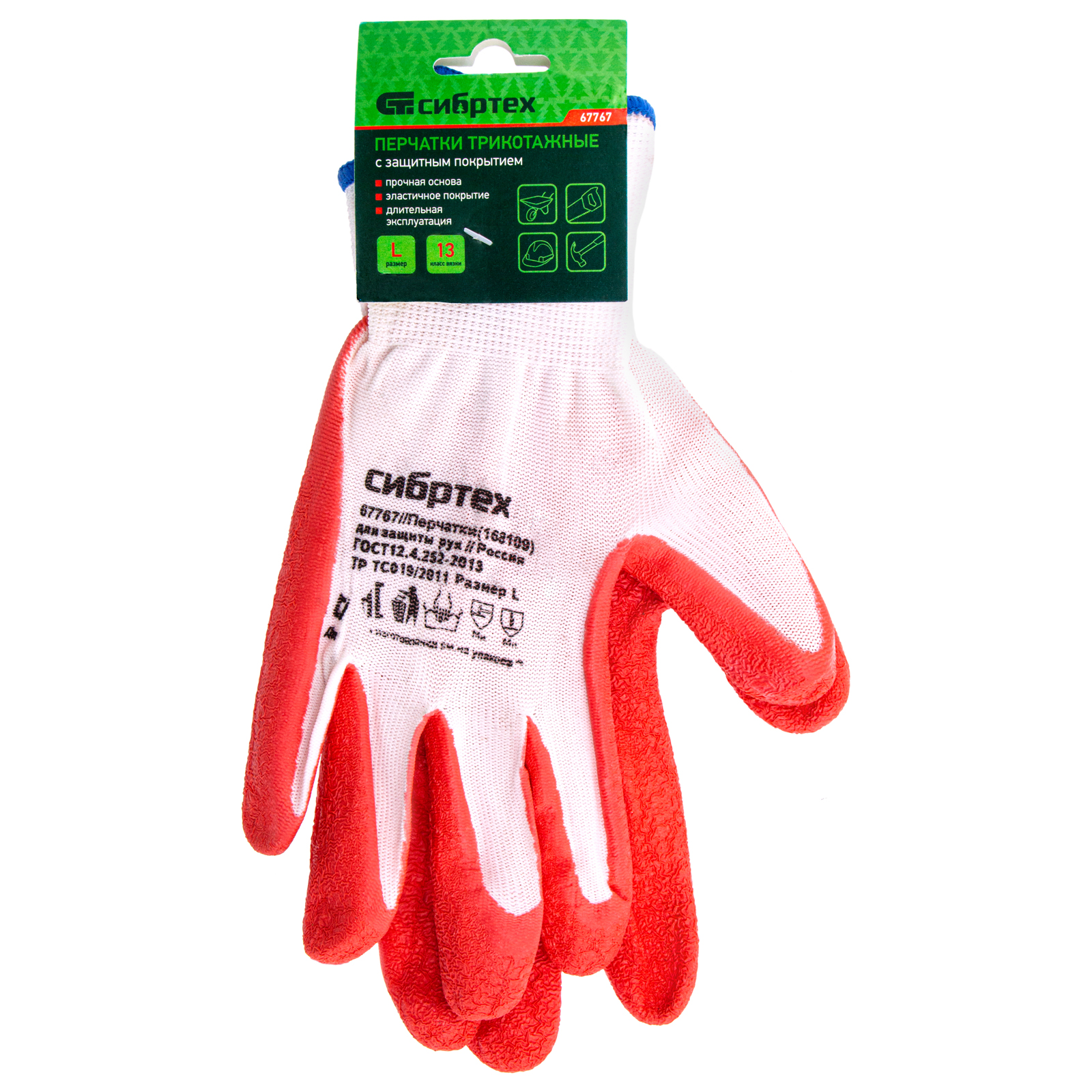 Полиэфирные перчатки Сибртех 67767 15 класса вязки, с рельефным покрытием из натурального латекса, весом 57 г, защищают руки от мозолей, ссадин, порезов и царапин. Изготовлены из тонкой, но плотной эластичной пряжи 15 класса вязки, поэтому не стесняют движений, устойчивы к истиранию и выдерживают длительную эксплуатацию. Будут полезны во время строительства и ремонта, а также пригодятся в хозяйстве.