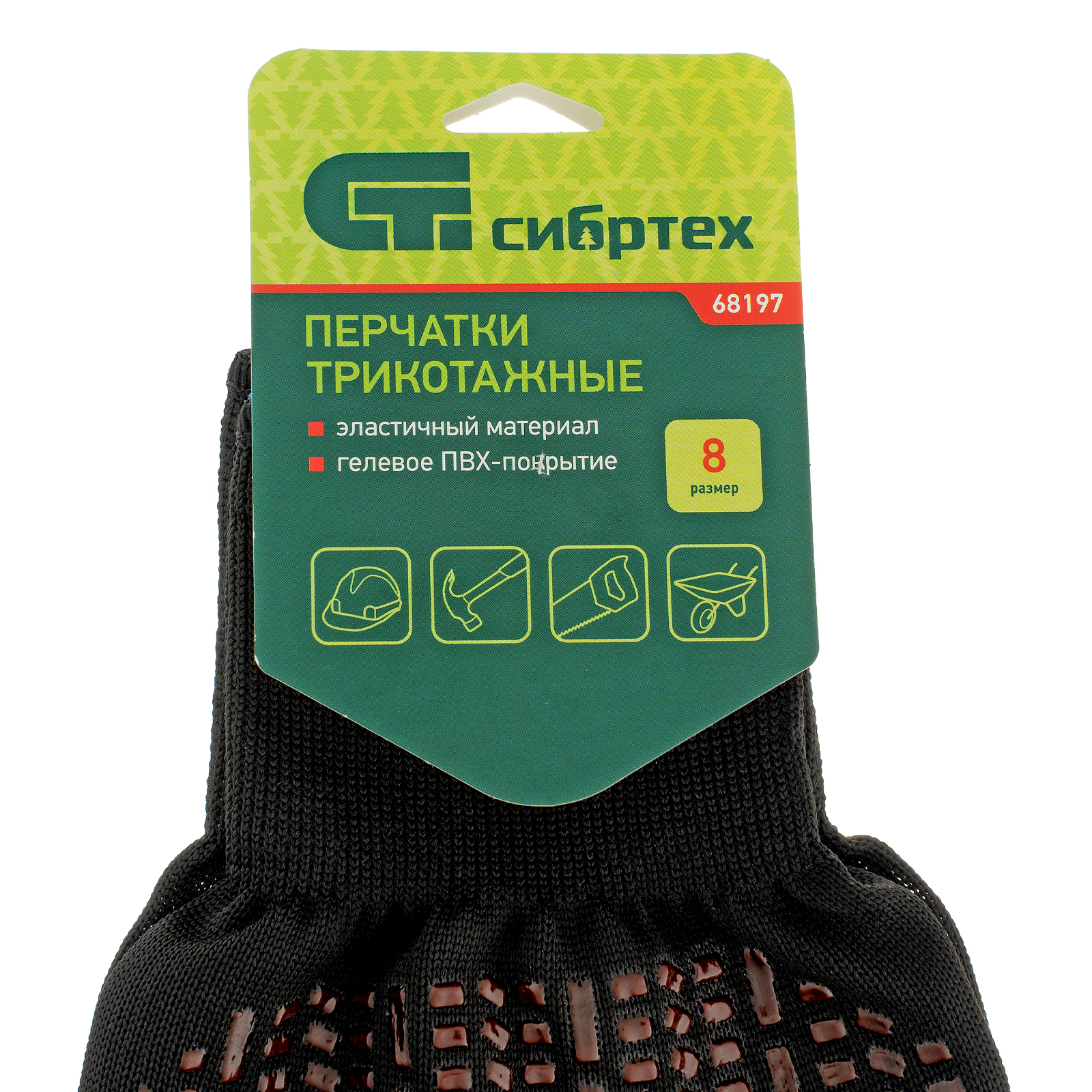 Трикотажные перчатки Сибртех 68197 черного цвета, размера L, из синтетической пряжи 13 класса вязки, с ПВХ-покрытием «Точка», предназначены для защиты рук от травм и общепроизводственных загрязнений. Сохраняют чувствительность пальцев во время ремонтных, строительных и монтажных работ.