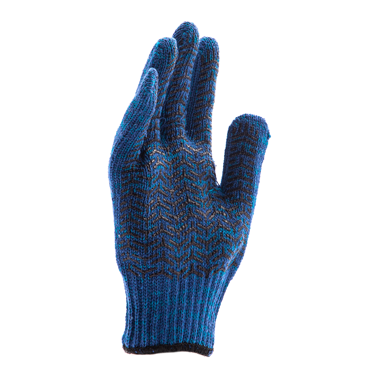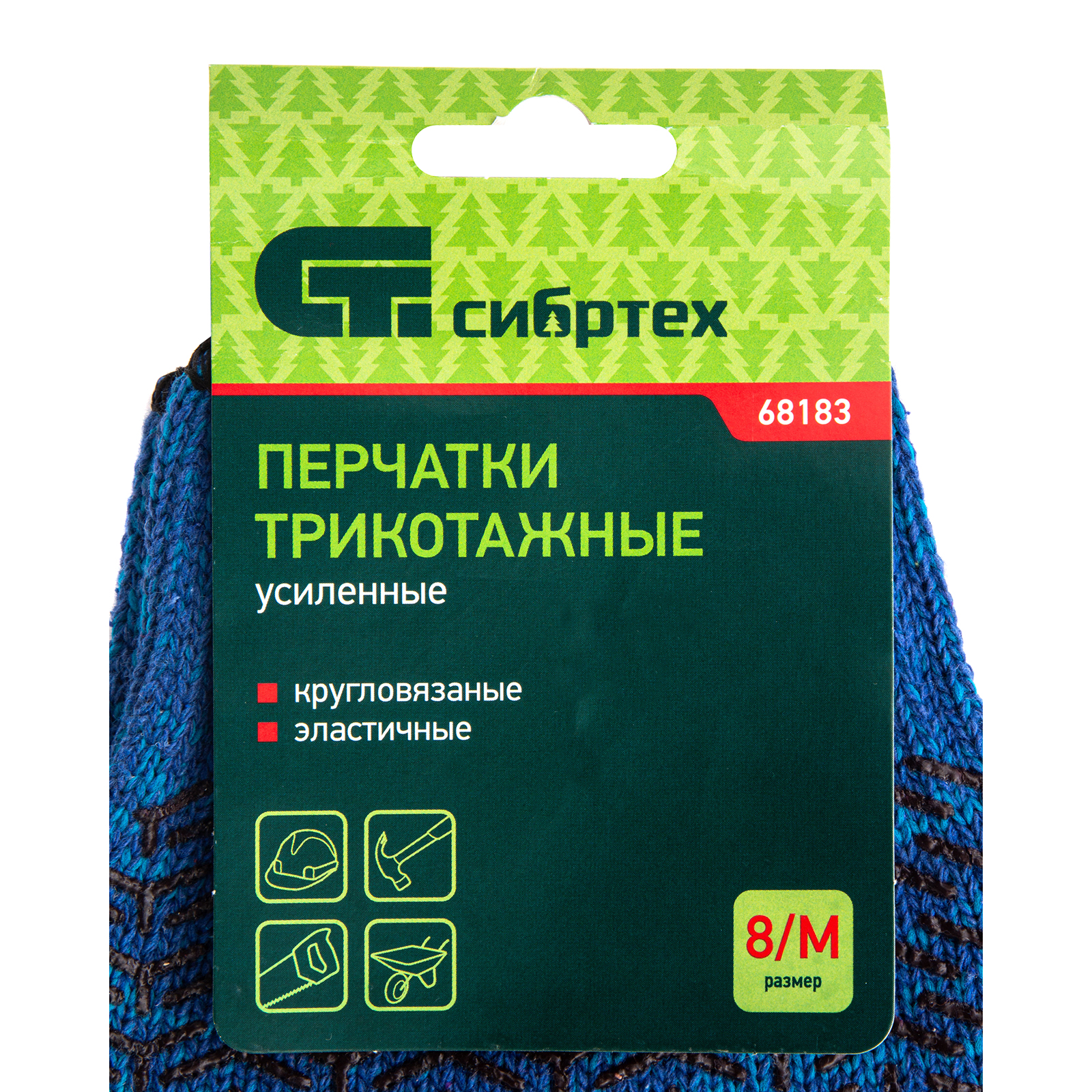 Усиленные трикотажные перчатки Сибртех 68183, синие, с гелевым ПВХ-покрытием, 7 класса вязки, надевают на руки при выполнении тяжелых строительных, монтажных, ремонтных, сборочных и погрузо-разгрузочных работ. Толстая эластичная пряжа надежно защищает кисти рук от травм и попадания грязи, не препятствуя движениям пальцев. Нанесенный на ладонную сторону ПВХ-гель исключает скольжение и способствует надежному захвату инструментов и других предметов.