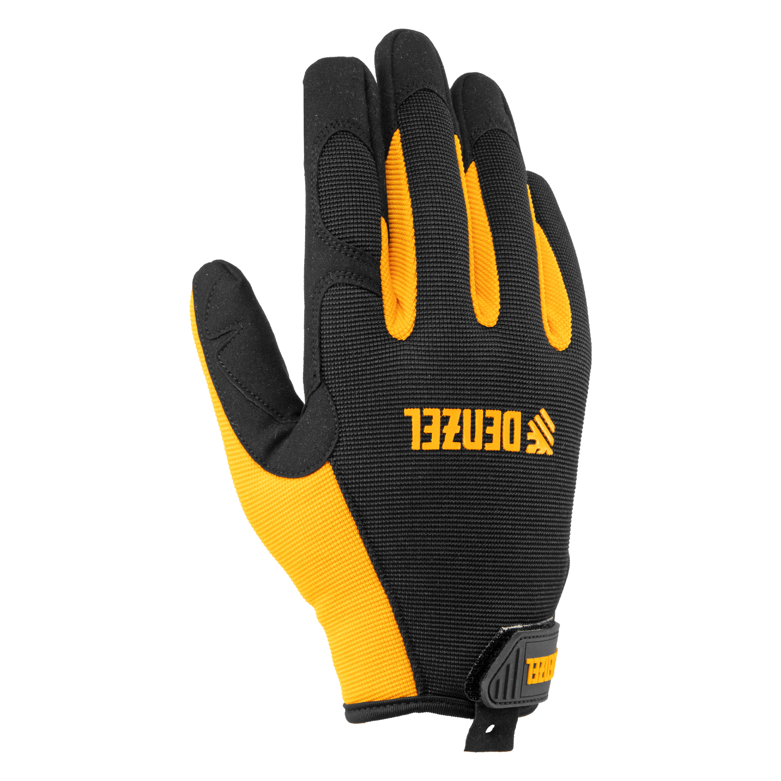 Универсальные перчатки Denzel 67994 размера 10, с манжетами на «липучке», используются для работы со слесарным инструментом. Надежно защищают кожу рук от царапин и мозолей. Пригодятся в мастерской, дома или в гараже.