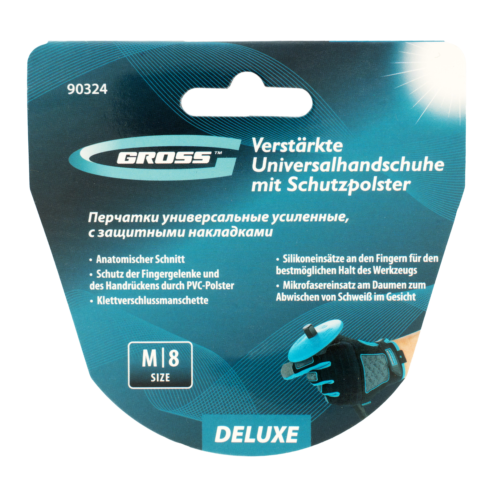 Универсальные усиленные перчатки Gross DELUXE 90324 с защитными накладками, размера M (8), служат для защиты рук от механических повреждений и образования мозолей. Тонкие и износостойкие защитные накладки из ПВХ на тыльной стороне ладони и пальцах дополнительно предохраняют руки от механических повреждений. Формованные накладки на ладонях препятствуют появлению синяков и ссадин. Изделия могут использоваться при проведении строительных и ремонтных работ, а также во время занятий спортом или активного отдыха.
