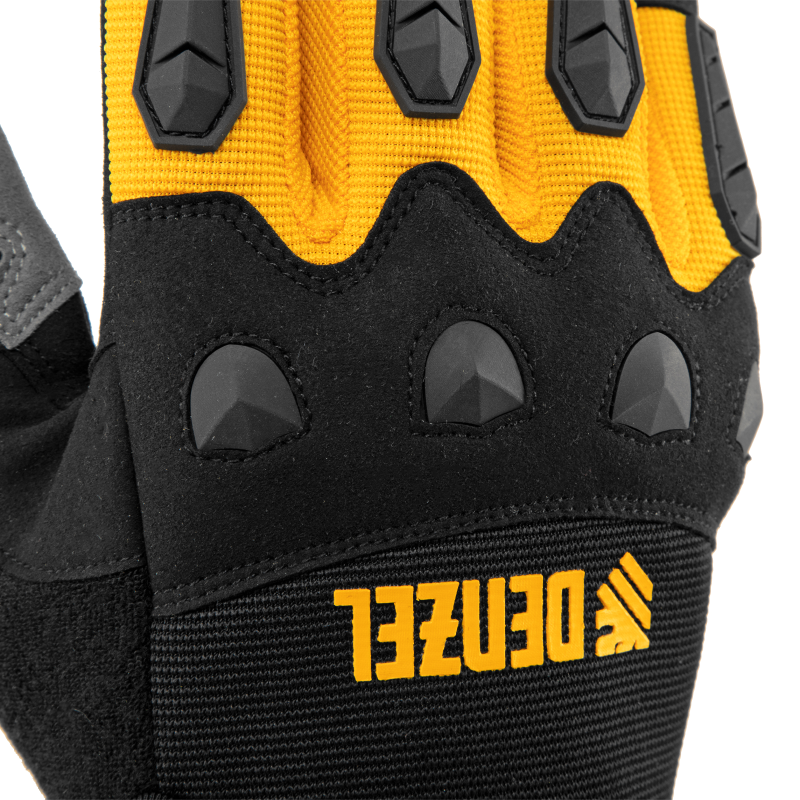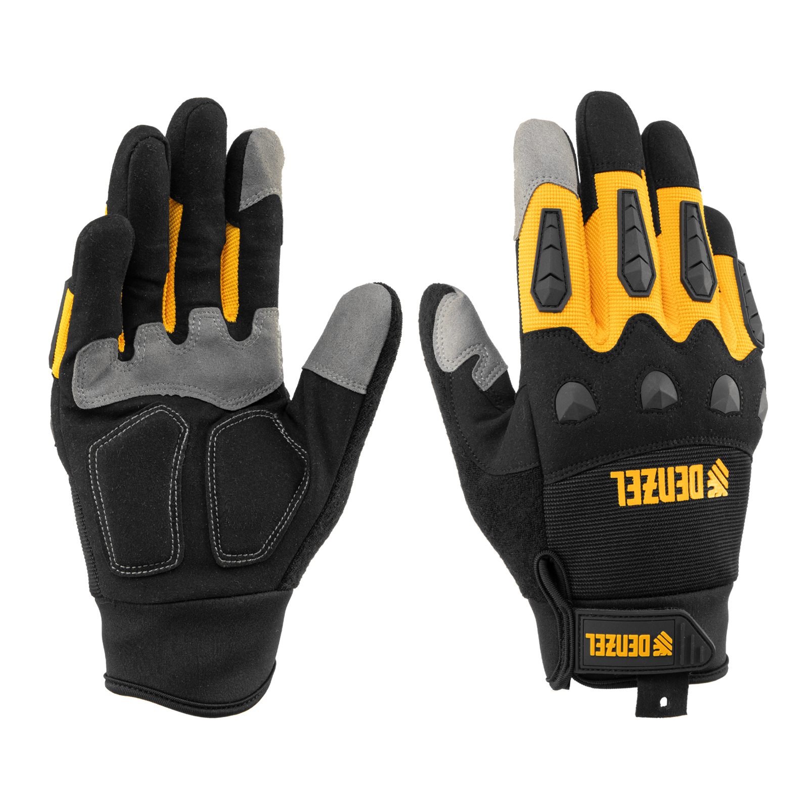 Универсальные усиленные перчатки Denzel 68003 размера 10, с защитными накладками, предотвращают появление царапин и мозолей во время работы с ручным инструментом. Анатомически скроенные, они плотно облегают кисти рук, не сковывая движения пальцев. Перчатки используются при выполнении строительных, ремонтных, слесарных и столярных работ.