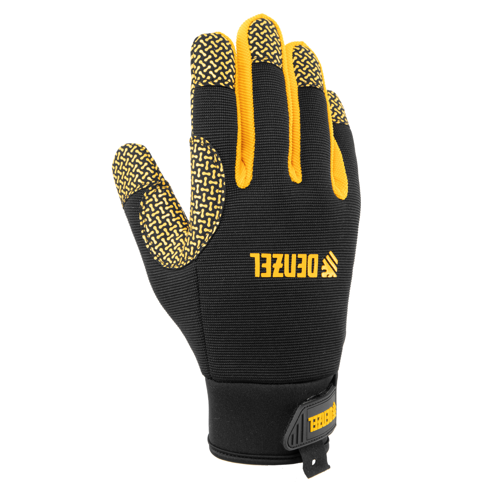Универсальные перчатки Denzel 67999 размера 9, с силиконовым нанесением, предназначены для защиты кожи рук от механических повреждений. Используются во время слесарных и столярных работ.