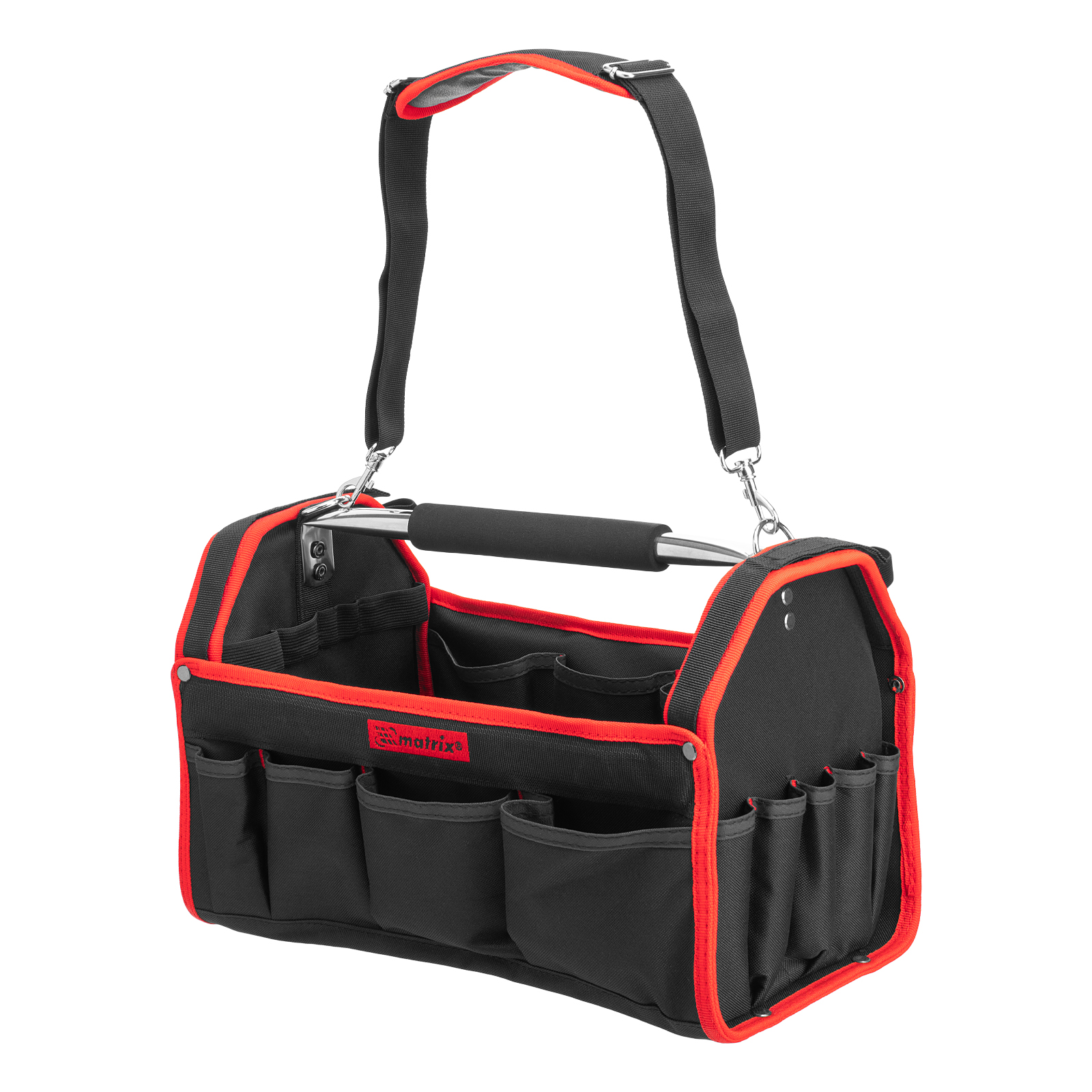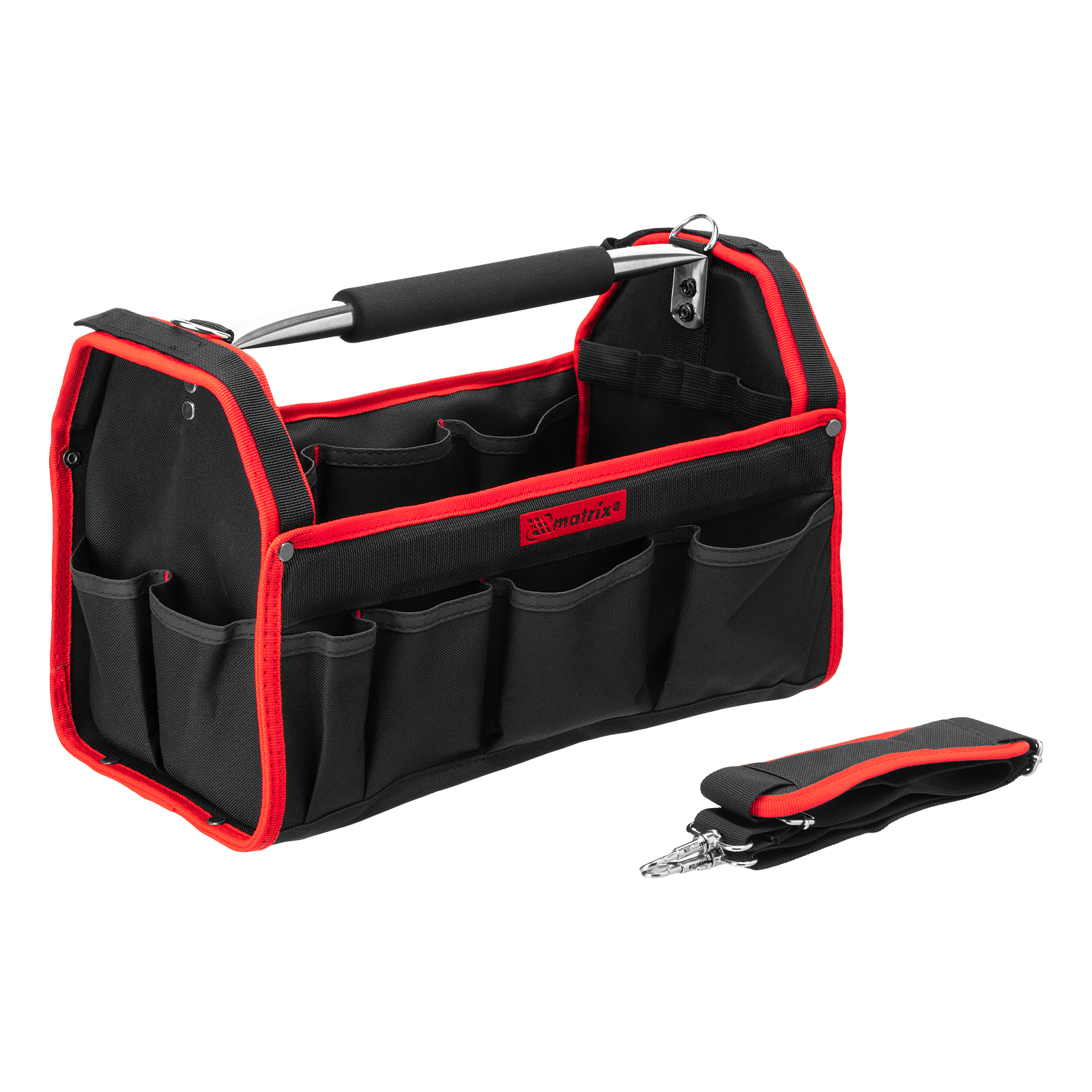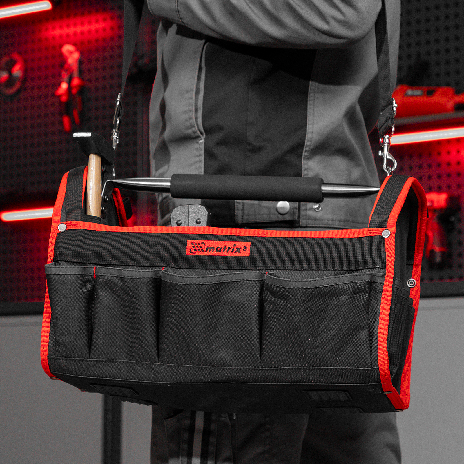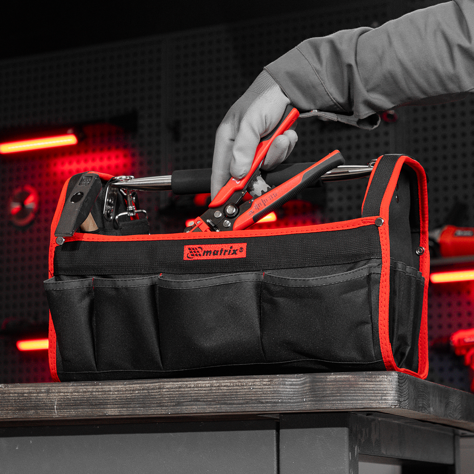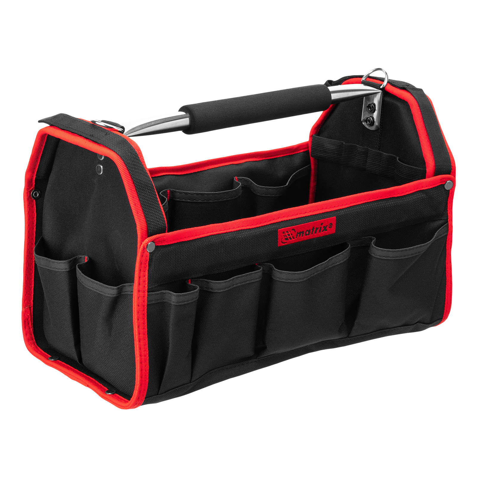 Каркасная переноска Matrix 90257 размером 415 х 230 х 260 мм удобна для перемещения и хранения инструментов. Имеет прочный каркас и весит 1,35 кг, ее легко переносить благодаря регулируемому плечевому ремню. В удобных карманах можно расположить все необходимые инструменты. Переноска пригодится дома, в гараже или в поездке.