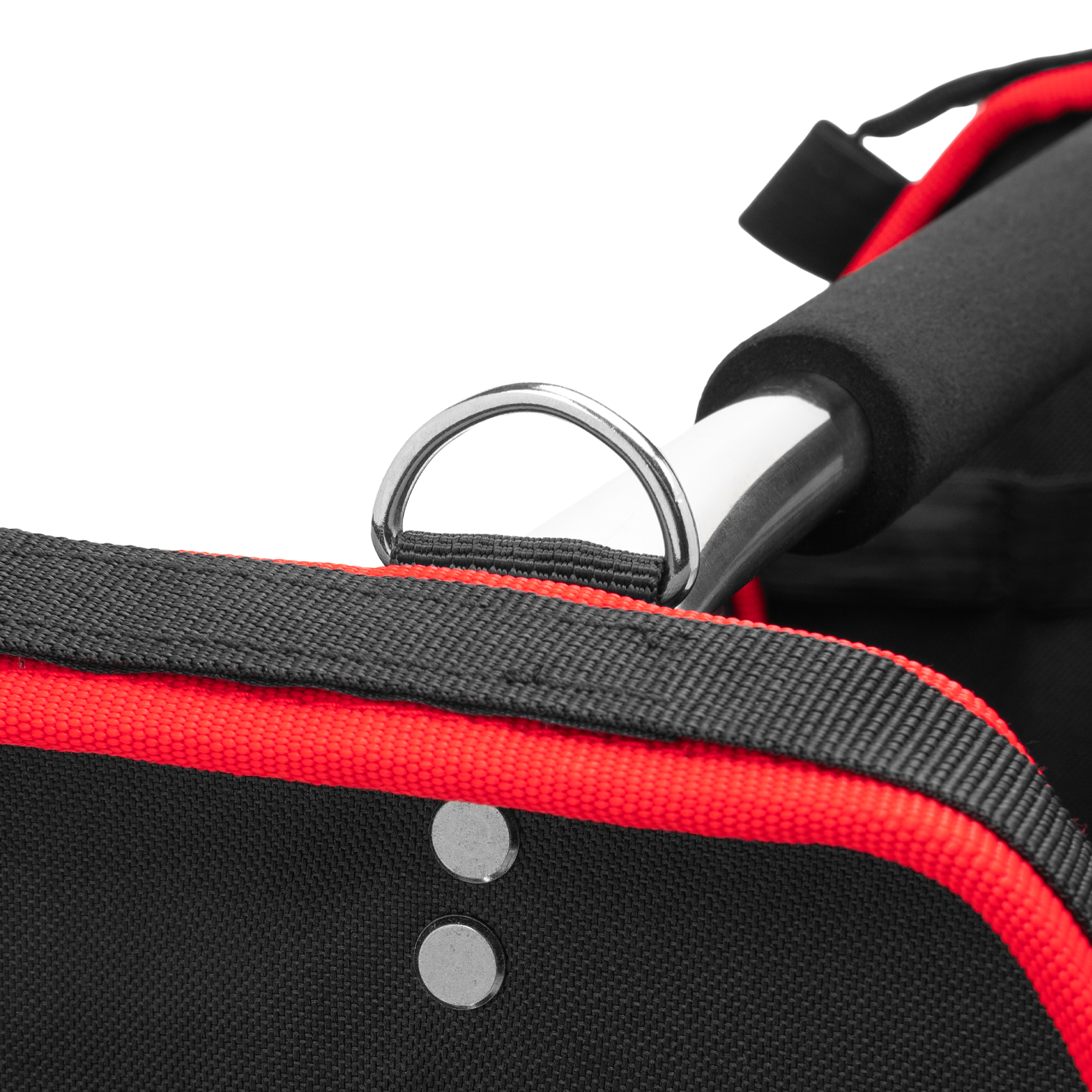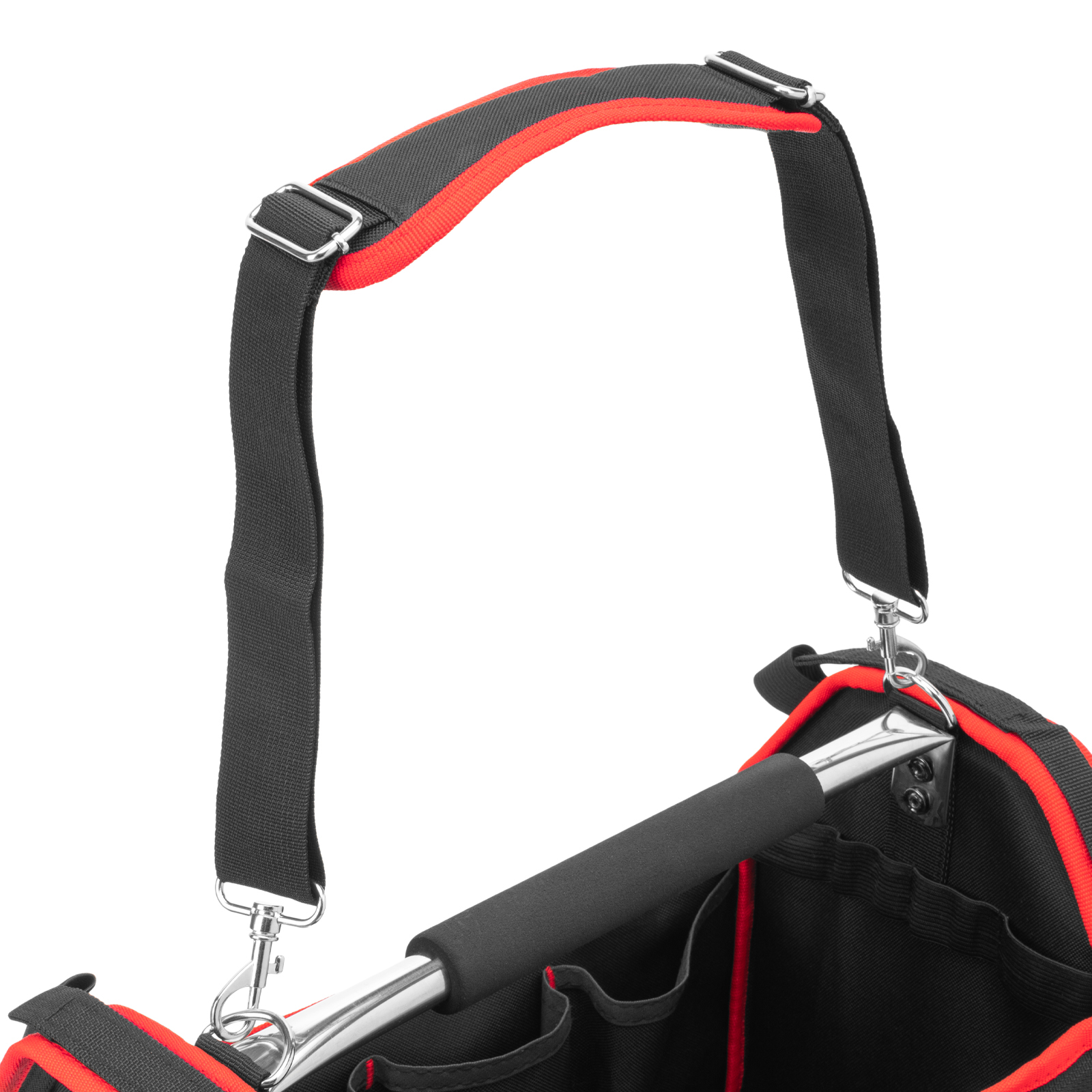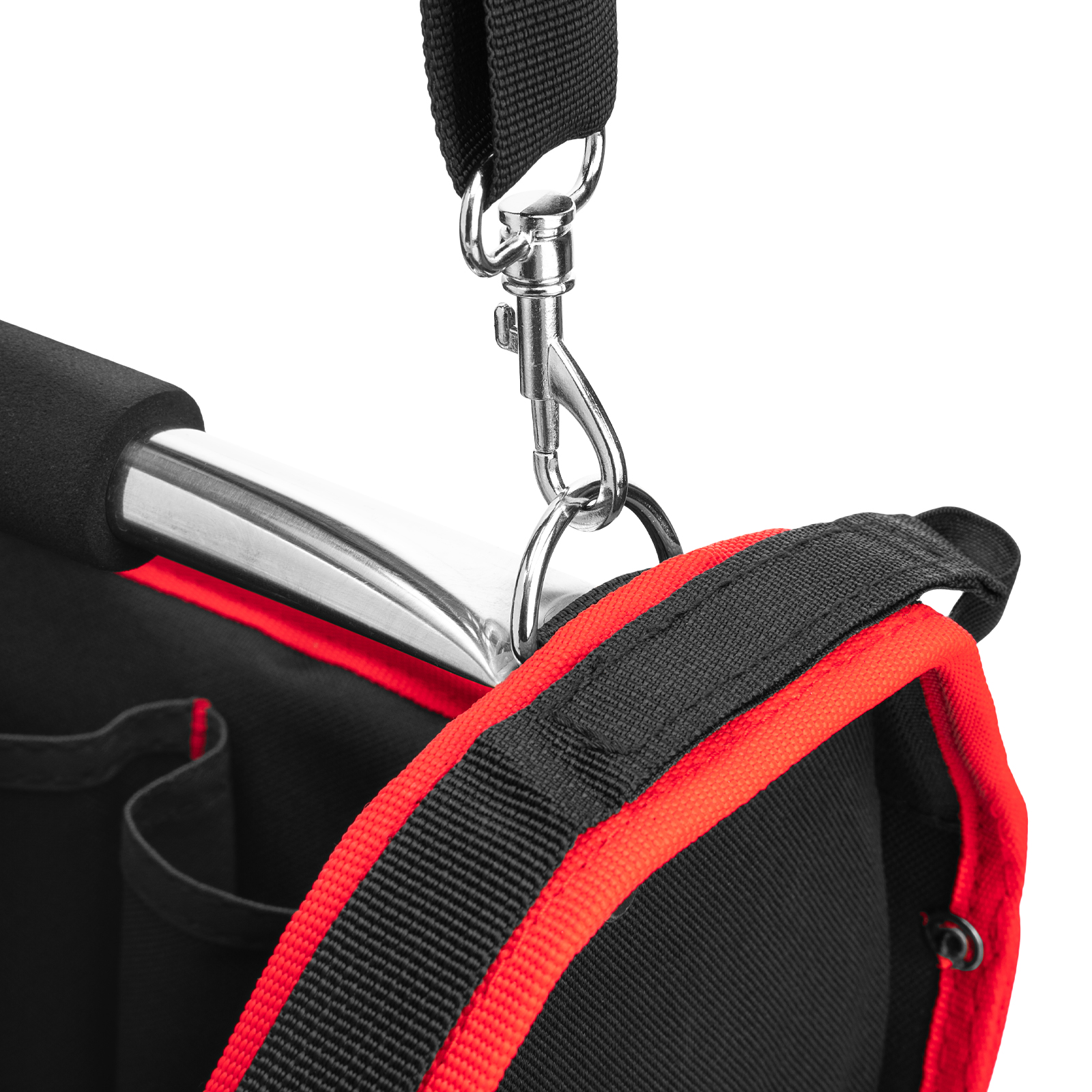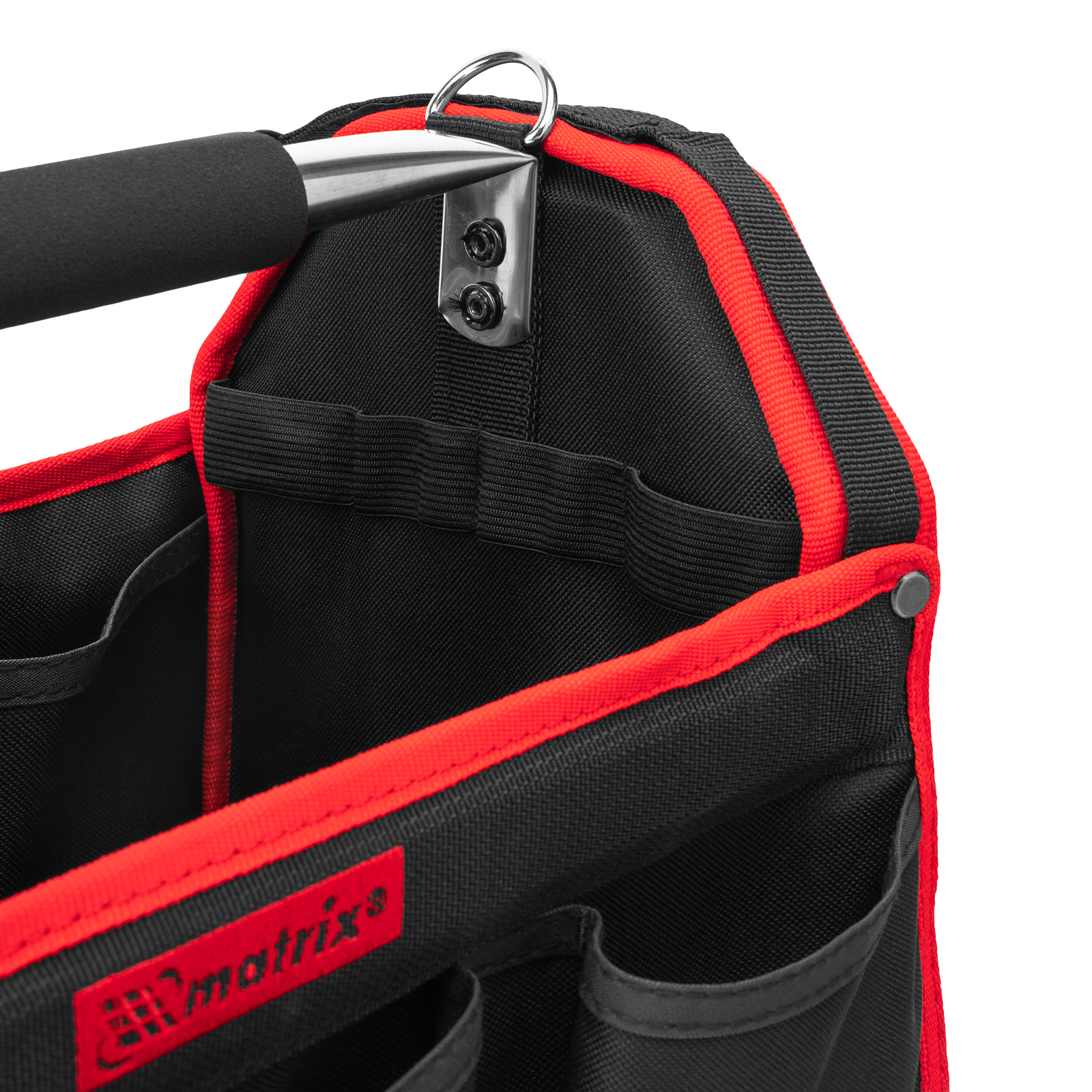 Каркасная переноска Matrix 90257 размером 415 х 230 х 260 мм удобна для перемещения и хранения инструментов. Имеет прочный каркас и весит 1,35 кг, ее легко переносить благодаря регулируемому плечевому ремню. В удобных карманах можно расположить все необходимые инструменты. Переноска пригодится дома, в гараже или в поездке.