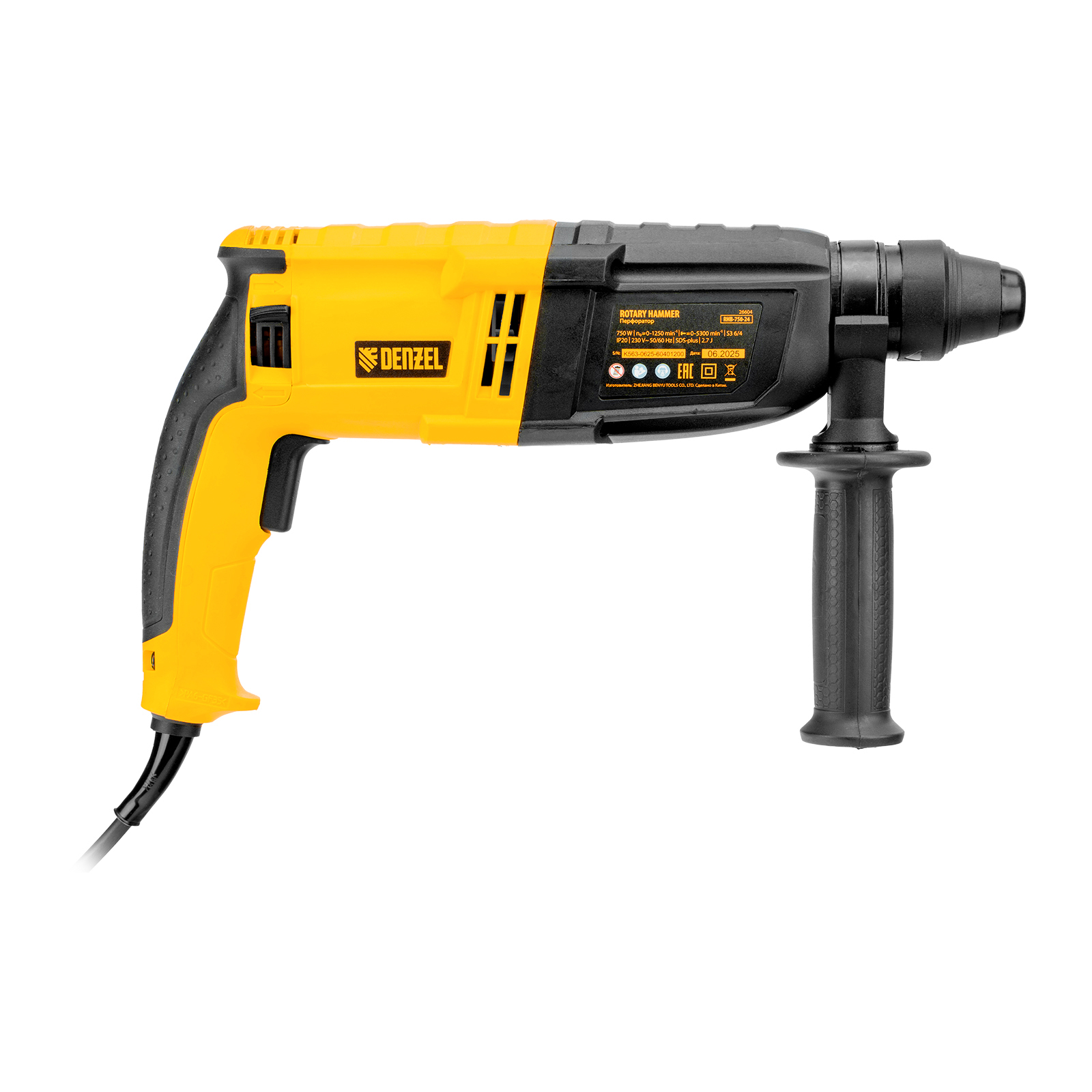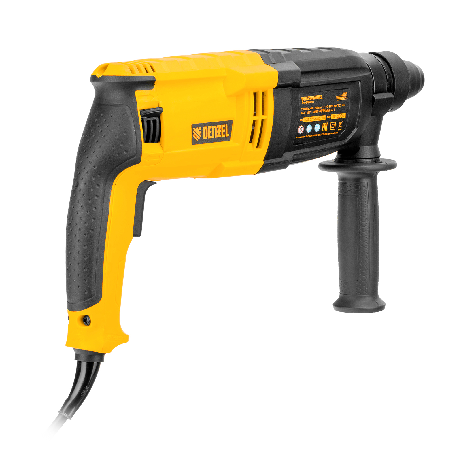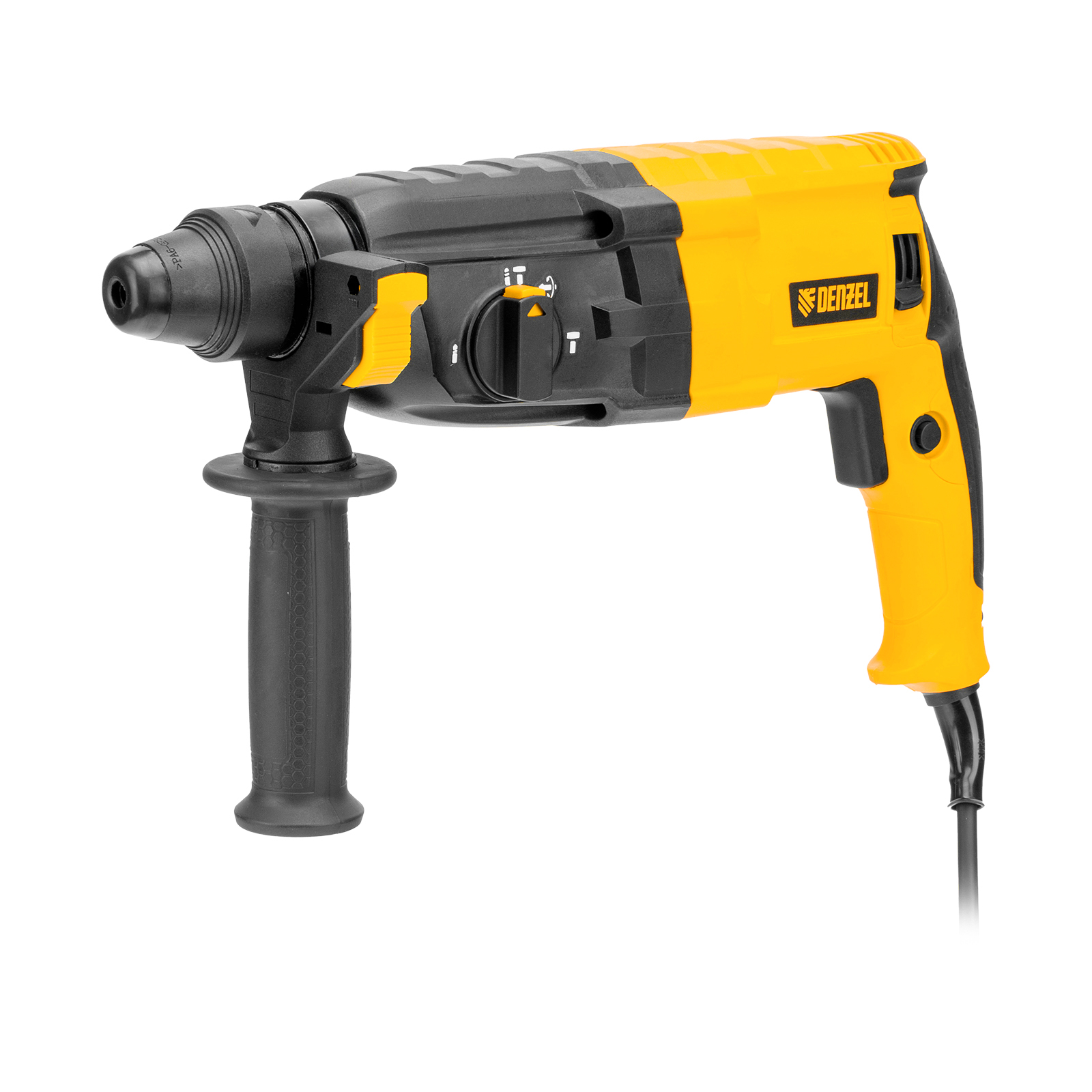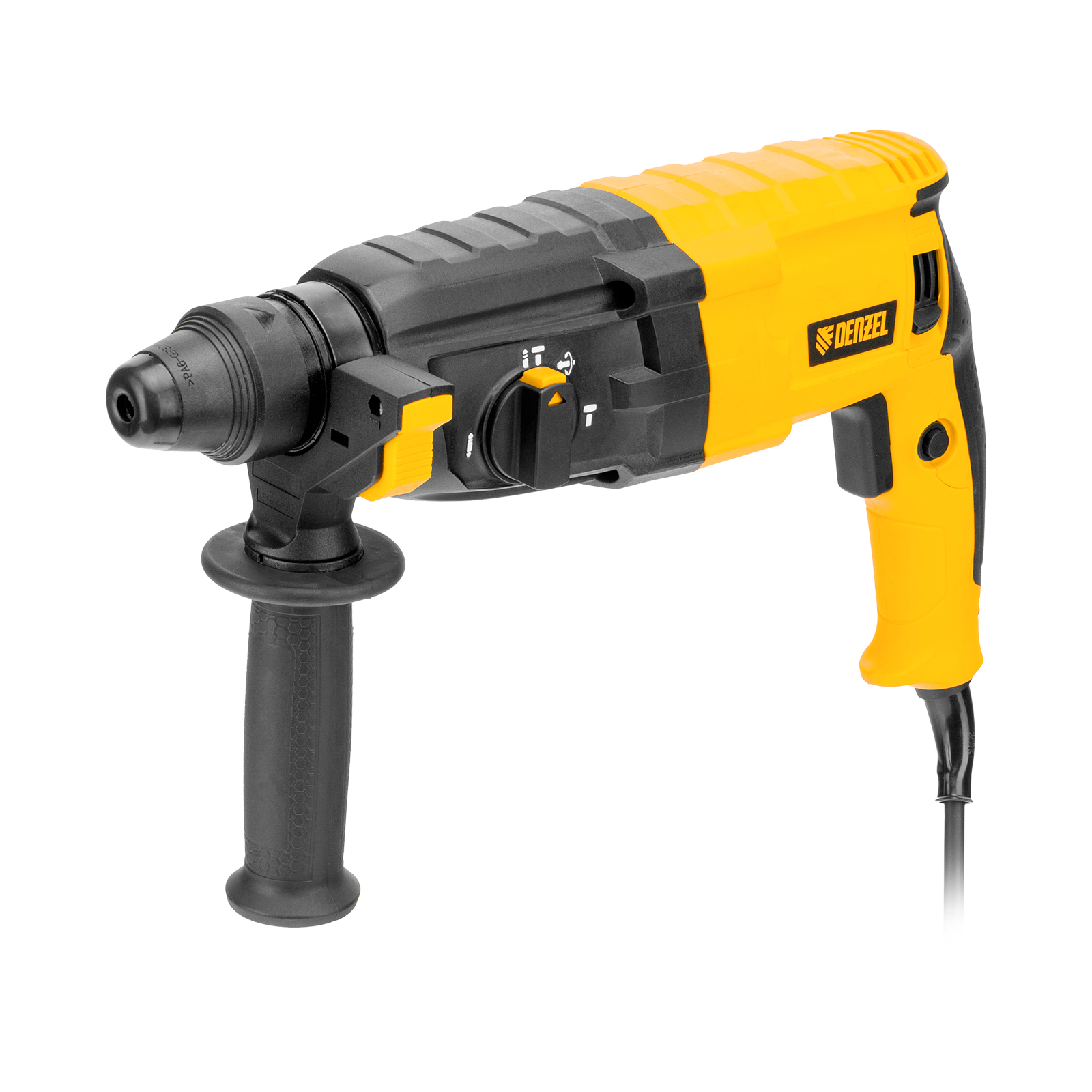 Электрический перфоратор Denzel RHB-750-24 26604 мощностью 750 Вт предназначен для оснастки с хвостовиком SDS Plus, имеет энергию удара 2,7 Дж и работает в одном из 3 режимов (сверление, бурение, долбление) + функция изменения положения долота. Позволяет сверлить отверстия, бурить кирпичную кладку, камень и бетон, штробить стены, удалять старые покрытия (плитку), проводить демонтажные работы. Максимальный диаметр сверления в бетоне составляет 24 мм, в древесине — 30 мм, стали — 13 мм. Также перфоратор совместим с коронками диаметром до 68 мм.