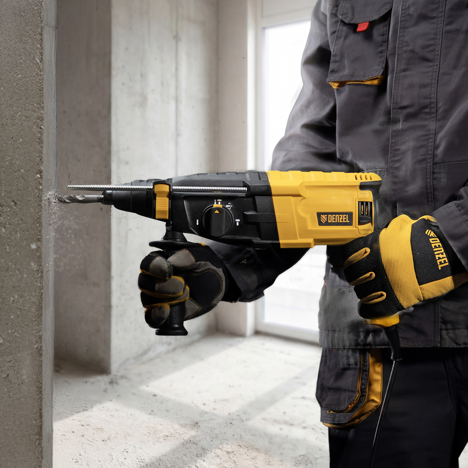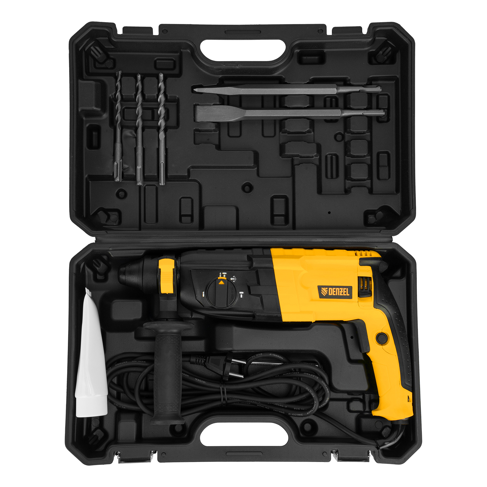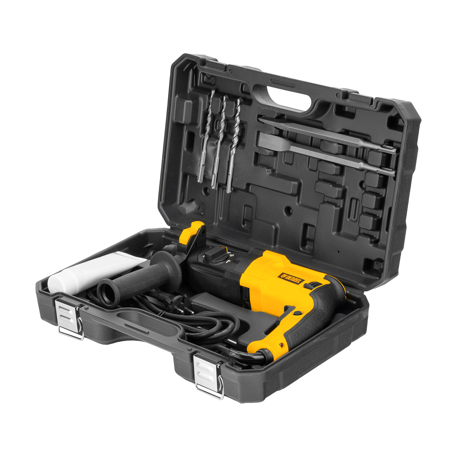 - Удобное хранение и транспортировка — перфоратор и аксессуары упакованы в прочный кейс.
