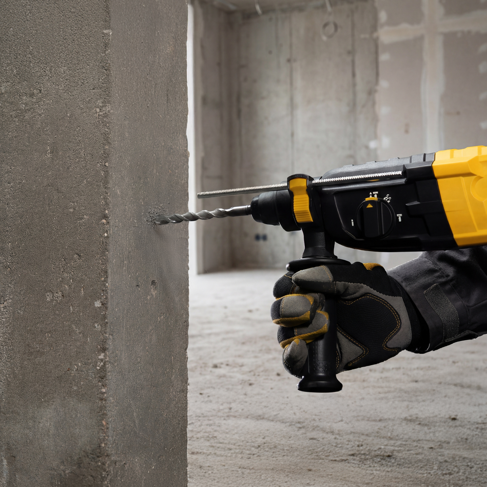 - Получение отверстий нужного размера — перфоратор поставляется с глубиномером для установки требуемой глубины обработки.
