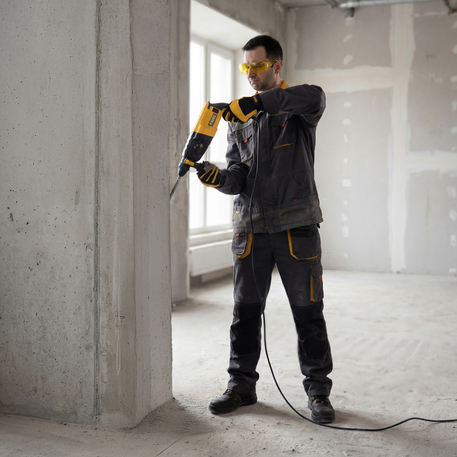 - Готовность к работе — в комплект поставки входит 3 бура по бетону, долото, пика и емкость со смазкой для бура.