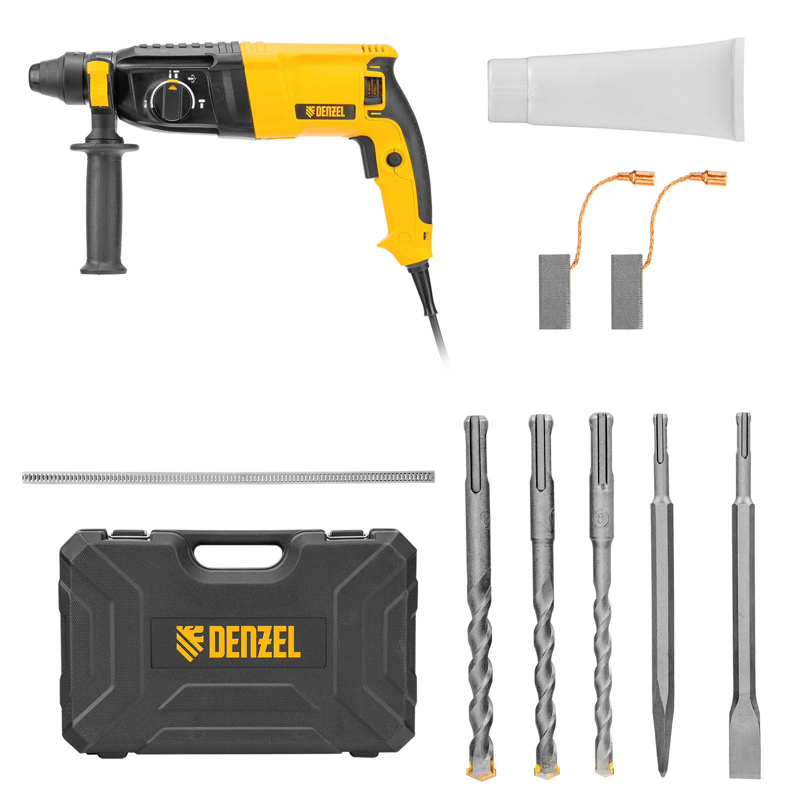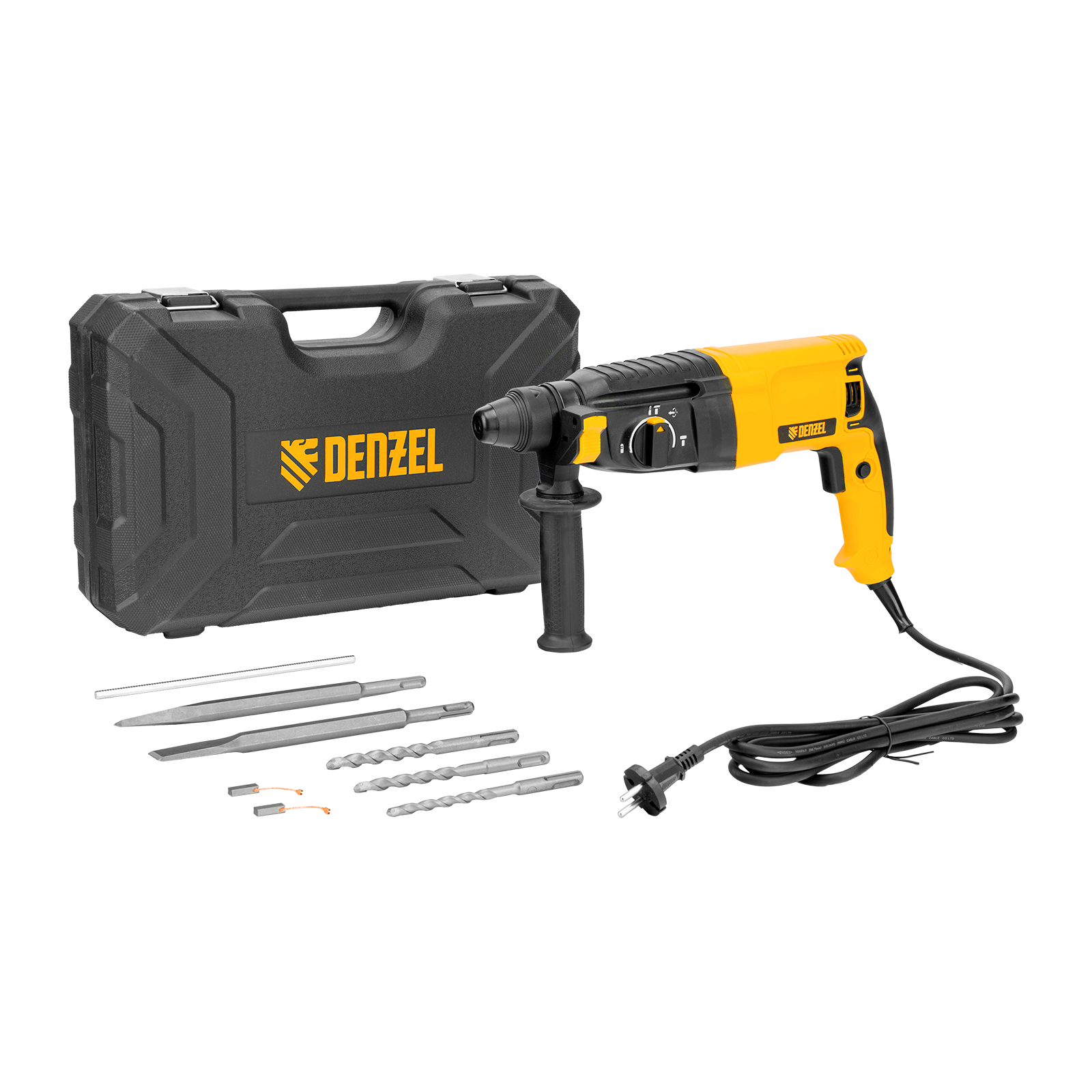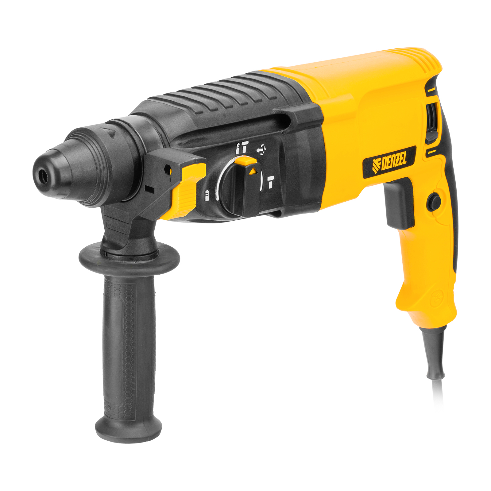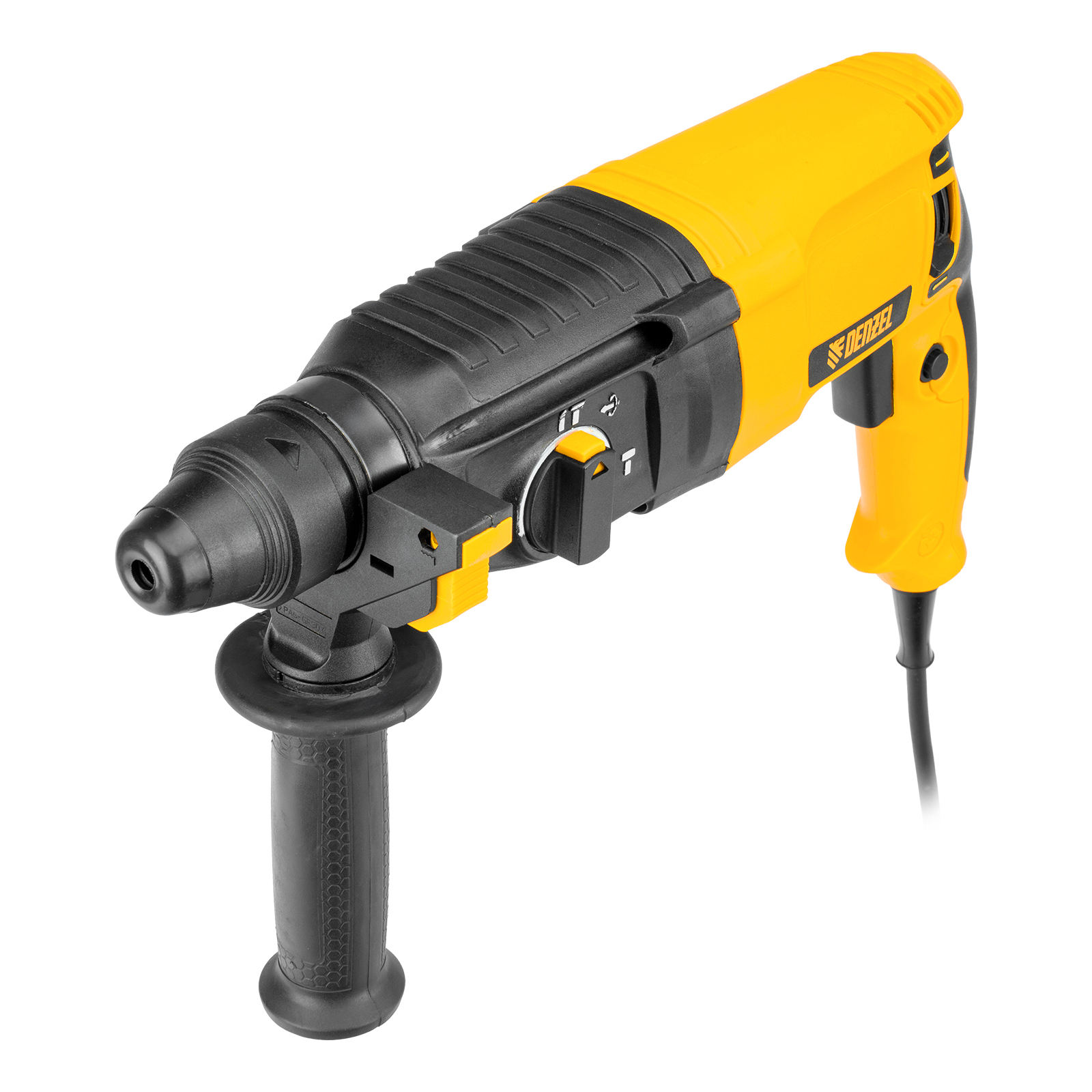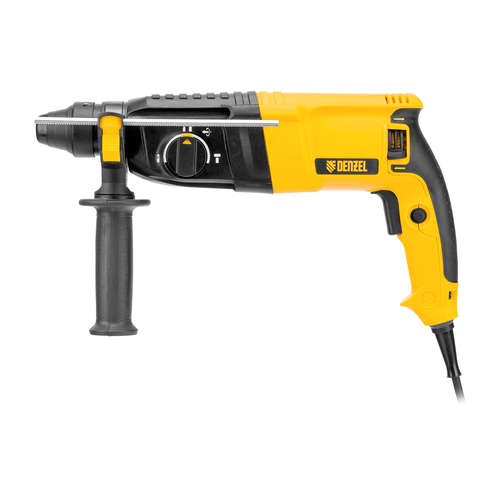 Электрический перфоратор Denzel RHB-800-26 26609 мощностью 800 Вт предназначен для оснастки с хвостовиком SDS Plus, имеет энергию удара 3 Дж и работает в одном из 3 режимов (сверление, бурение, долбление) + функция изменения углового положения долота. Позволяет сверлить отверстия, бурить кирпичную кладку, камень и бетон, штробить стены, удалять старые покрытия (плитку), проводить демонтажные работы. Максимальный диаметр сверления в бетоне составляет 26 мм, в древесине — 30 мм, стали — 13 мм. Также перфоратор совместим с коронками диаметром до 68 мм.