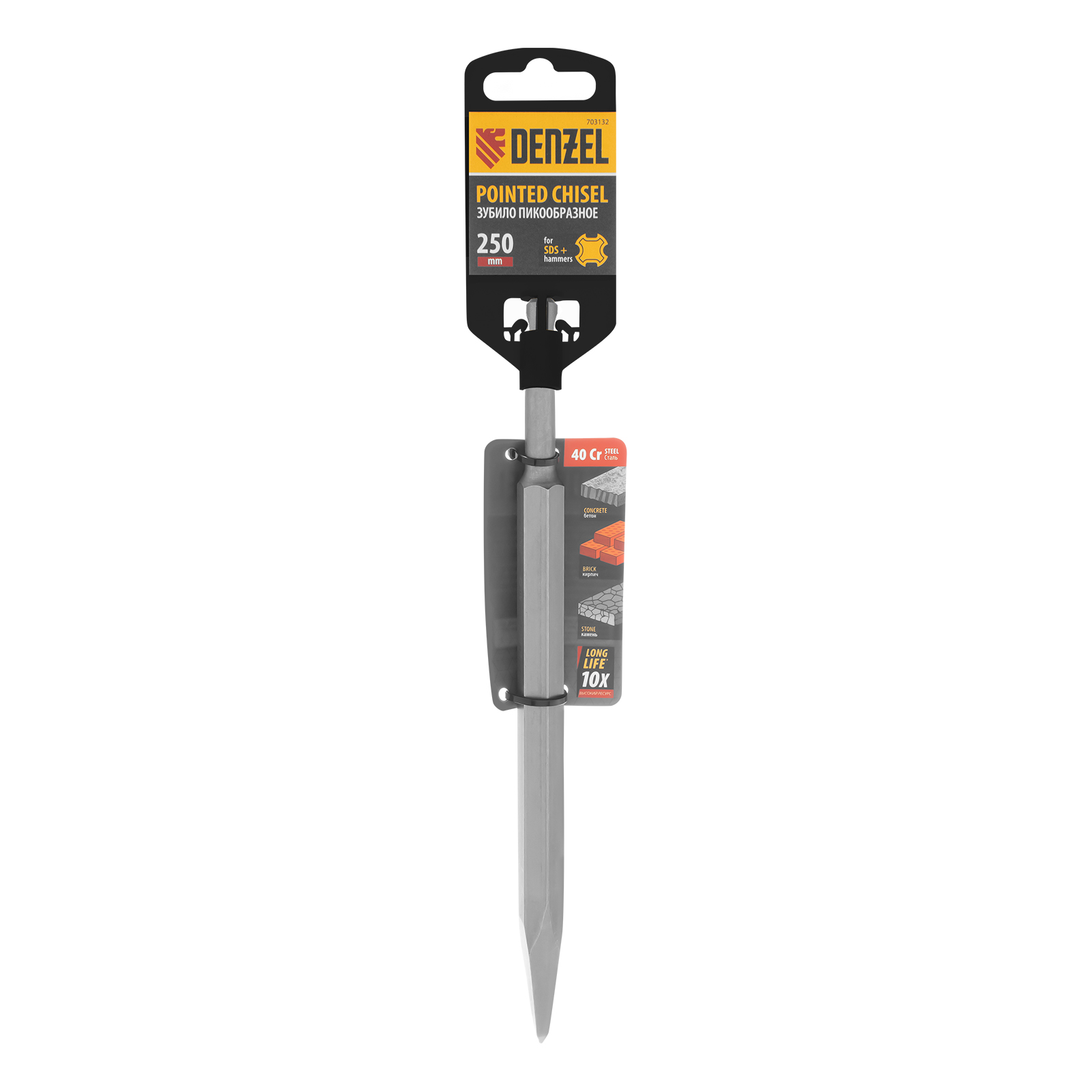 Пика Denzel 703132 размером 14 x 250 мм изготовлена из стали 40Cr и предназначена для установки в патрон SDS-plus. Используется совместно с перфоратором для проведения ударных работ. Оптимальна для разрушения кирпичных, бетонных и каменных конструкций. Оснастка будет полезна на строительной площадке.