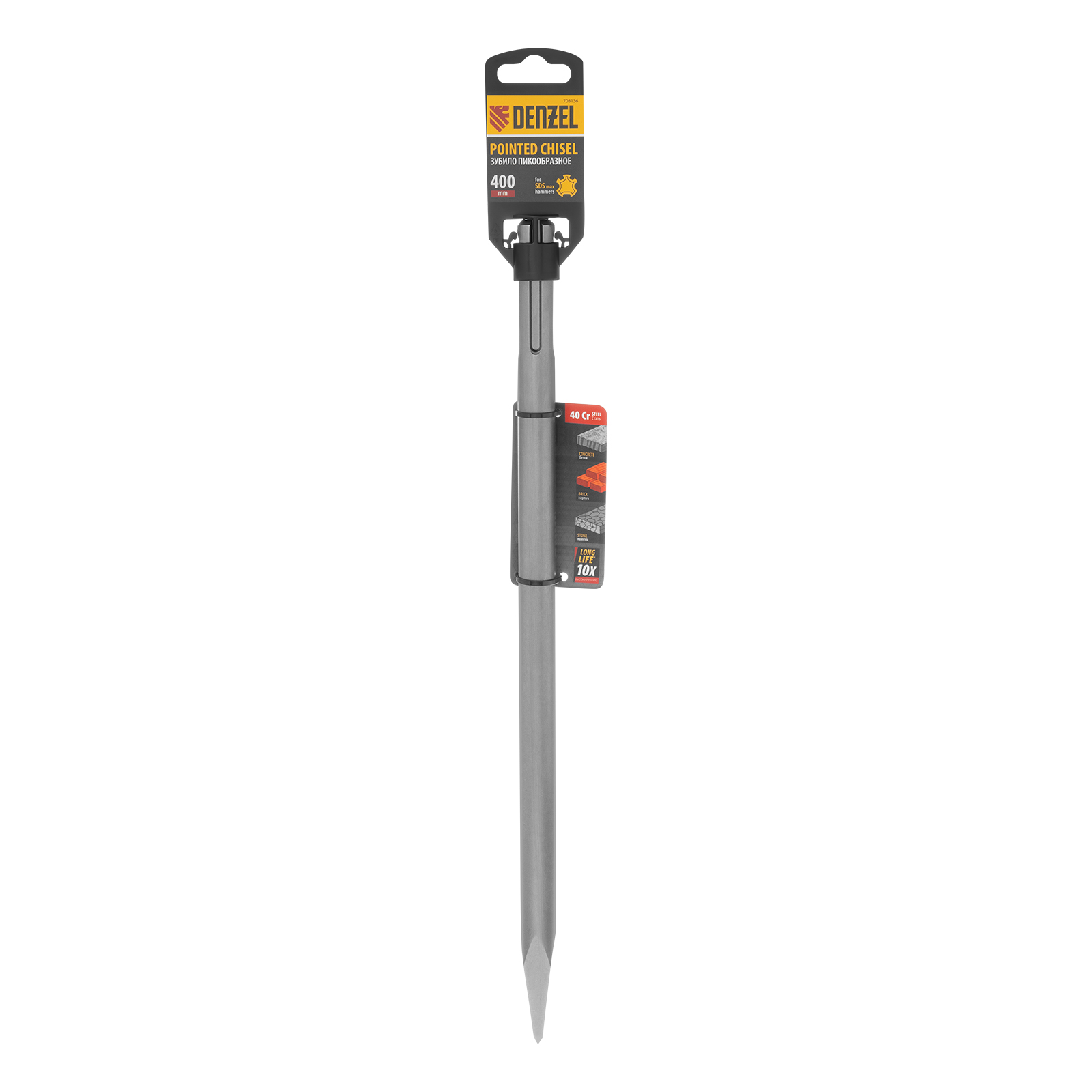 Пика Denzel 703136 размером 18 x 400 мм изготовлена из стали 40Cr и предназначена для установки в патрон под хвостовик SDS-max. Используется совместно с перфоратором для проведения ударных работ. Оптимальна для разрушения кирпичных, бетонных и каменных конструкций. Оснастка будет полезна на строительной площадке.
