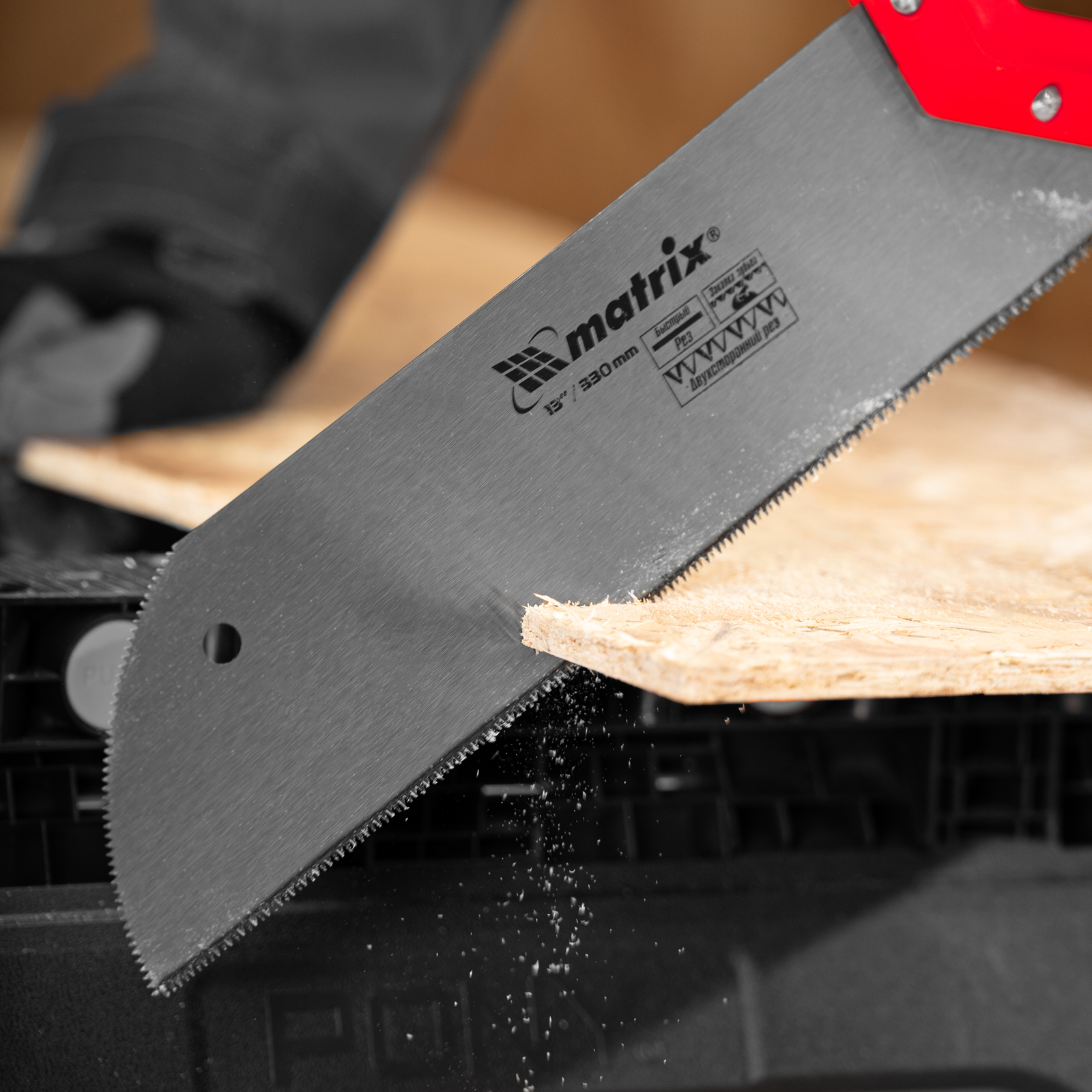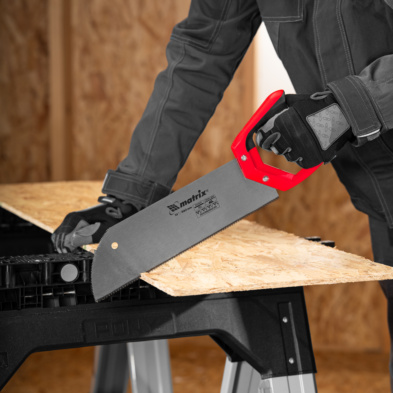 Пила для фанеры с запилом Matrix 23149 с полотном длиной 330 мм и двухкомпонентной рукояткой, позволяет производить распил древесины, фанеры, ДСП в продольном и поперечном направлении. Ей можно пилить как от себя, так и на себя. Благодаря лазерной заточке зубьев распиловка происходит легко, без нажима на поверхность заготовки. Запил в передней части полотна упрощает работу. Мелкие зубья с шагом 2 мм обеспечивают ровный и гладкий рез. Пила будет полезна в столярной мастерской, пригодится также и в домашнем хозяйстве.