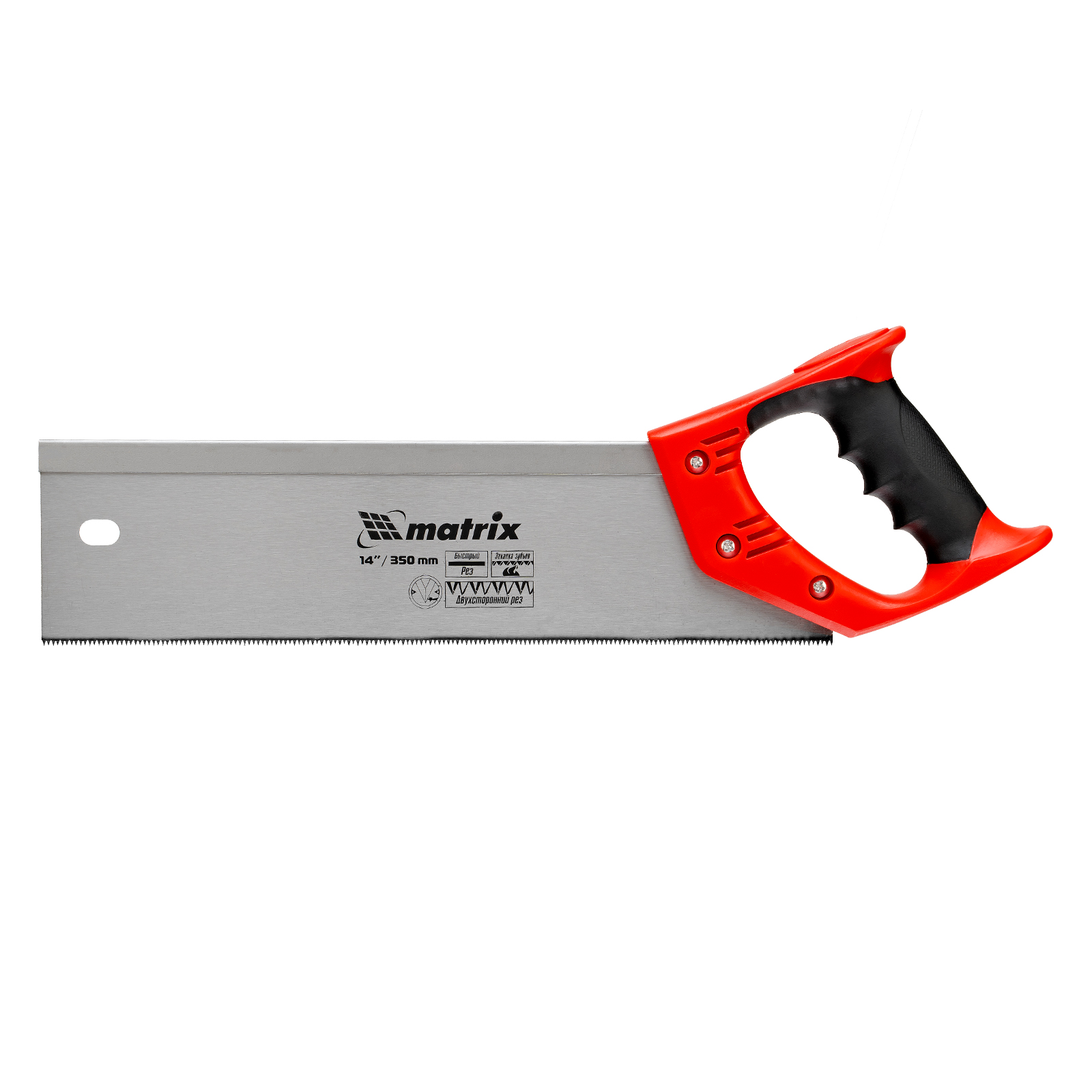 Обушковая пила по дереву для стусла Matrix 23148 с полотном длиной 350 мм и двухкомпонентной рукояткой, используется для продольно-поперечного пиления древесины, фанеры, ДСП. Ребро жесткости не дает полотну изгибаться, поэтому ножовкой удобно производить распил под углом — например, при работе со стуслом. Шаг зубьев составляет 2 мм, что обеспечивает чистый и ровный рез. Пила пригодится при проведении столярных работ дома или в мастерской.