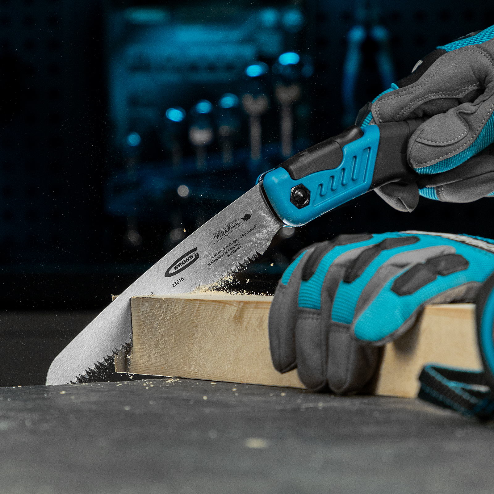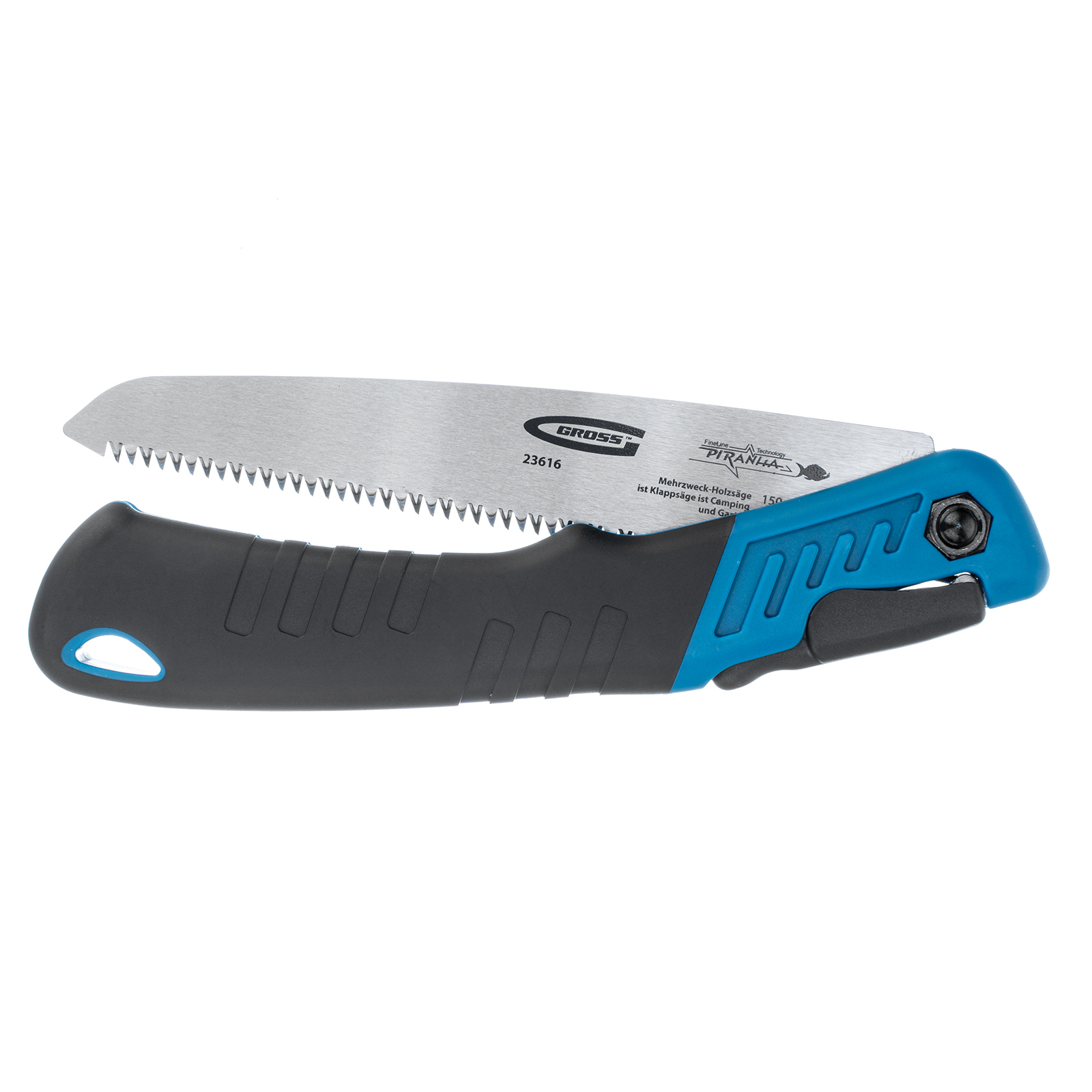Складная пила по дереву Gross PIRANHA 23616 для кемпинга и сада с 2-компонентной рукояткой, полотном длиной 150 мм, подкаленными зубьями с шагом 9-10 TPI и 3D-заточкой, пригодится на пикнике, в походе или на дачном участке. Предназначена для продольной и поперечной распиловки древесины, подходит также для работ с фанерой, ДВП и ПВХ. Характеристики режущей кромки соответствуют требованиям всех международных стандартов: зубья с трехгранной заточкой и шагом 9-10 TPI обеспечивают быстрый и ровный распил. Благодаря складной конструкции пилу очень удобно хранить и брать с собой в поездки.