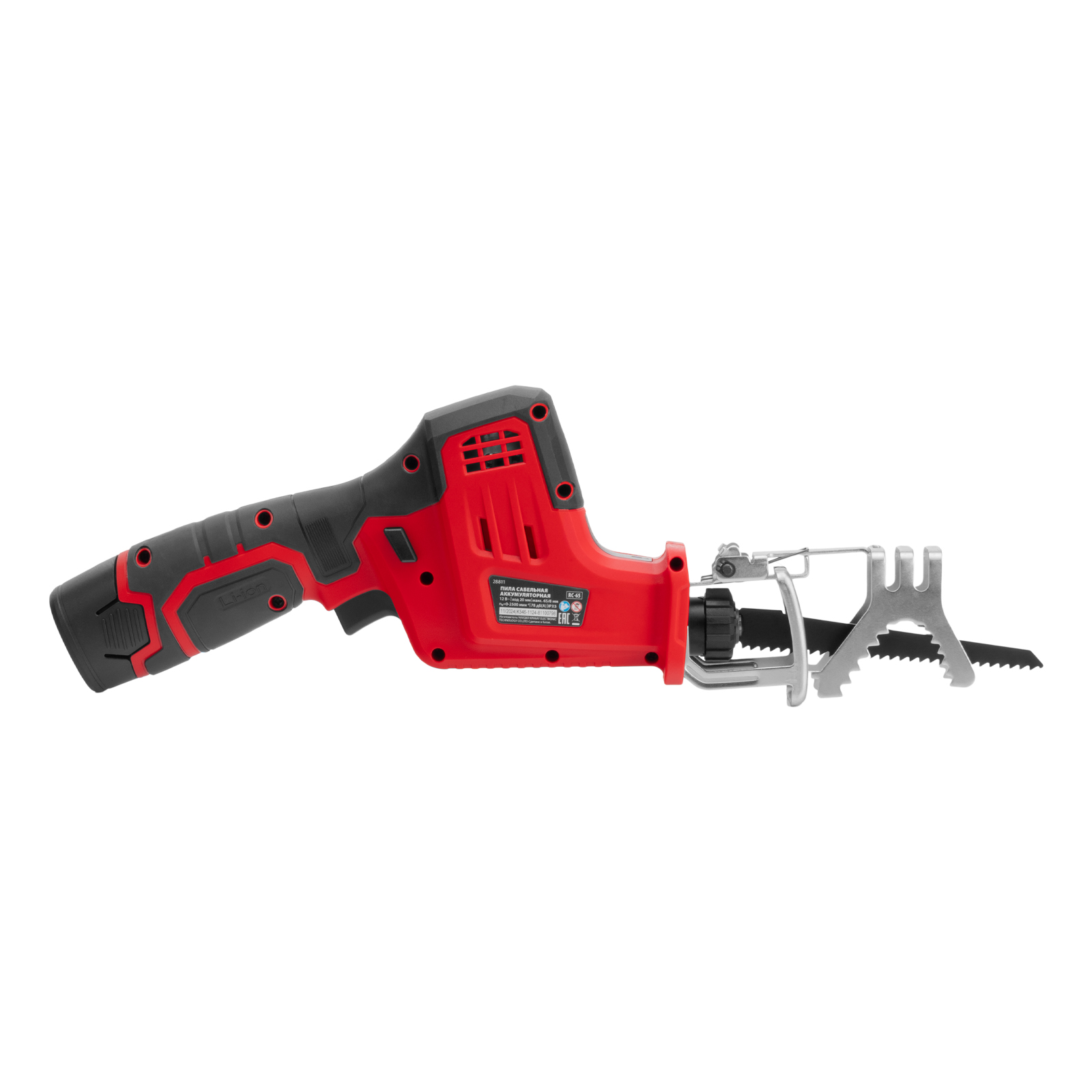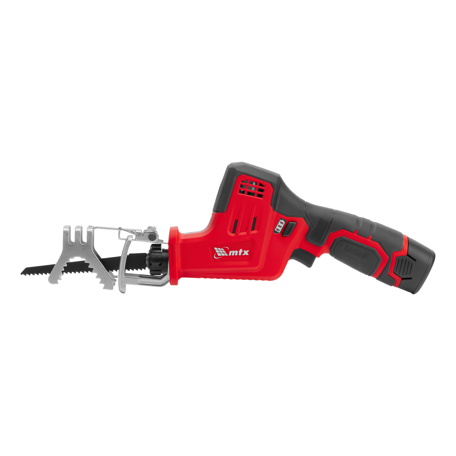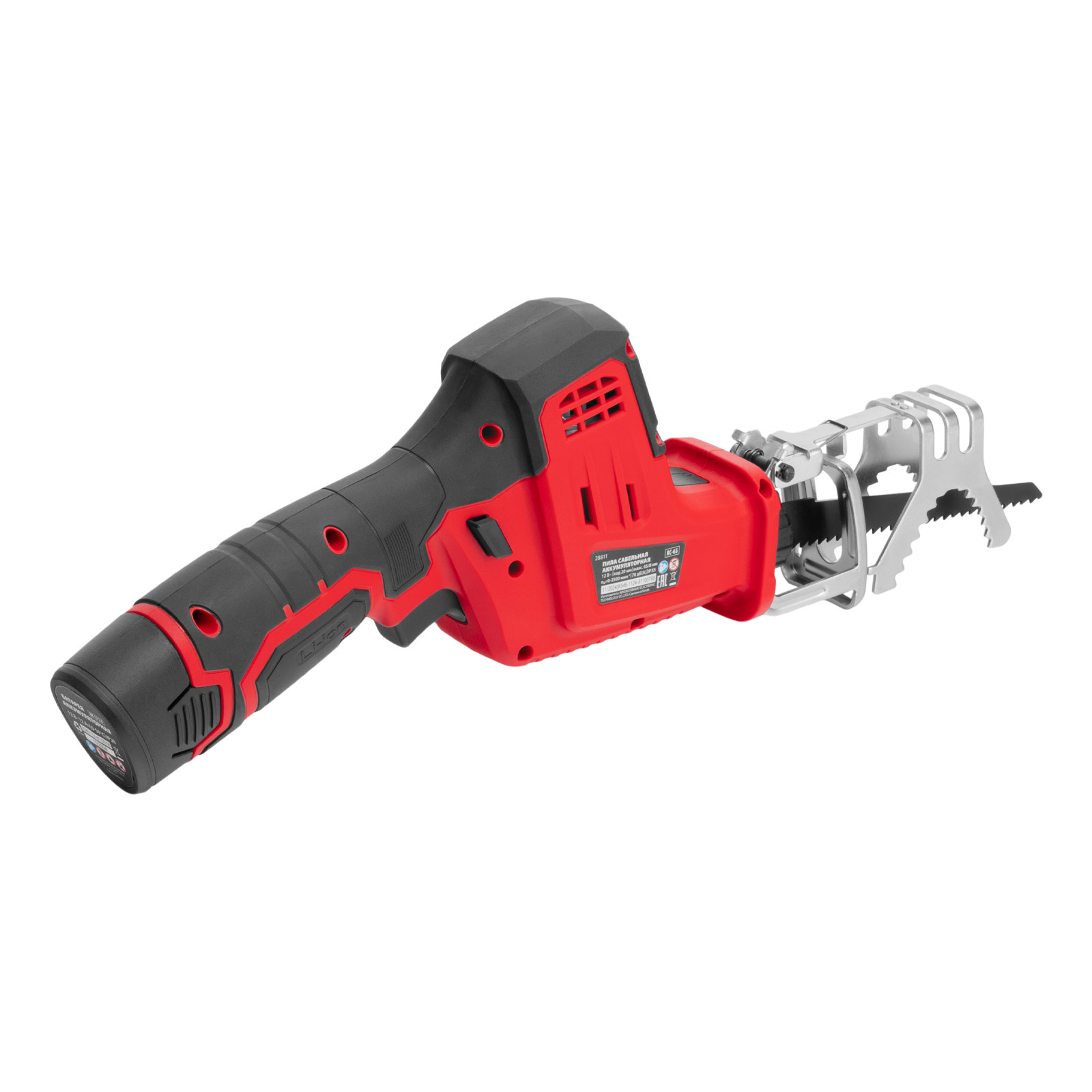 Сабельная аккумуляторная пила MTX RC-65 28811 предназначена для распиливания древесины, металла и других материалов. Максимальная глубина пропила в древесине составляет 65 мм, в стали — 8 мм. Частота хода пильного полотна достигает 2500 ход/мин, что обеспечивает эффективное решение поставленных задач. Пила работает от аккумулятора Li-Ion 12 В без эффекта памяти, который допускает подзарядку — уменьшения емкости при этом не происходит. Инструмент предназначен для бытового использования, пригодится на дачном участке.