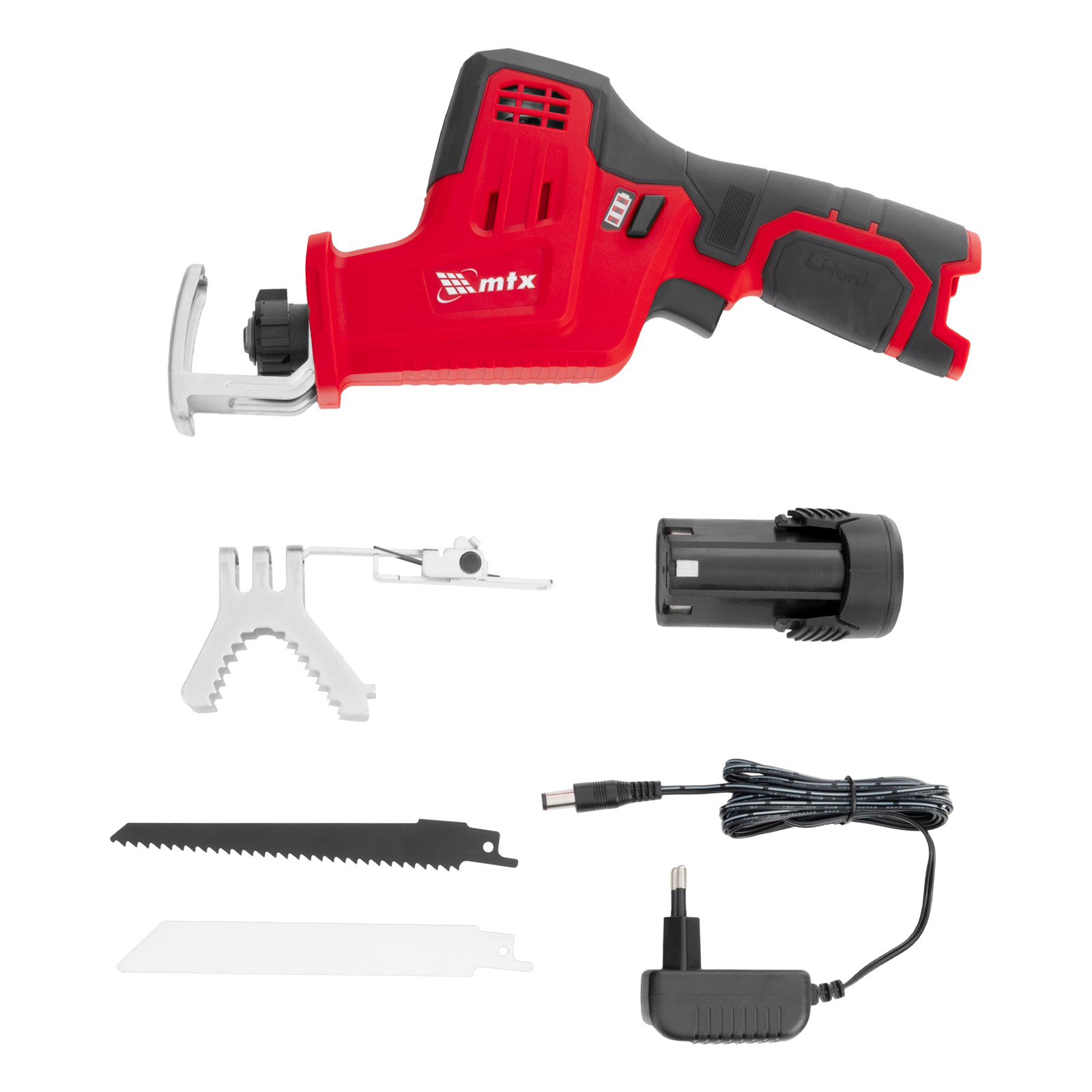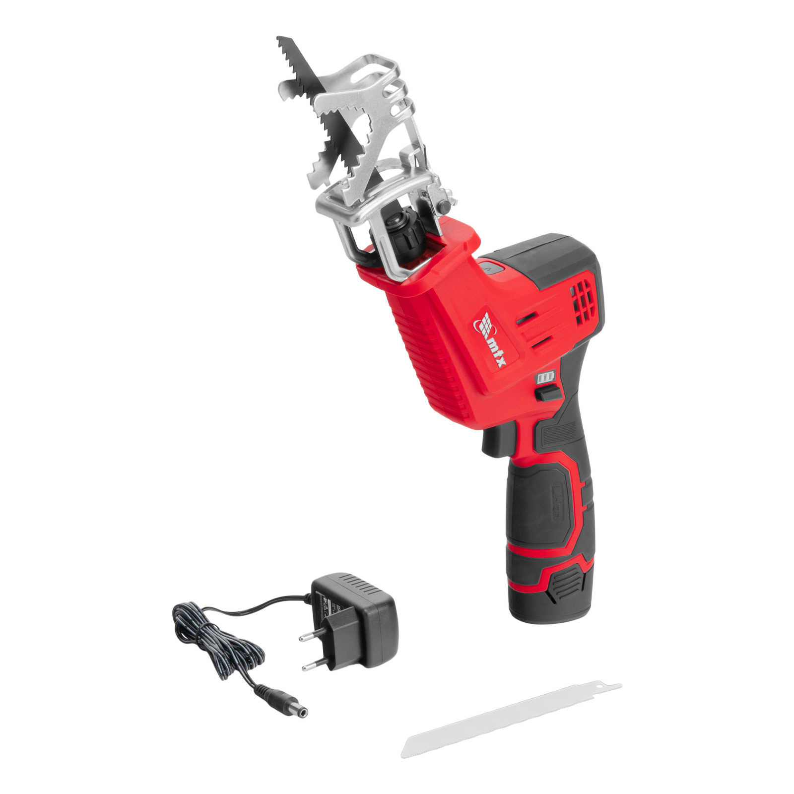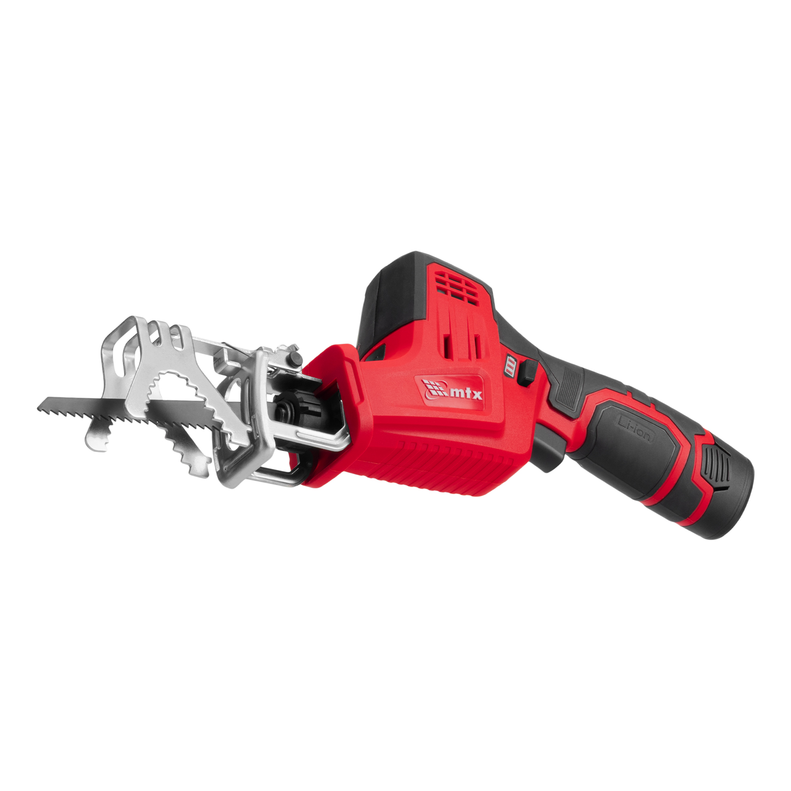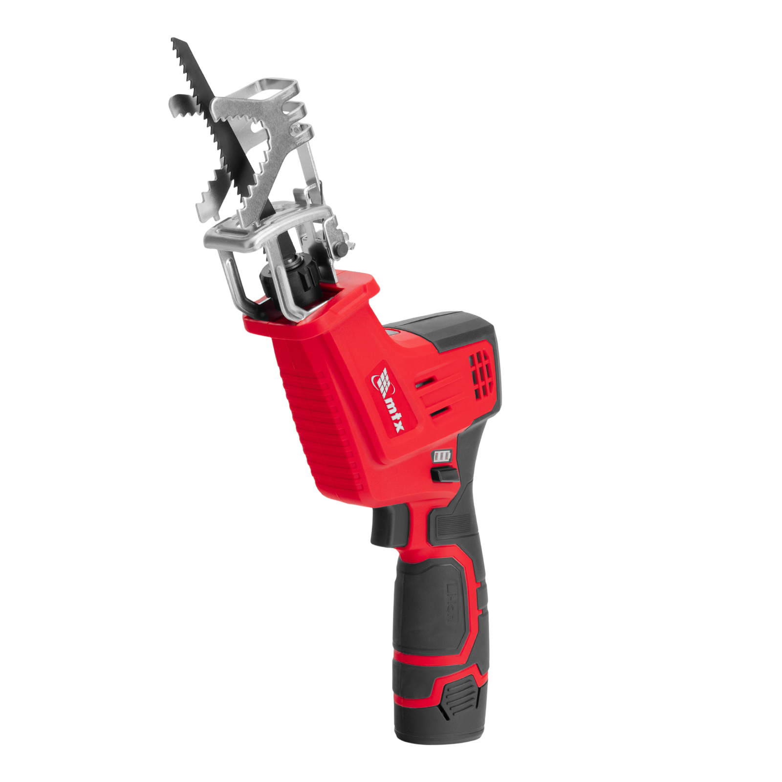 Сабельная аккумуляторная пила MTX RC-65 28811 предназначена для распиливания древесины, металла и других материалов. Максимальная глубина пропила в древесине составляет 65 мм, в стали — 8 мм. Частота хода пильного полотна достигает 2500 ход/мин, что обеспечивает эффективное решение поставленных задач. Пила работает от аккумулятора Li-Ion 12 В без эффекта памяти, который допускает подзарядку — уменьшения емкости при этом не происходит. Инструмент предназначен для бытового использования, пригодится на дачном участке.