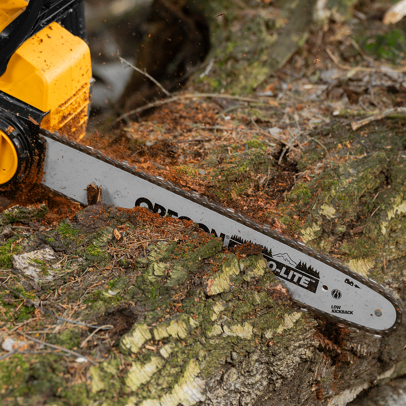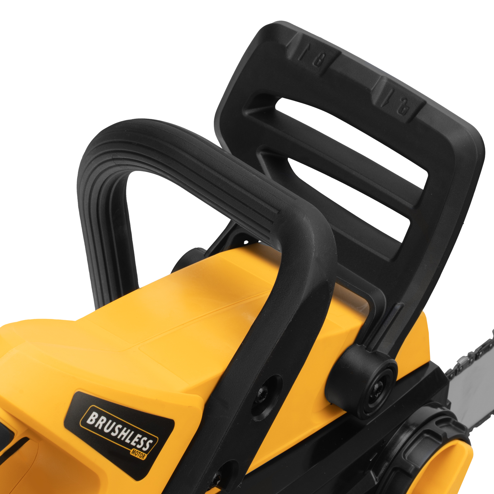 Безопасность пользователя — цепь мгновенно останавливается при отдаче, также производитель предусмотрел защиту от случайного пуска.