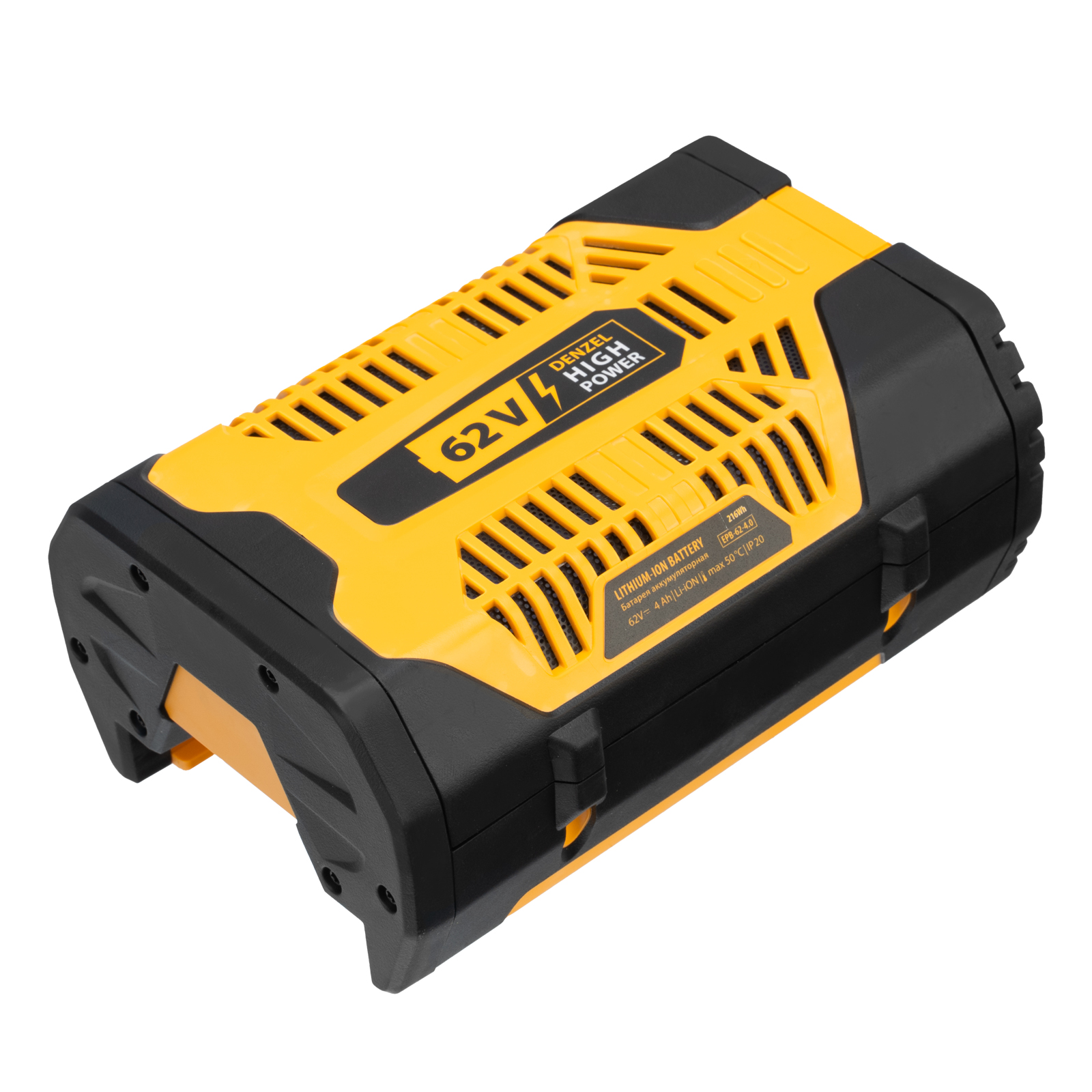 Инновационная аккумуляторная платформа Denzel High Power 62V разработана специально для инструмента большой мощности. Аккумулятор емкостью 4 А/ч с интеллектуальной системой распознавания типа нагрузки обеспечивает длительную работу без подзарядки. Разъем USB позволяет использовать аккумулятор как Power Bank: заряжать смартфон, планшетный компьютер и другую портативную технику.