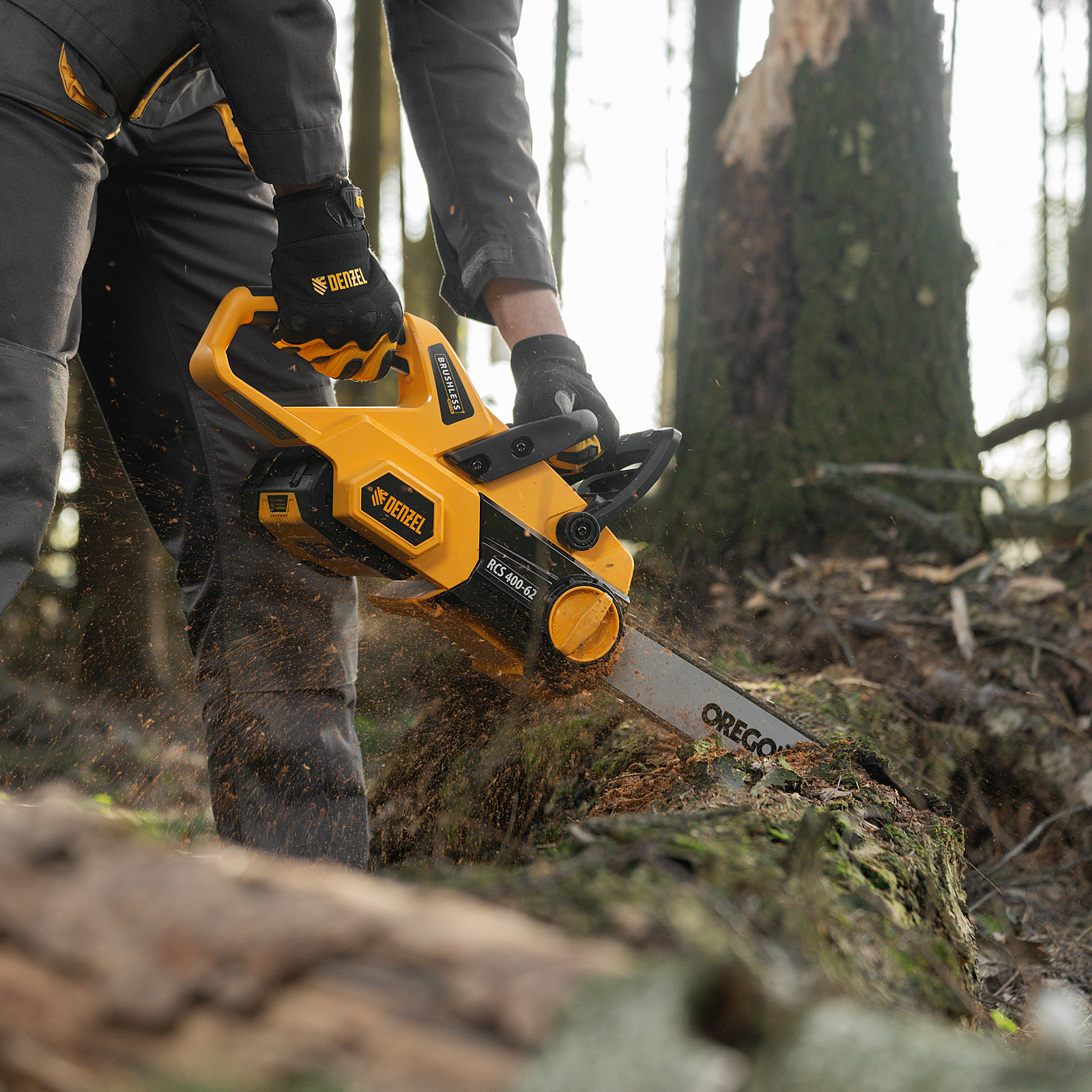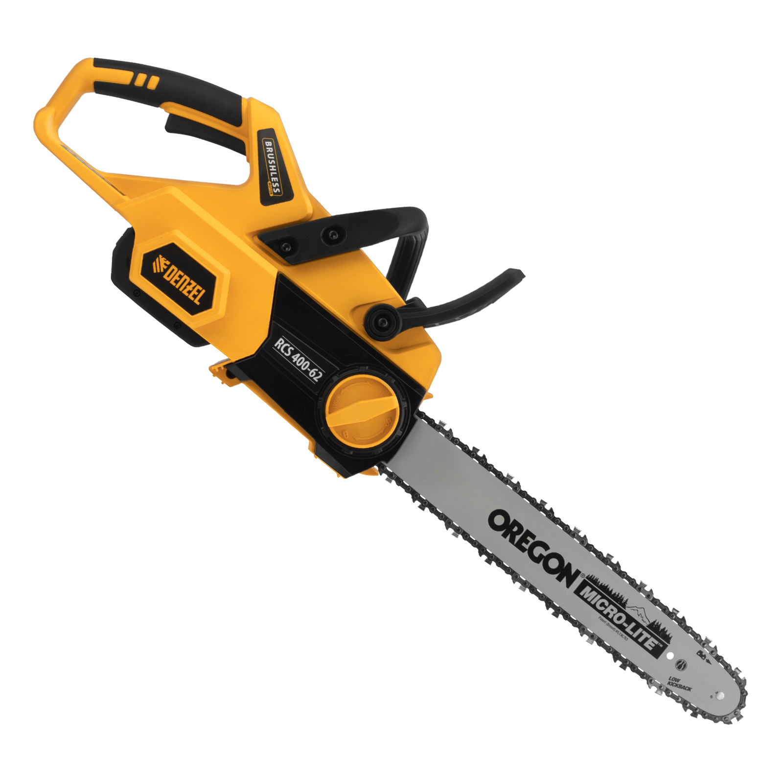 Пила цепная аккумуляторная Denzel RCS 400-62 58620 с шиной длиной 400 мм работает от аккумулятора Li-Ion с рабочим напряжением 62 В. Предназначена для заготовки дров, срезания массивных веток, валки деревьев, распиливания материалов из древесины любых пород. Мощный бесщеточный двигатель обеспечивает скорость вращения шпинделя 10500 об/мин, благодаря чему пила отличается высокой производительностью.