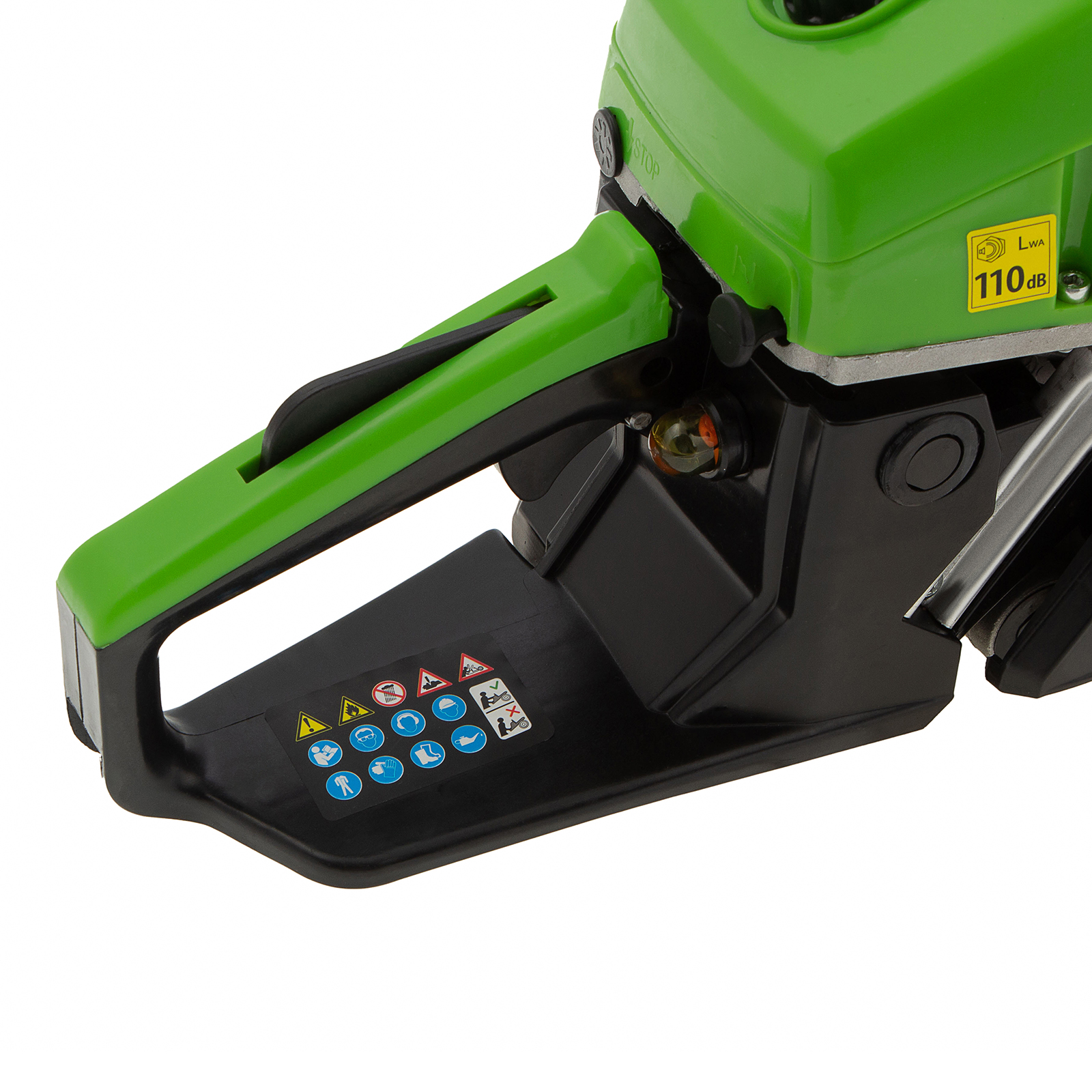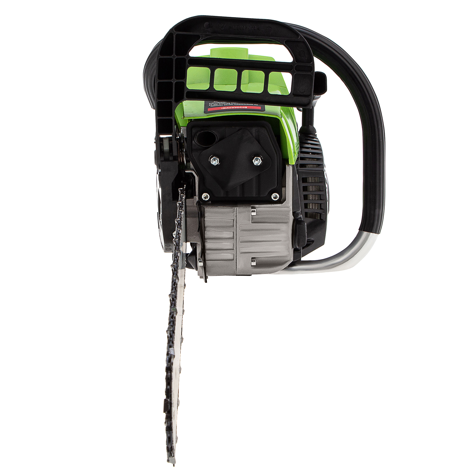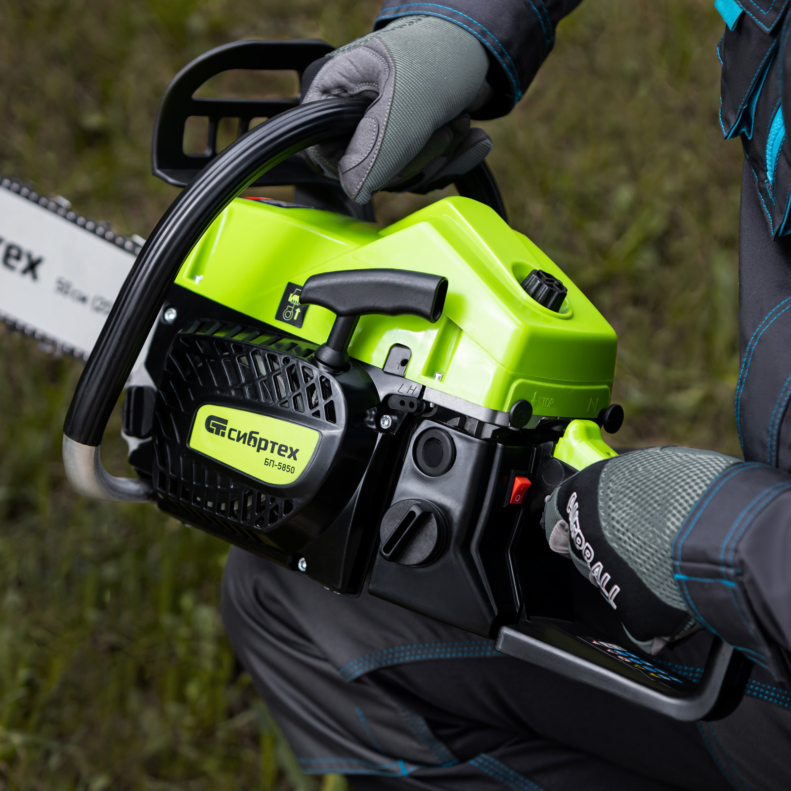 Безопасность — пила оснащена блокировкой от случайного запуска и тормозом цепи, который моментально срабатывает при отскоке инструмента.