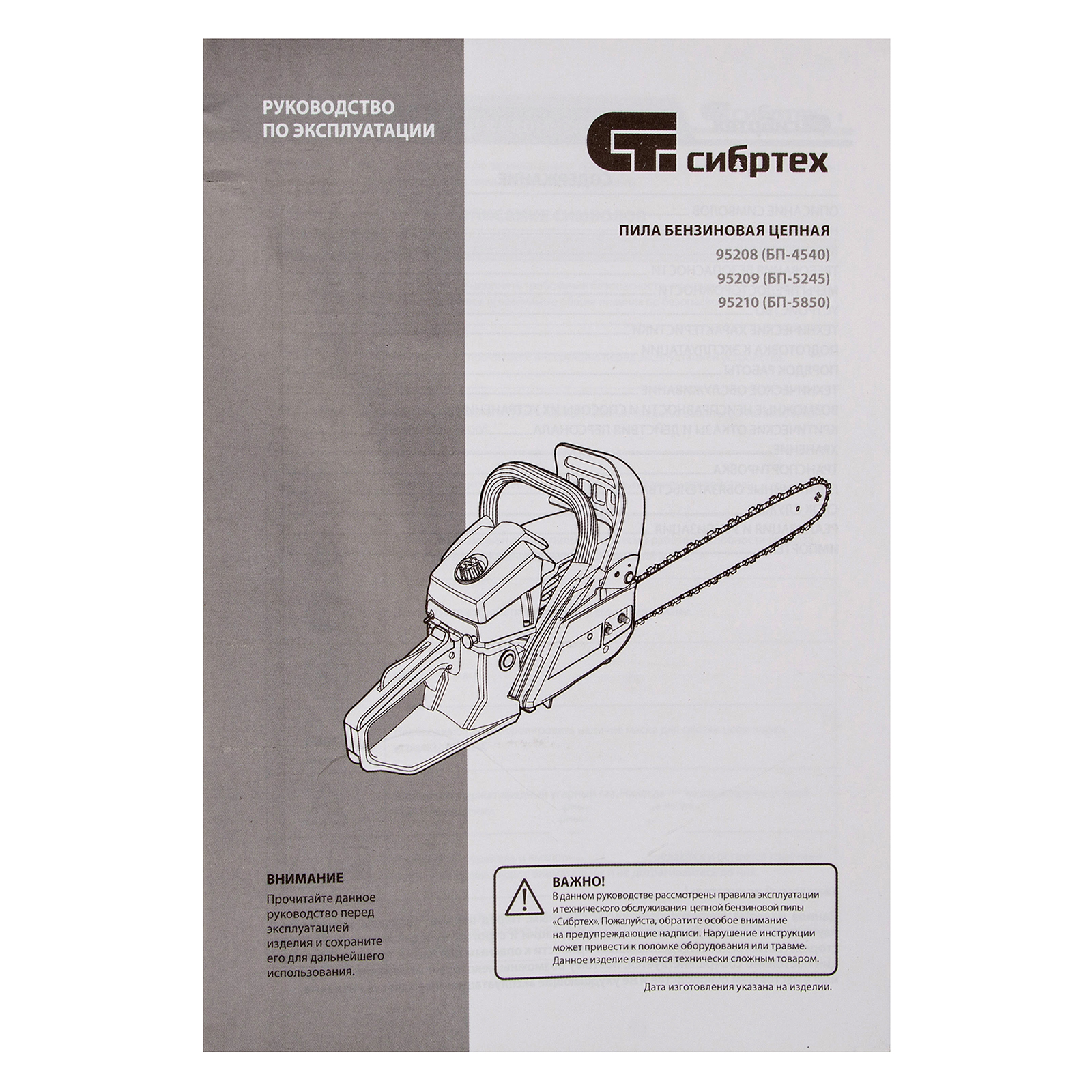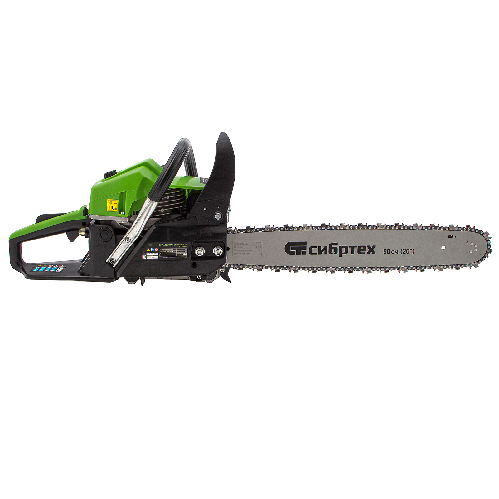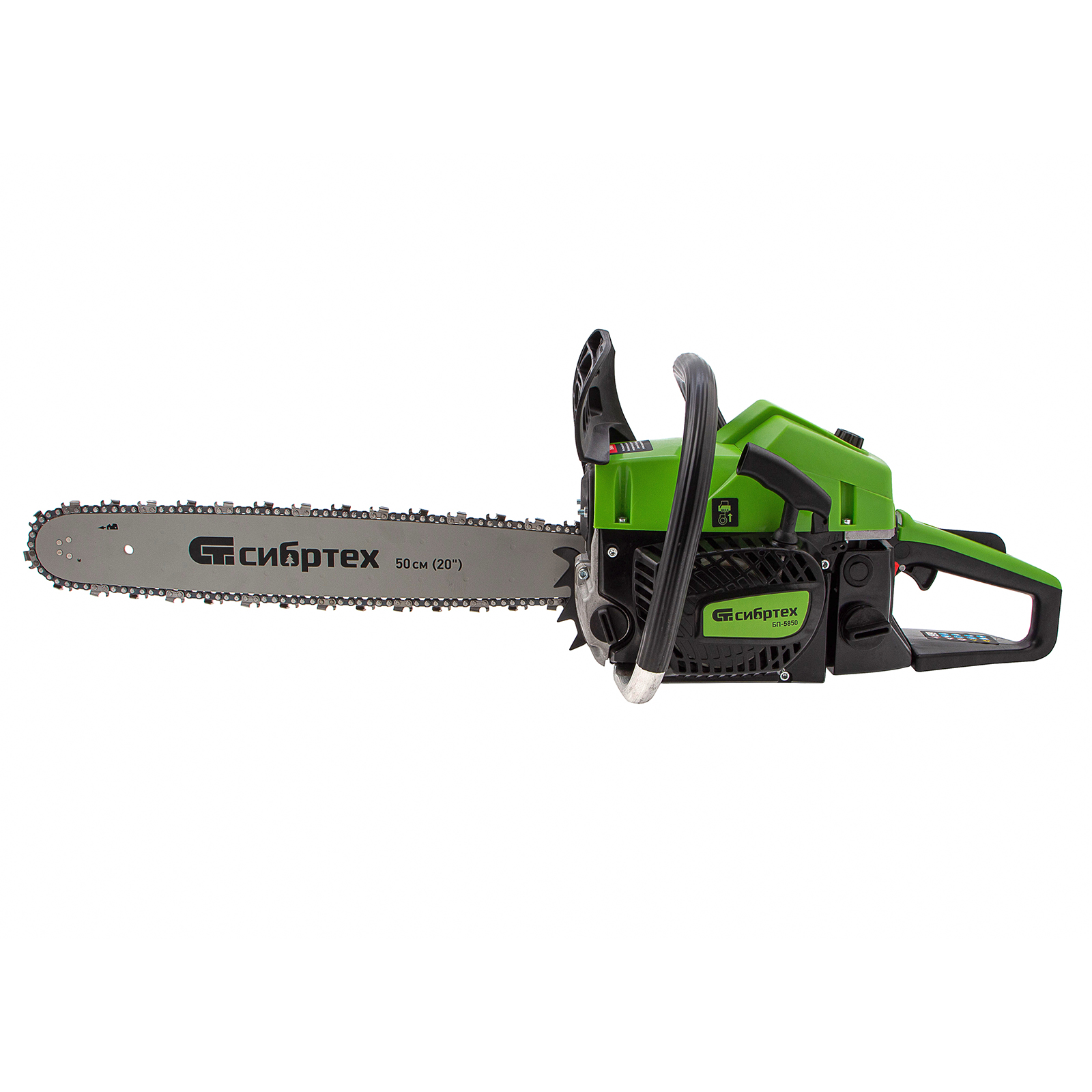 Пила цепная бензиновая Сибртех БП-5850 95210 с двухтактным двигателем объемом 58 см3 и мощностью 3,9 л.с предназначена для распиловки древесины различных пород, заготовки дров, спиливания веток и крупных сучков. Пригодится во время ремонта, строительства, благоустройства садового участка и при выполнении бытовых задач. Мощный и экономичный двигатель в сочетании с качественной шиной длиной 50 см (цепь с 76 звеньями с шагом 0,325 дюйма и шириной паза 1,5 мм) позволяют достичь наилучших результатов да.