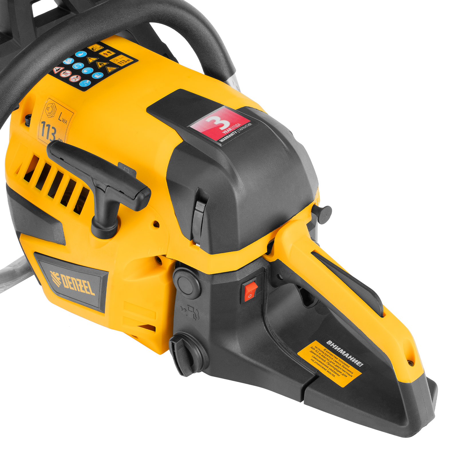 Пила цепная бензиновая Denzel DS-5820 95238 мощностью 3,6 л.с. оснащена двигателем объемом 58 см3 и поставляется с высокопроизводительной пильной гарнитурой: шиной длиной 50 см, цепью с 76 звеньями шагом 0,325" и пазом 1,5 мм. Используется для заготовки дров, распиловки древесины, при проведении ремонтных, строительных и садовых работ. Мощный и экономичный двухтактный двигатель позволяет эффективно и быстро решать поставленные задачи.
