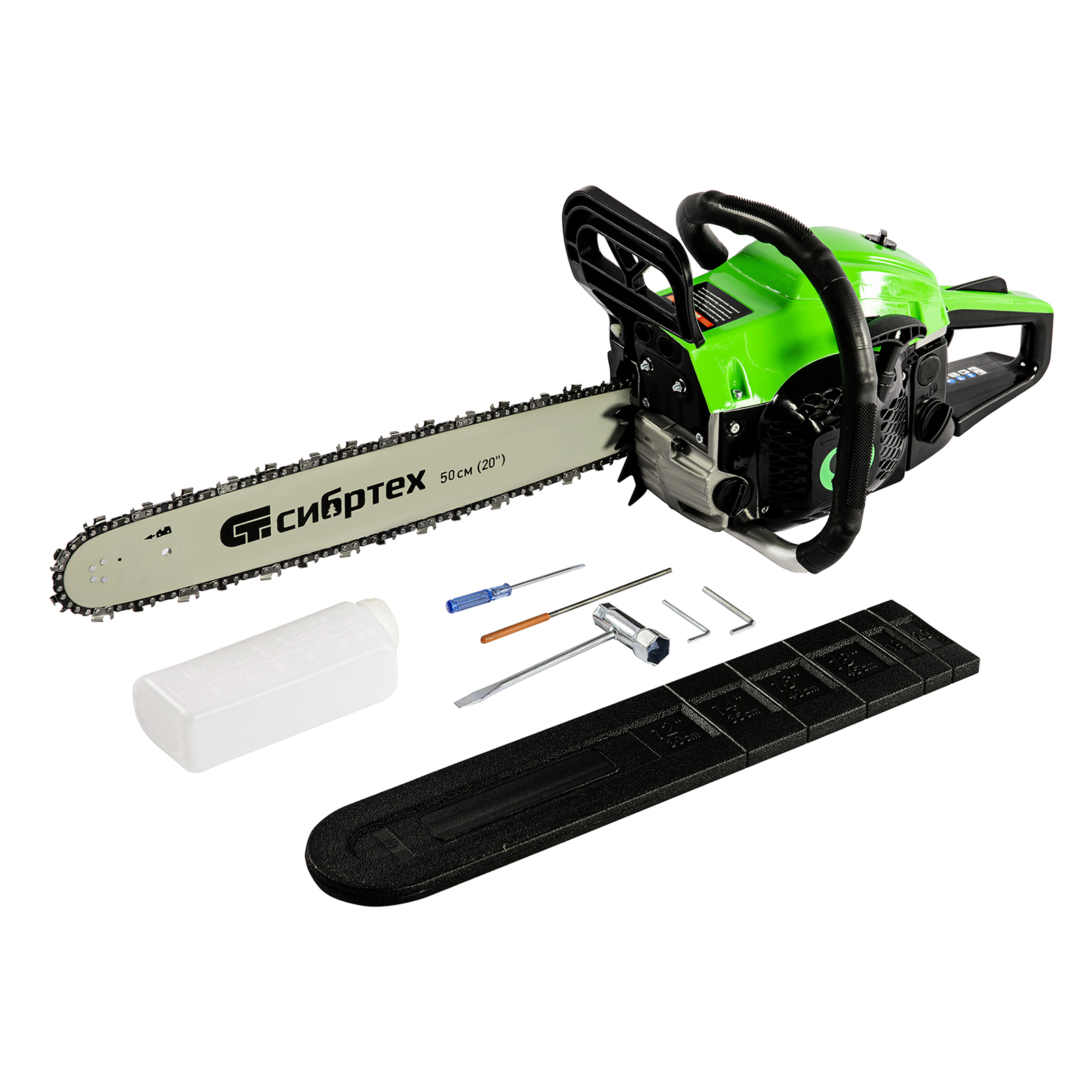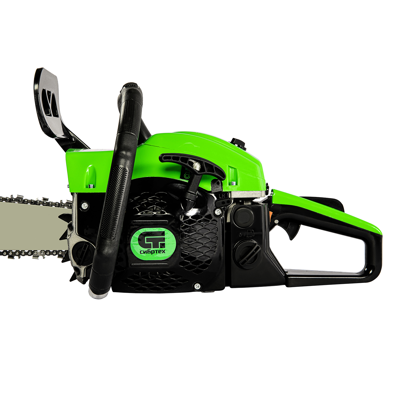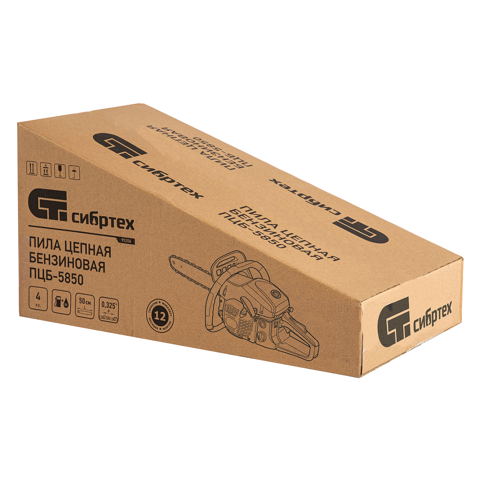 Цепная бензиновая пила Сибртех ПЦБ-5850 95206 мощностью 4,0 л.с., с двигателем объемом 58 см3, комплектуется шиной длиной 50 см с 76 звеньями (шаг 0,325″, паз 1,5 мм). Предназначена для облагораживания приусадебных участков, валки деревьев, распиловки бревен, заготовки дров, подравнивании насаждений в саду, подпиливания веток. Работает на смеси бензина и масла (дозатор для ее приготовления входит в комплект поставки). Благодаря увеличенной до 50 см шине пила успешно справляется с массивными ветками и древесиной разных пород. Оптимальна для бытового использования.