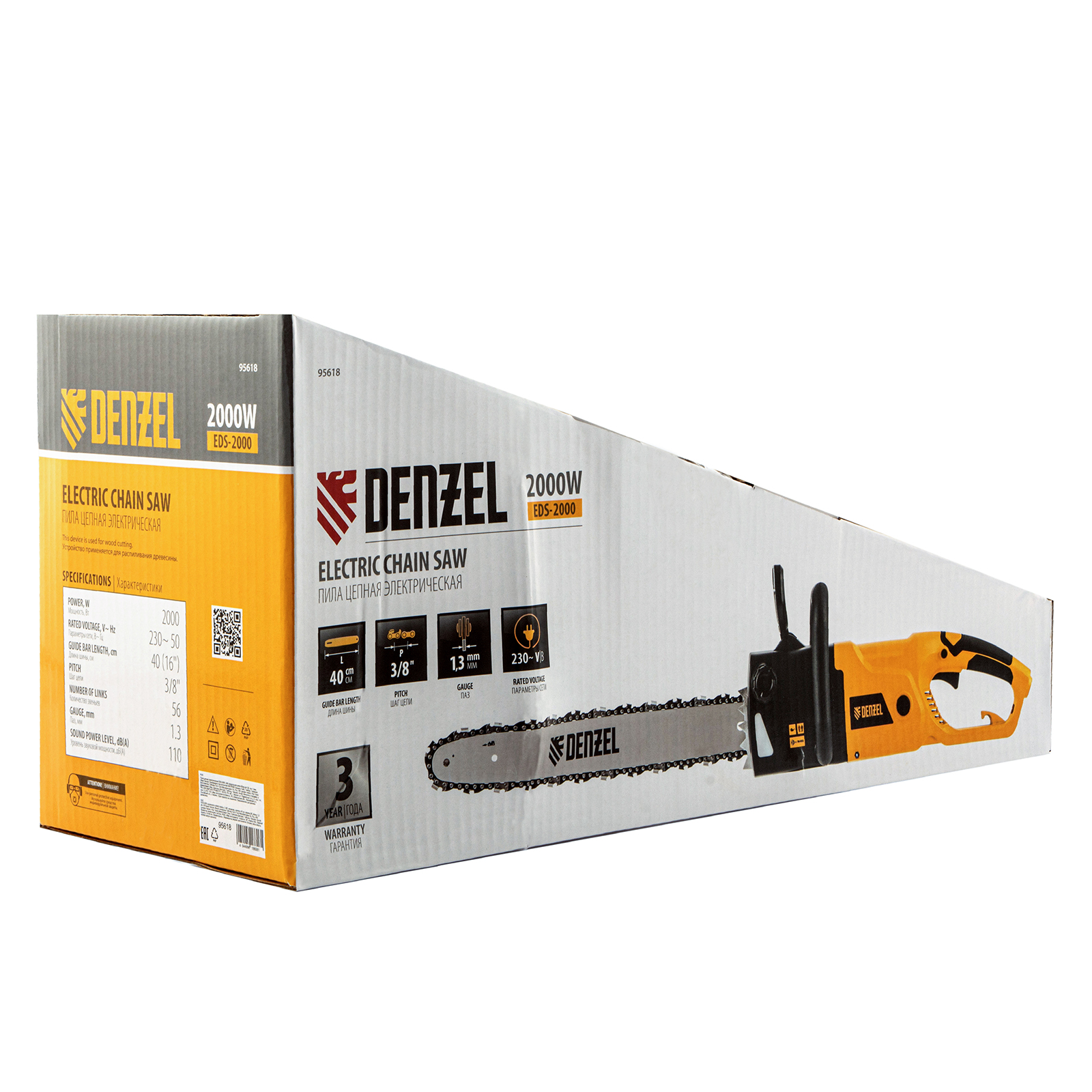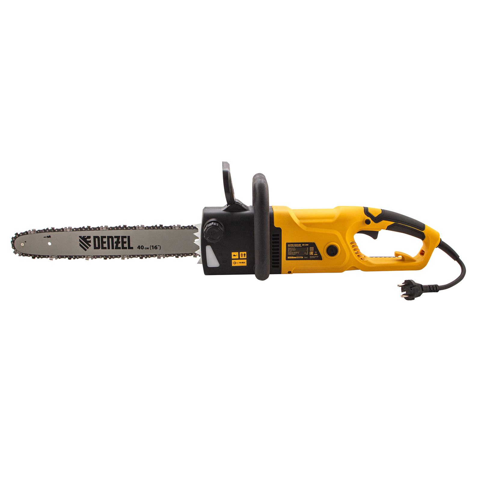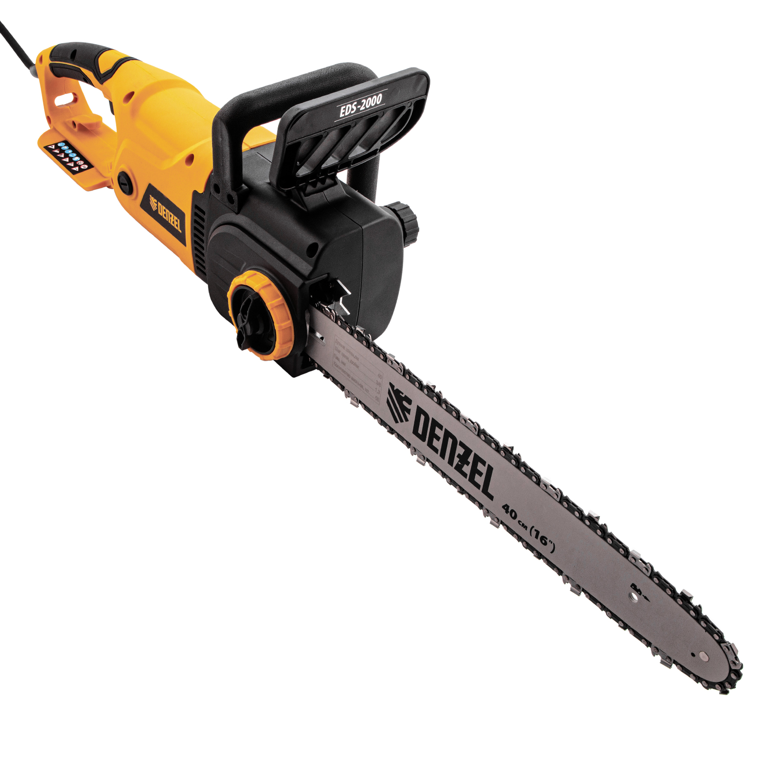 Электрическая цепная пила Denzel EDS-2000 95618 оснащена двигателем мощностью 2 кВт, поставляется вместе с шиной длиной 40 см (шаг 3/8", паз 1,3 мм, 56 звеньев). Инструмент обеспечивает выполнение таких задач, как ремонт, строительство, заготовка дров, облагораживание придомовой территории, работа в небольшой мастерской.