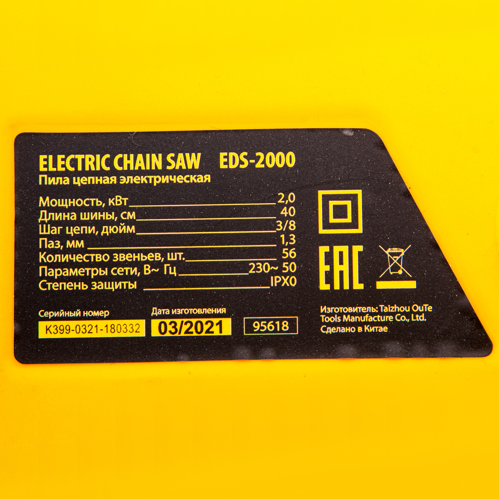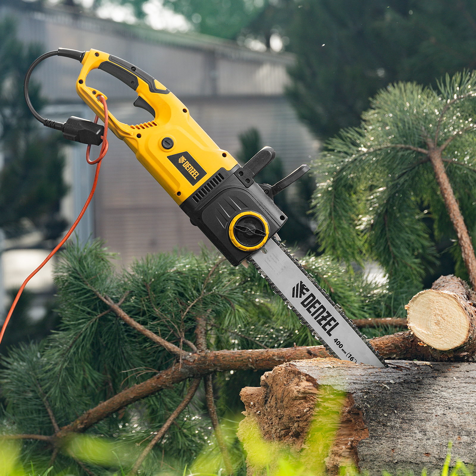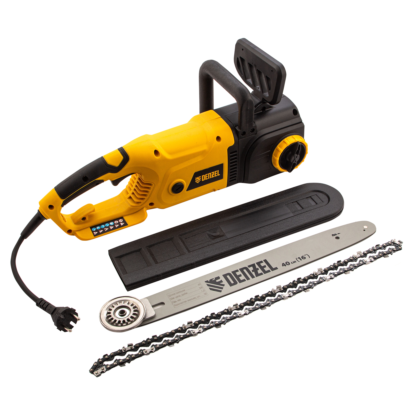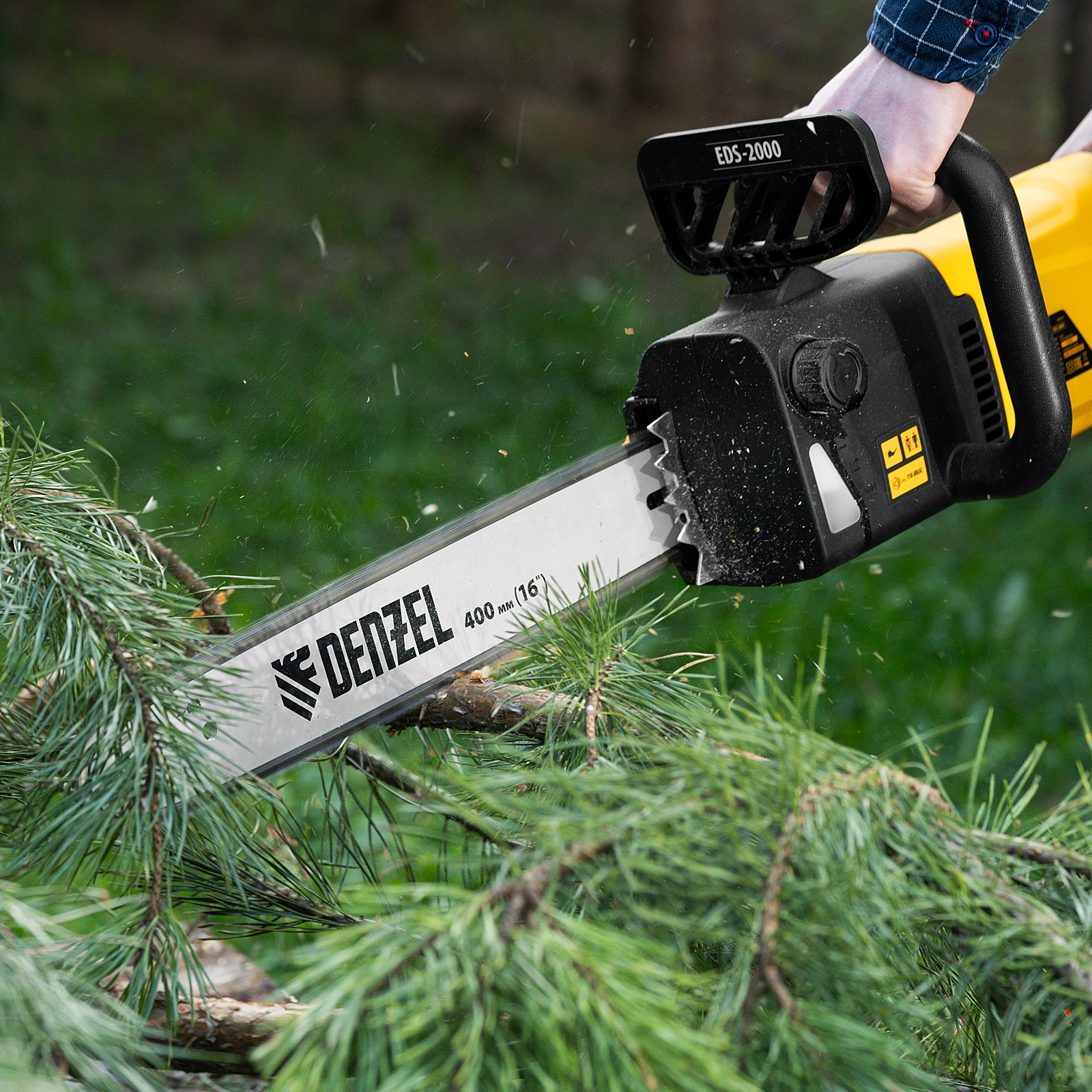 Электрическая цепная пила Denzel EDS-2000 95618 оснащена двигателем мощностью 2 кВт, поставляется вместе с шиной длиной 40 см (шаг 3/8", паз 1,3 мм, 56 звеньев). Инструмент обеспечивает выполнение таких задач, как ремонт, строительство, заготовка дров, облагораживание придомовой территории, работа в небольшой мастерской.