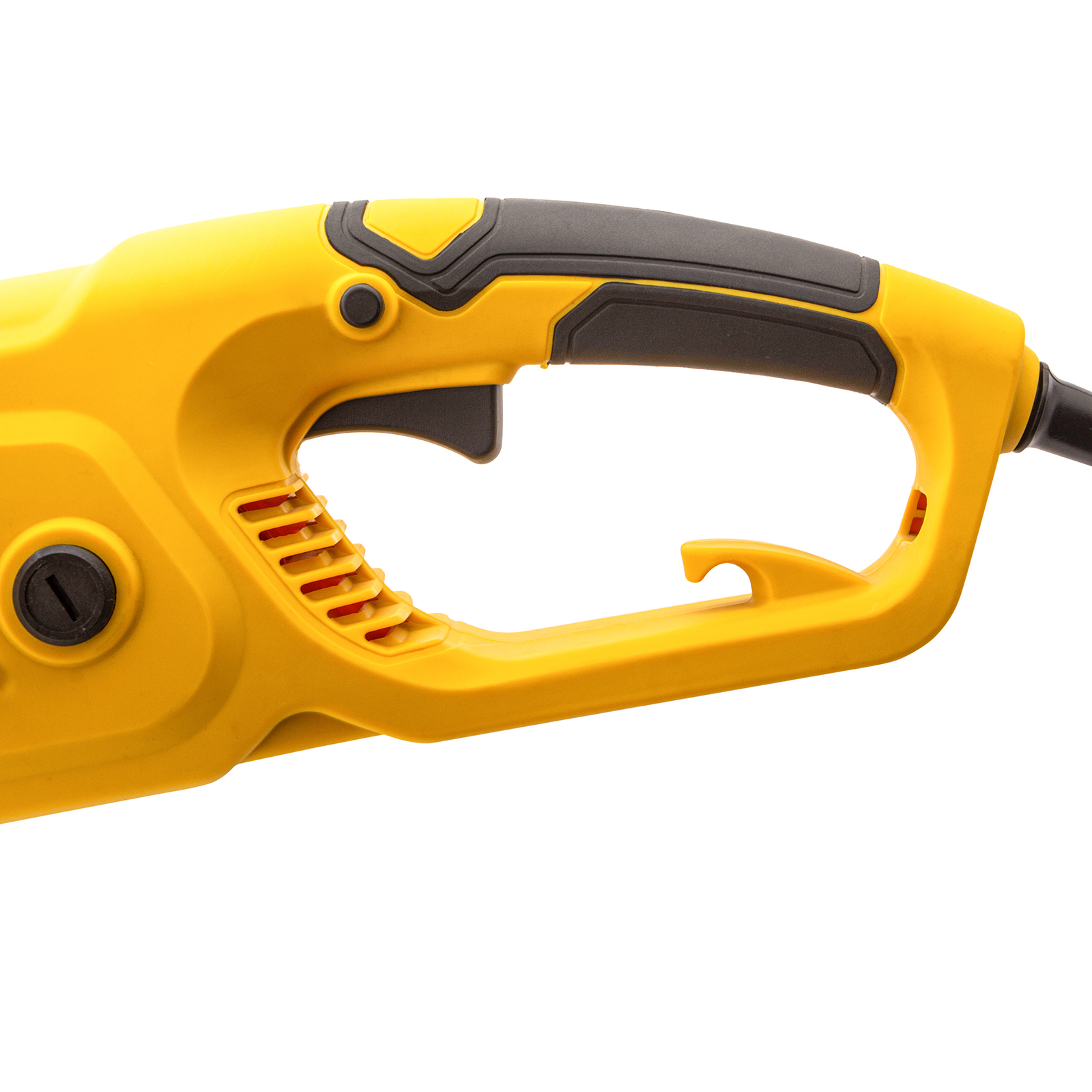- Кожух 2 в 1 — двигатель закрыт от внешних повреждений и эффективно охлаждается благодаря вентиляционным отверстиям, не перегреваясь при длительной эксплуатации.