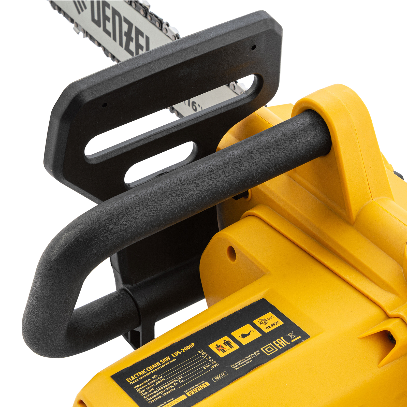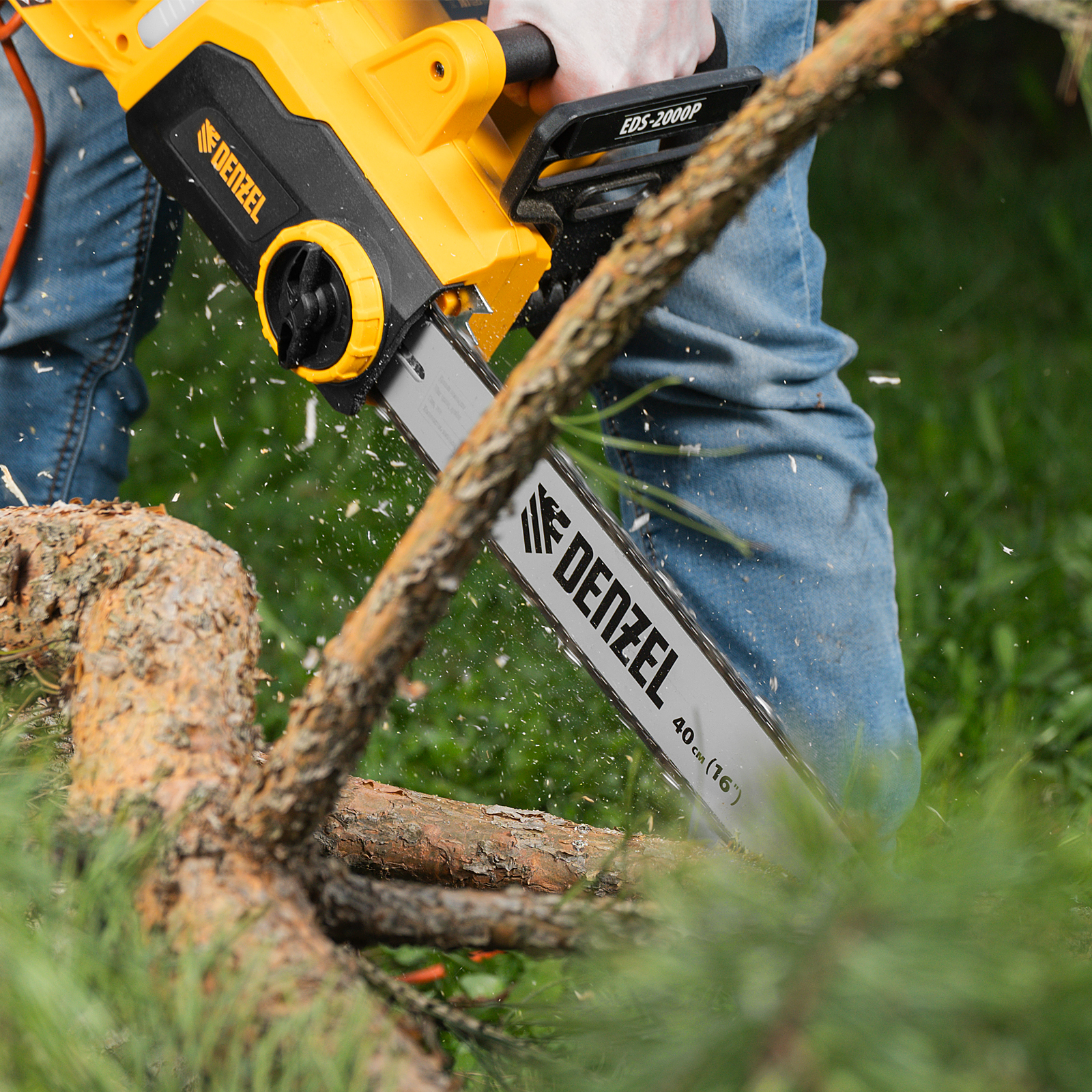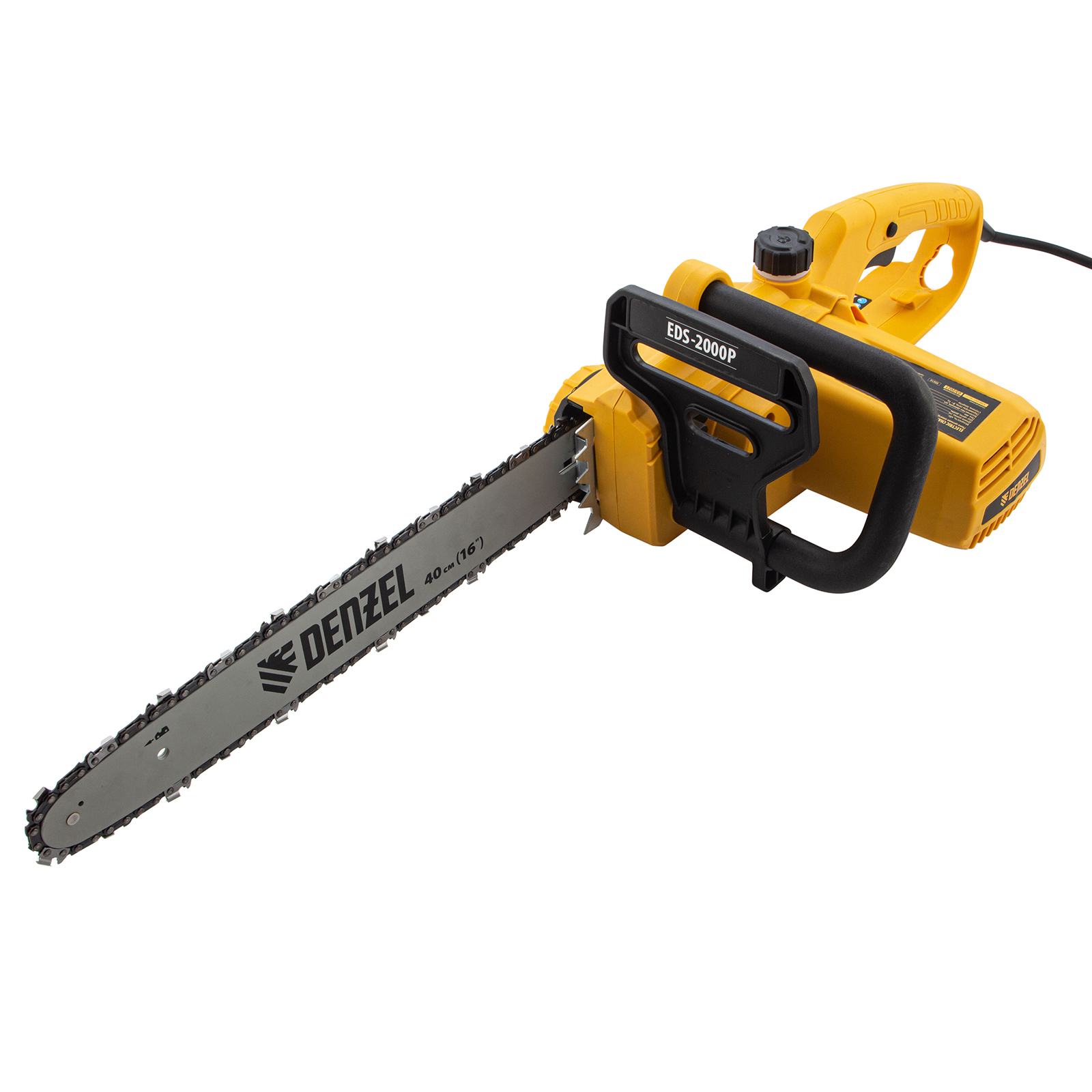 Цепная электропила Denzel EDS-2000P предназначена для заготовки дров, распиливания готовых материалов, подравнивания ветвей в саду, ремонта и частного строительства. Электромотор мощностью 2 кВт и 40-сантиметровая шина с остро заточенной цепью обеспечивают эффективное решение поставленных задач.,Пила работает от электросети и не производит вредных выбросов в окружающую среду, поэтому может эксплуатироваться в закрытых помещениях, например, в частных мастерских. Процесс запуска максимально упрощен — не нужно готовить топливную смесь, достаточно подключить пилу к электросети и она будет готова к работе.