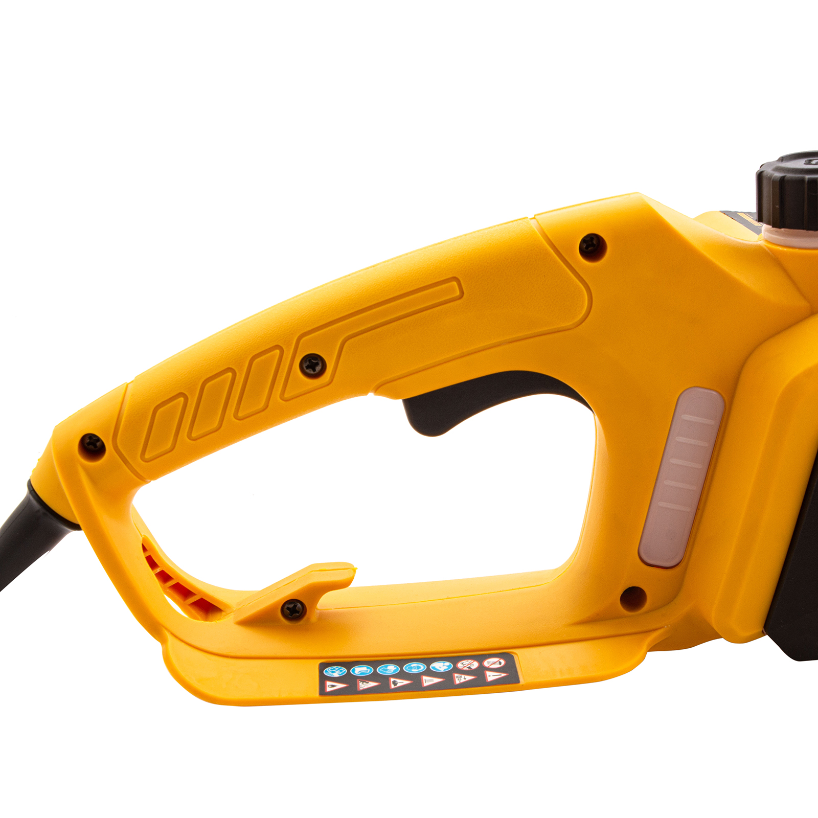 - Держатель кабеля — удлинитель фиксируется с помощью специального крючка на задней рукоятке, поэтому исключается риск его попадания под шину и травмирования пользователя.