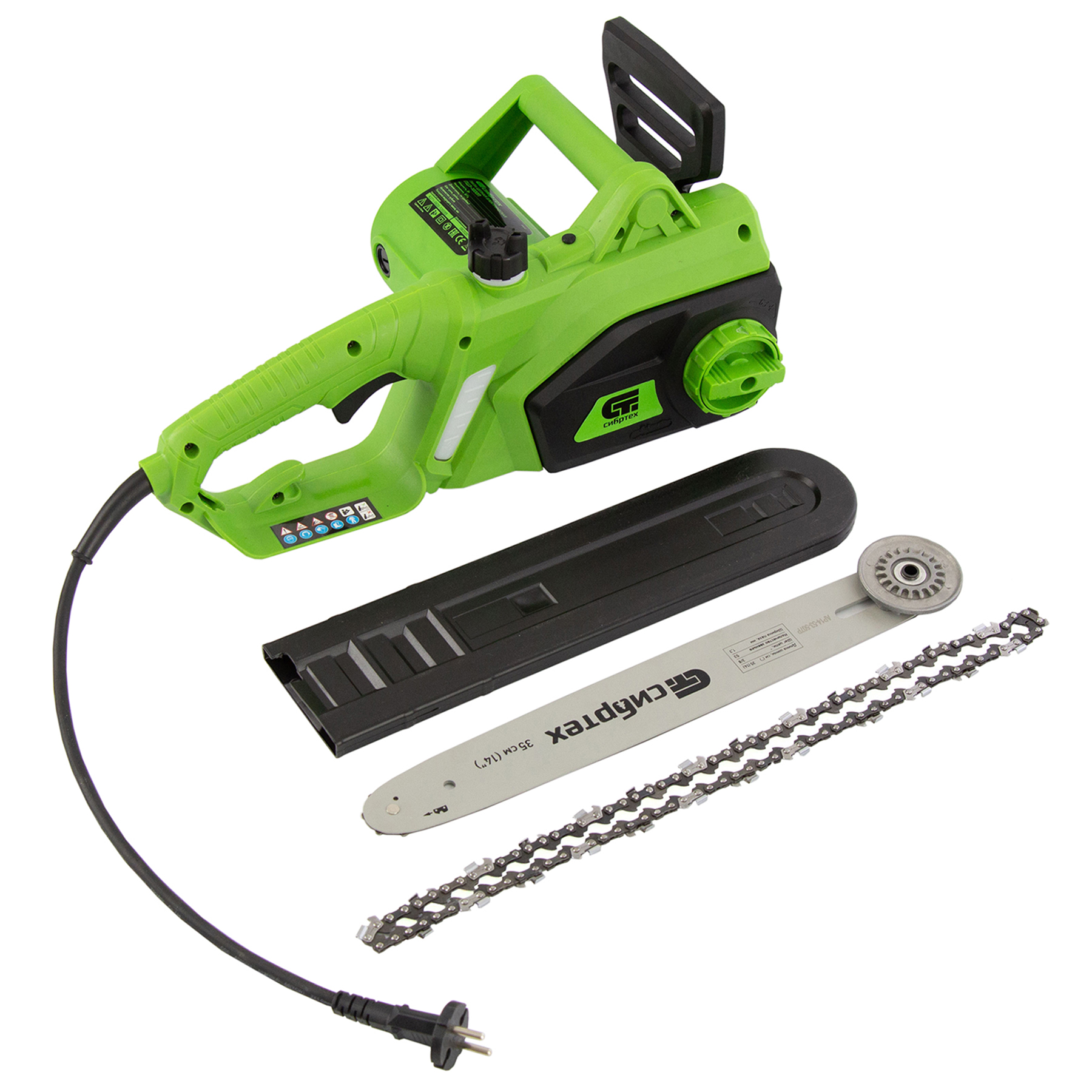 - Бесключевое натяжение цепи — регулировка осуществляется вручную при помощи винта на боковой части корпуса, использование инструментов не требуется.
