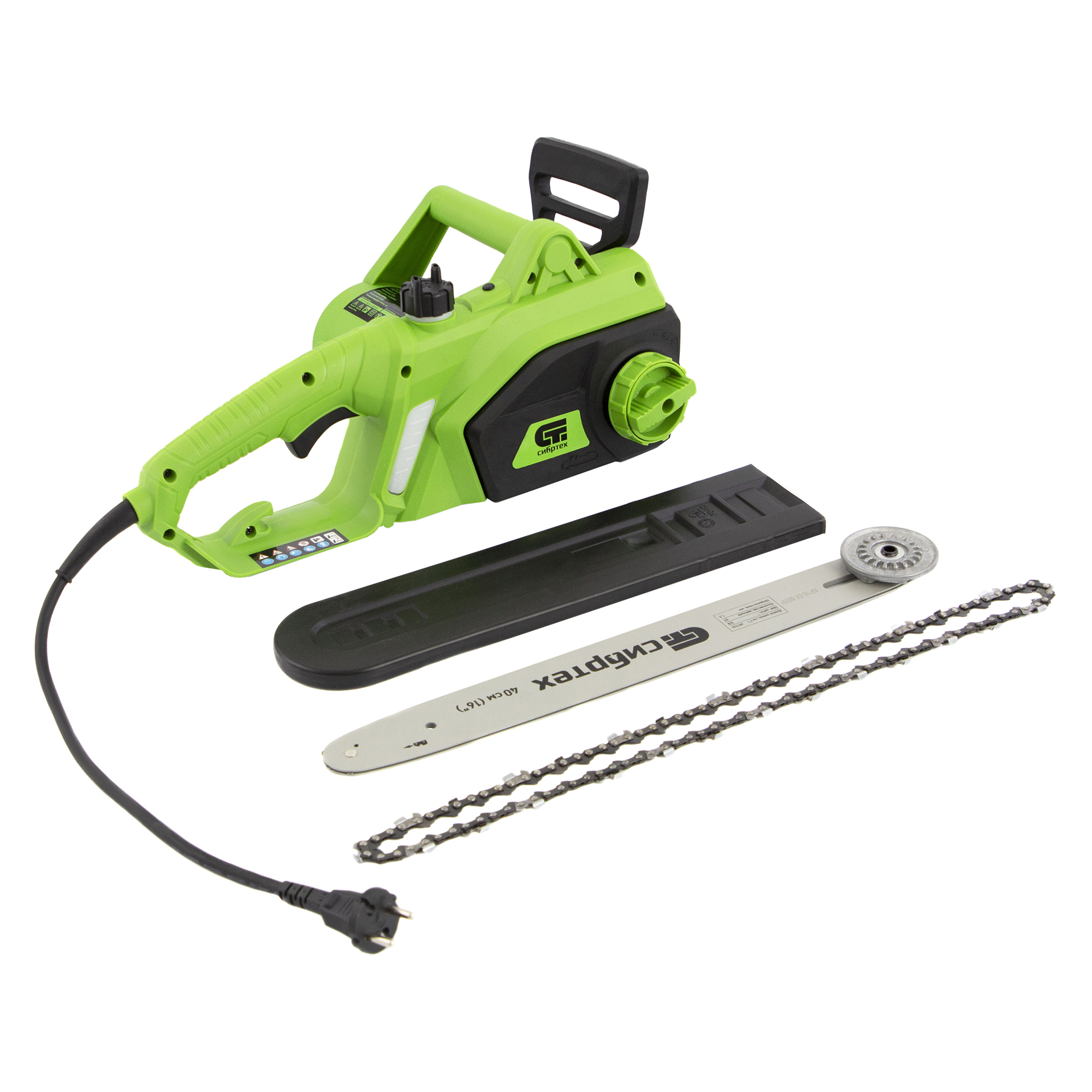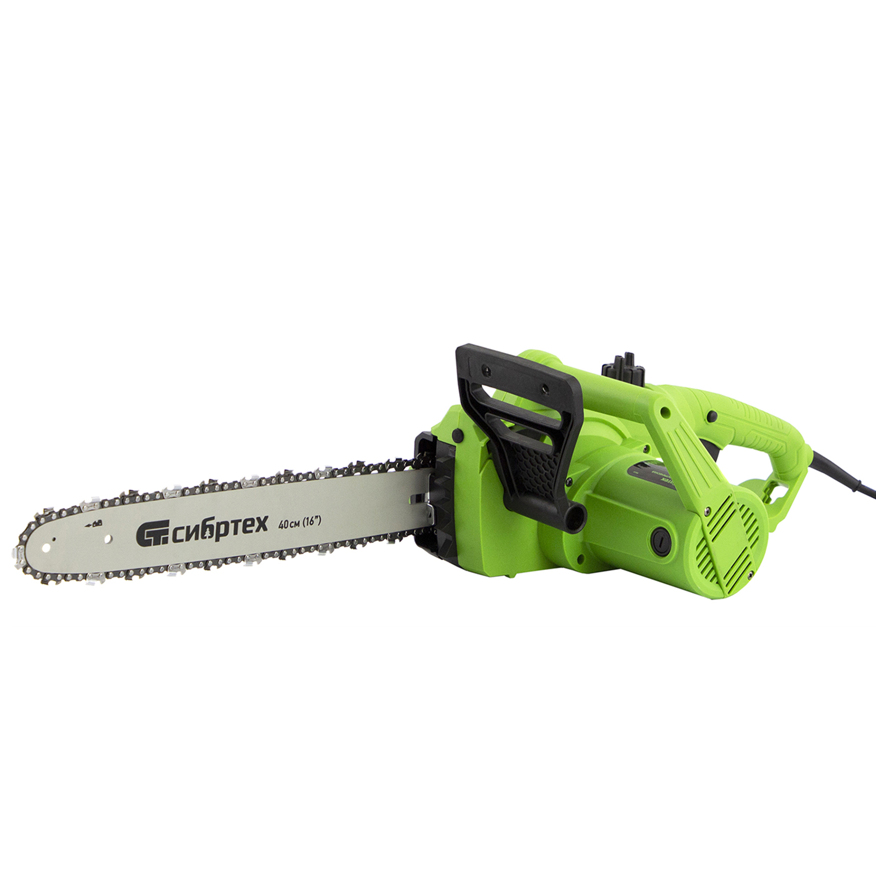 Электрическая цепная пила Сибртех ПЦЭ-2000П 95613 мощностью 2,0 кВт, с поперечным двигателем, комплектуется шиной длиной 16'' (40 см). Скорость движения цепи 13,5 м/с позволяет эффективно справляться с распилом деревянных заготовок, благоустройством дачного участка, ремонтом и частным строительством.,Пила абсолютно экологична, потому что не производит выхлопов в окружающую среду. Электродвигатель экономит время на техническое обслуживание — не нужно готовить топливную смесь и беспокоиться о ее количестве в баке. Инструмент отличается низким уровнем шума по сравнению с бензиновыми моделями, поэтому мастеру будет комфортно работать как на открытых участках, так и в помещениях.