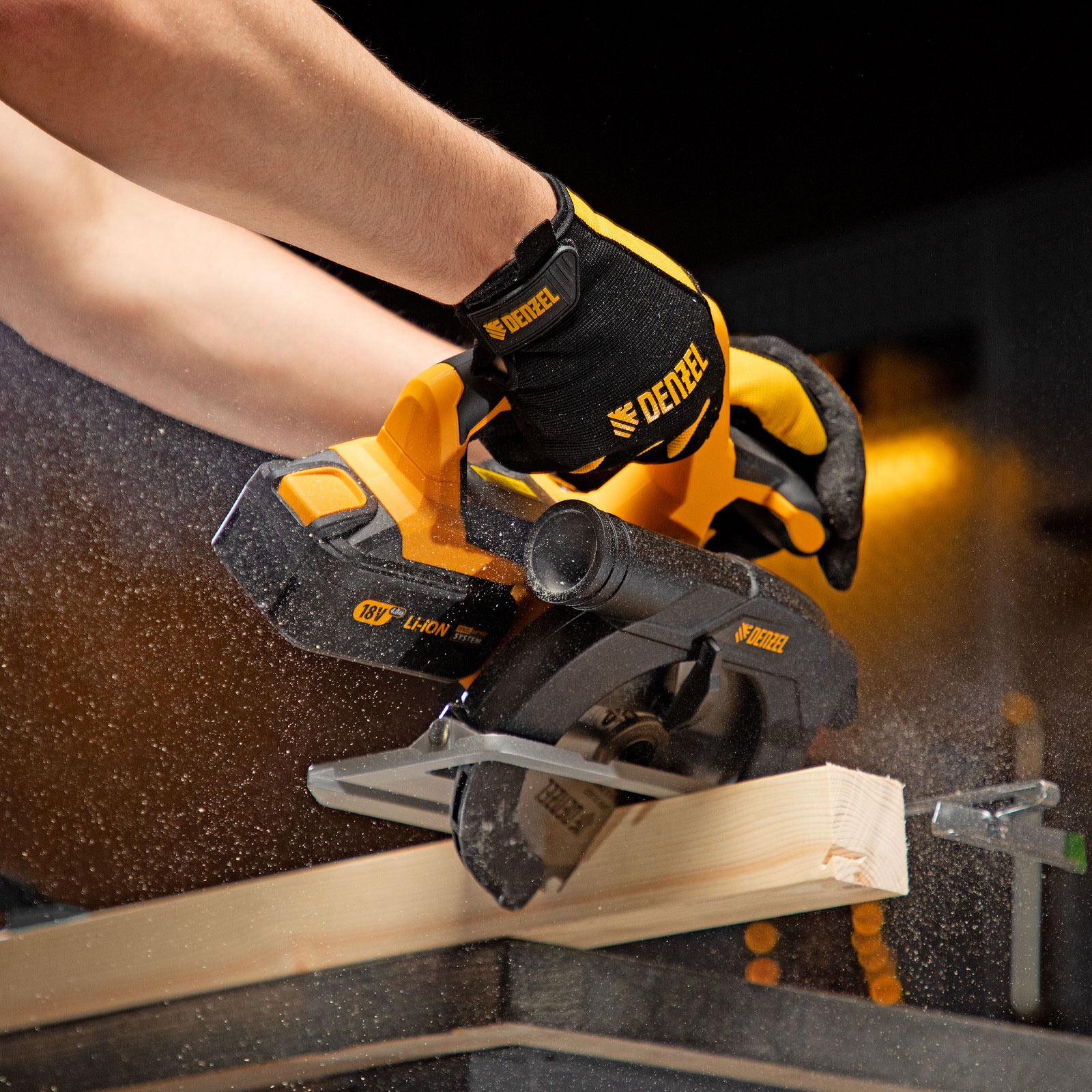 Пила поставляется без АКБ и зарядного устройства, для ее питания подойдет универсальный аккумулятор емкостью 4 А·ч, совместимый с любым инструментом, работающим на единой аккумуляторной платформе Denzel battery system 18V.
