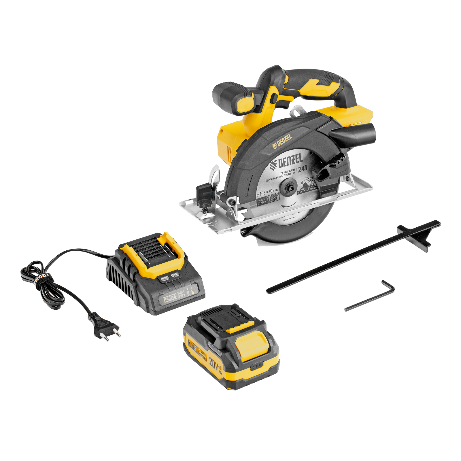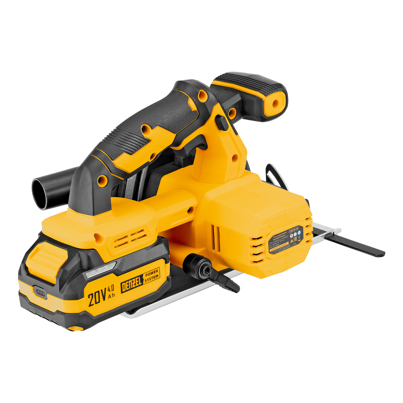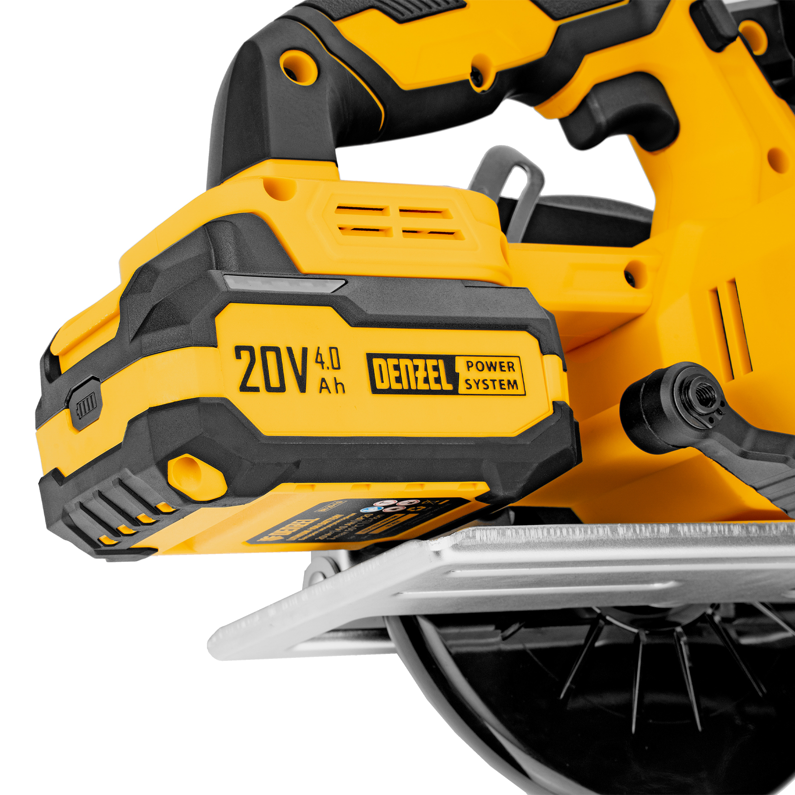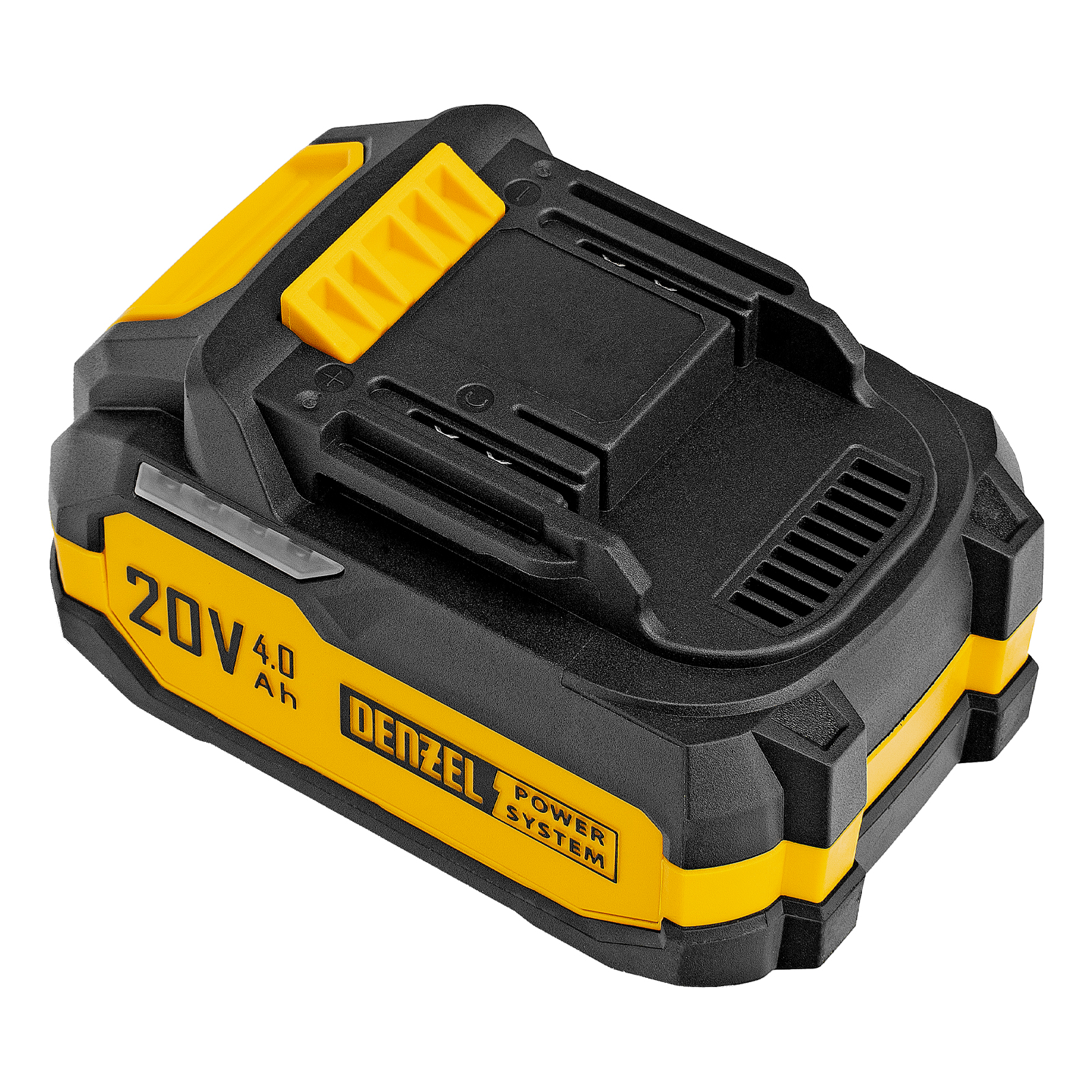 - Универсальный источник питания — аккумулятор Li-Ion емкостью 4 А·ч совместим со всеми инструментами единой платформы Denzel Power System 20V.