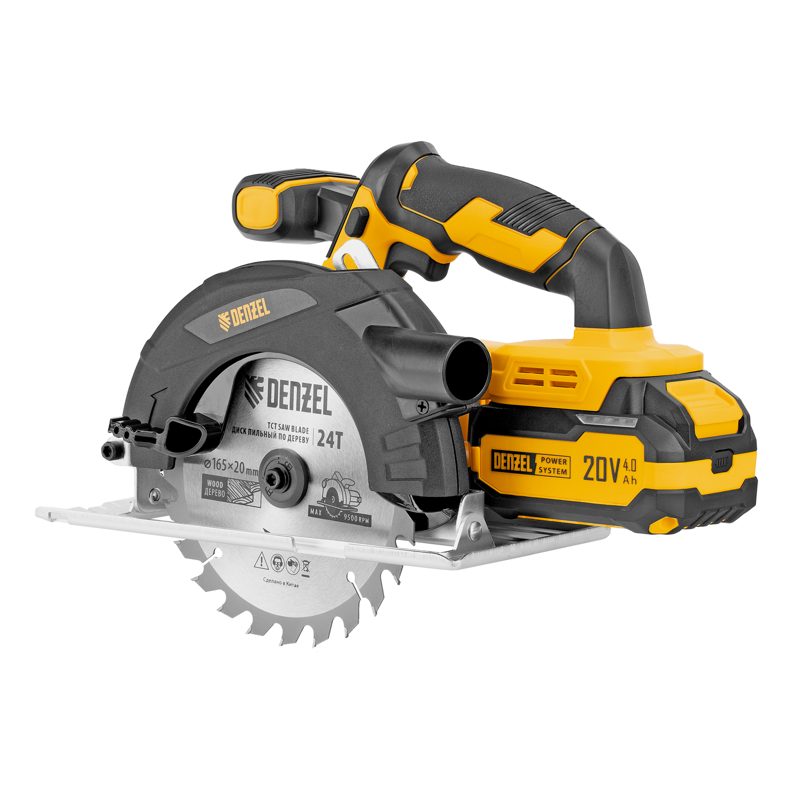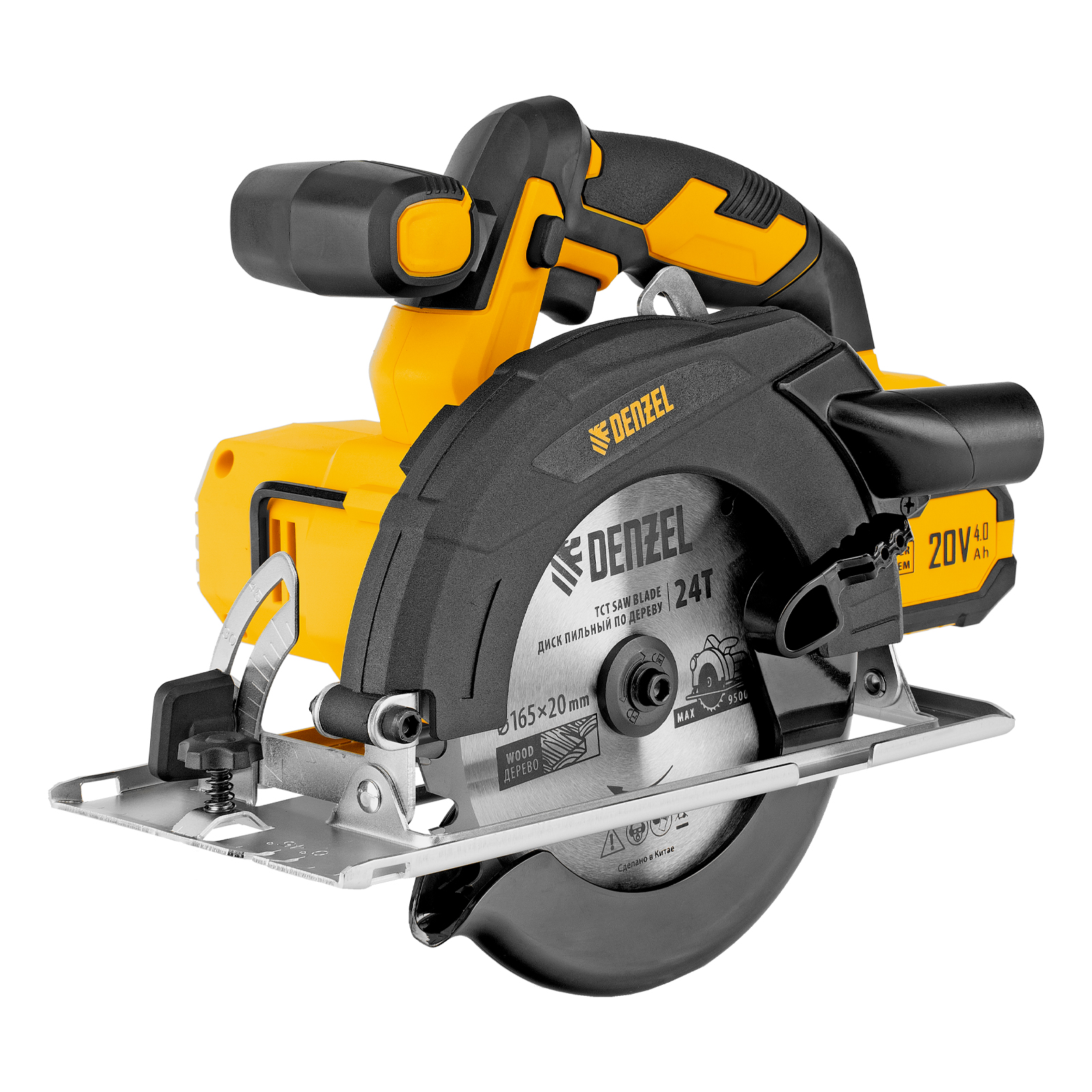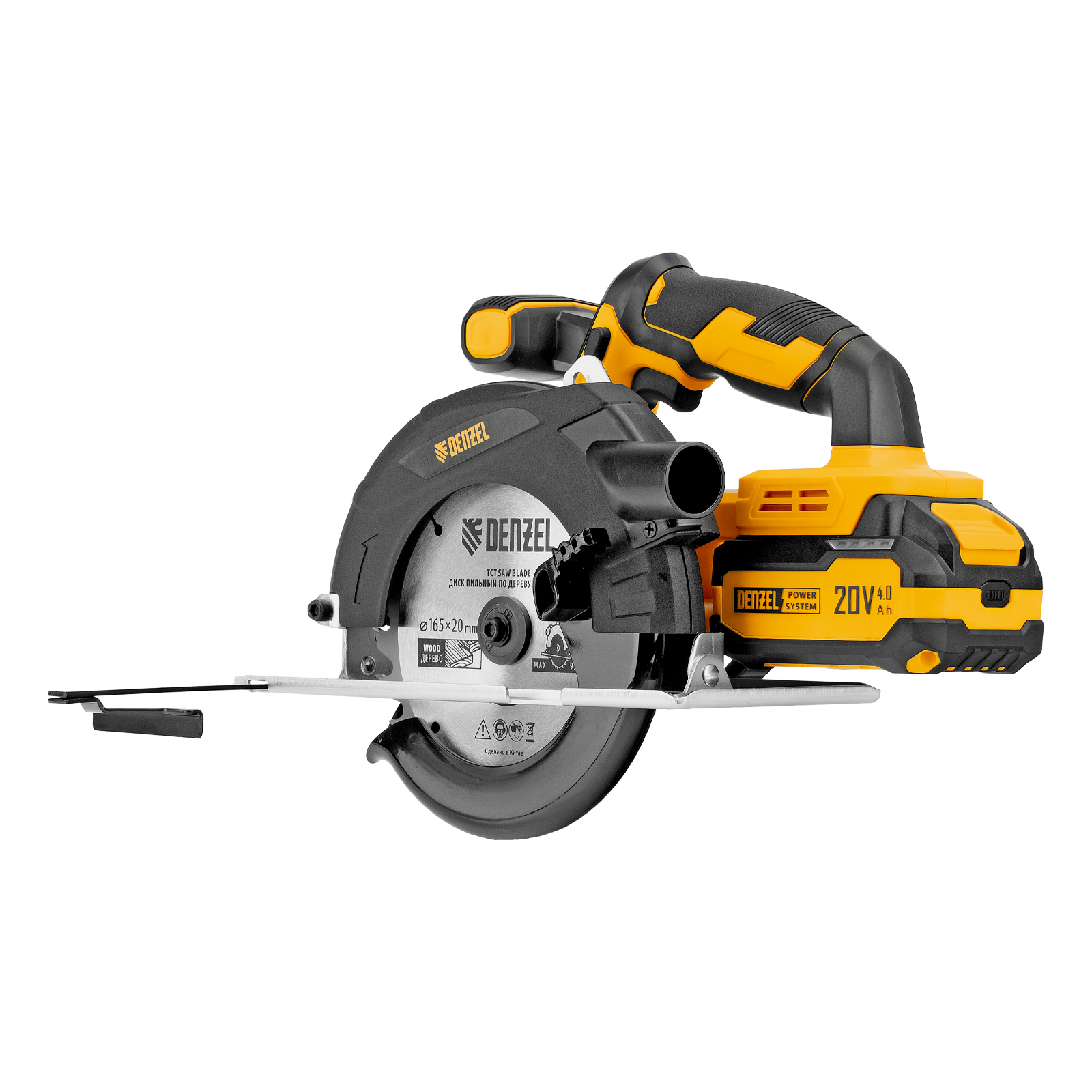 - Универсальный источник питания — аккумулятор Li-Ion емкостью 4 А·ч совместим со всеми инструментами единой платформы Denzel Power System 20V.