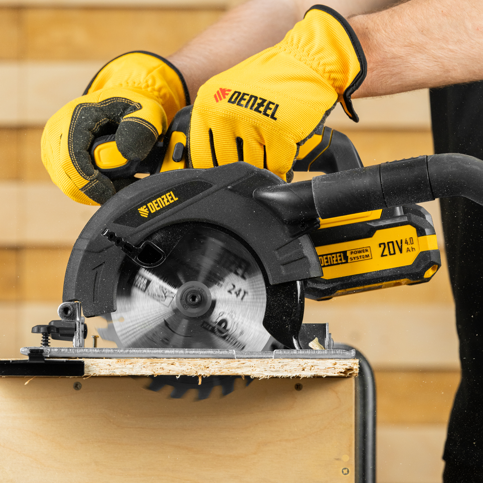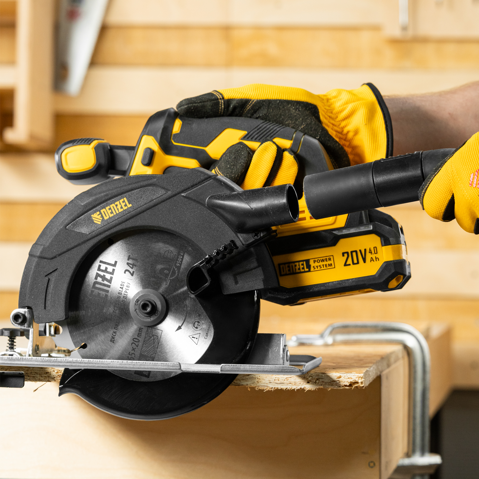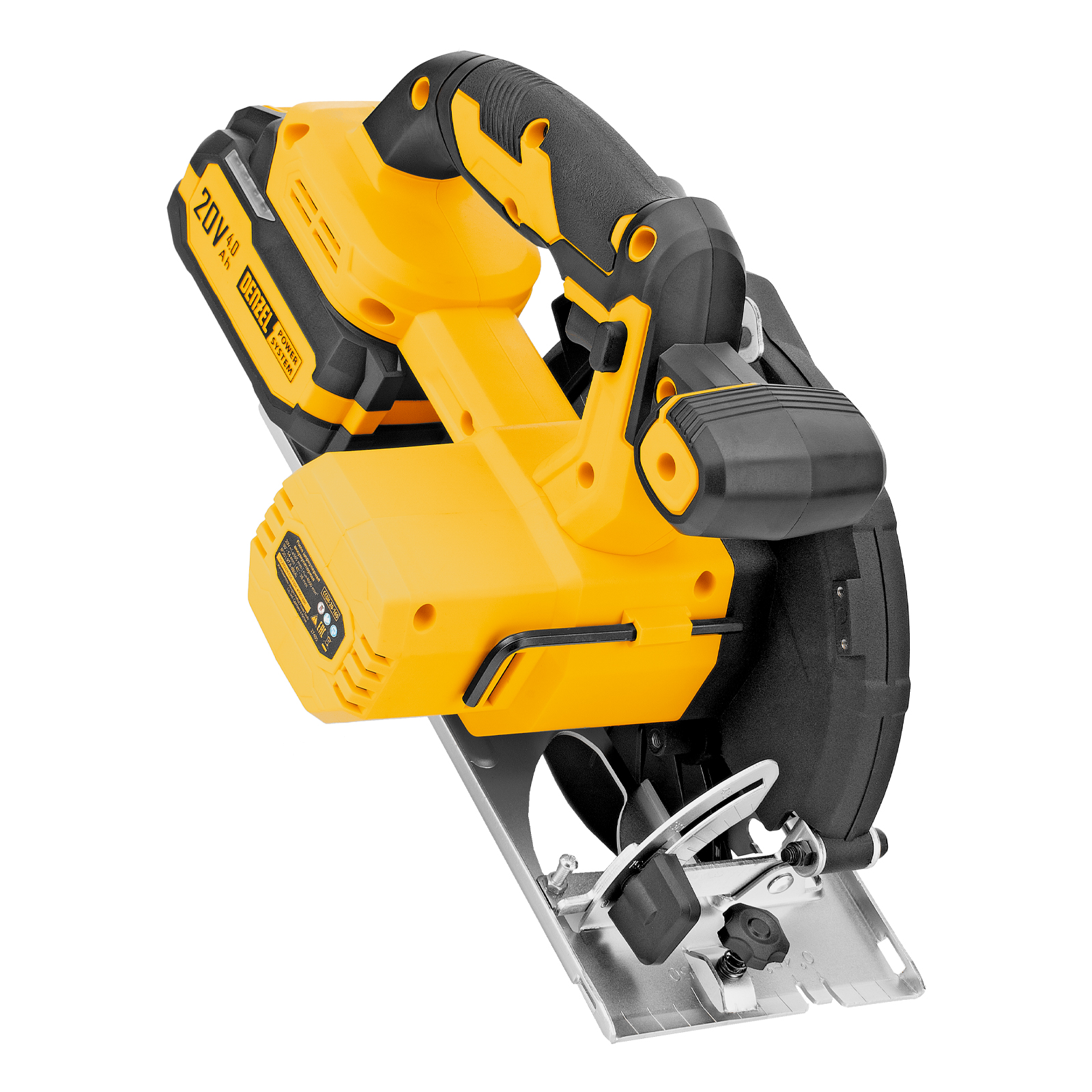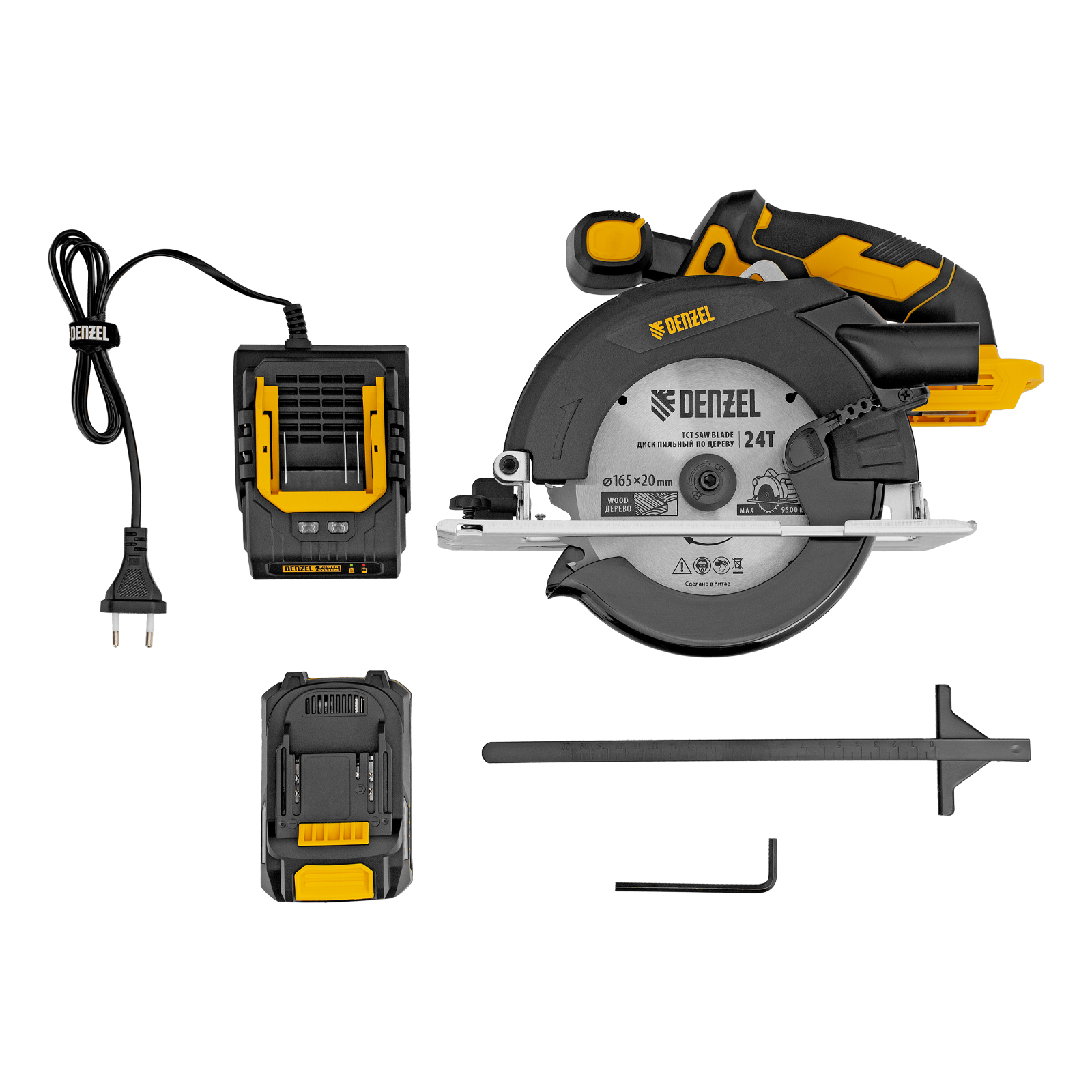 - Универсальный источник питания — аккумулятор Li-Ion емкостью 4 А·ч совместим со всеми инструментами единой платформы Denzel Power System 20V.