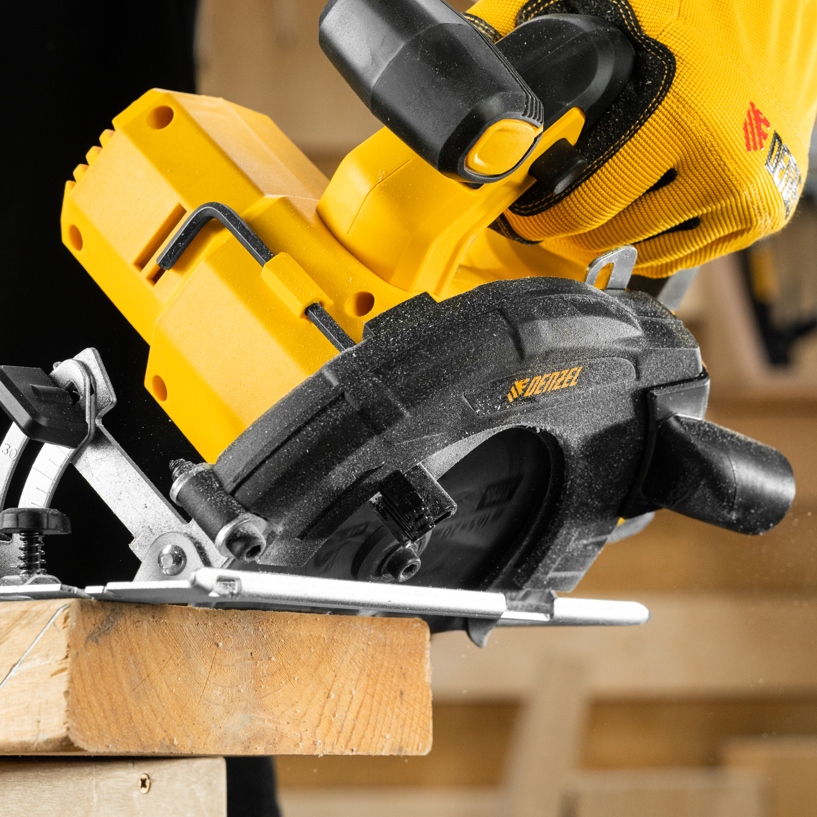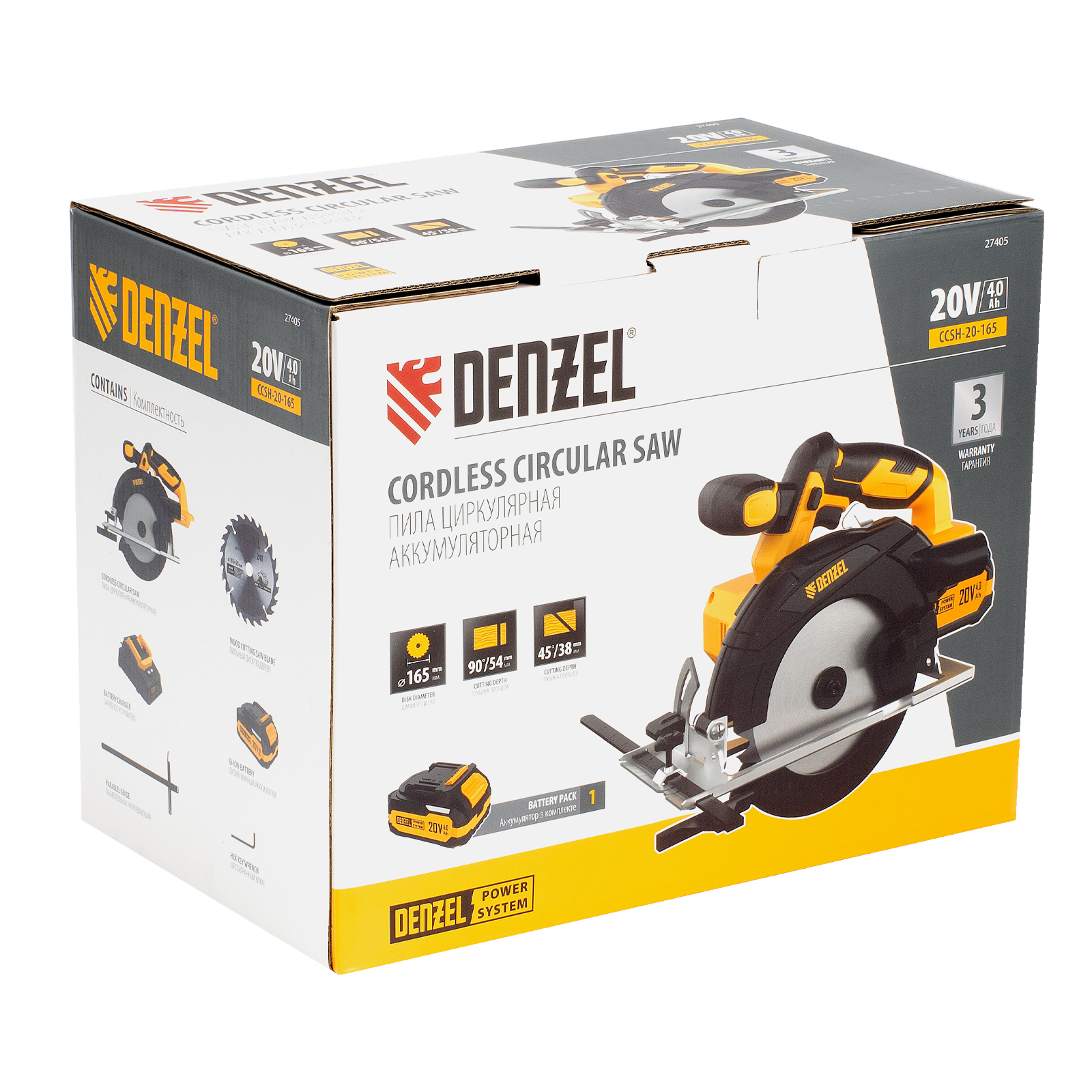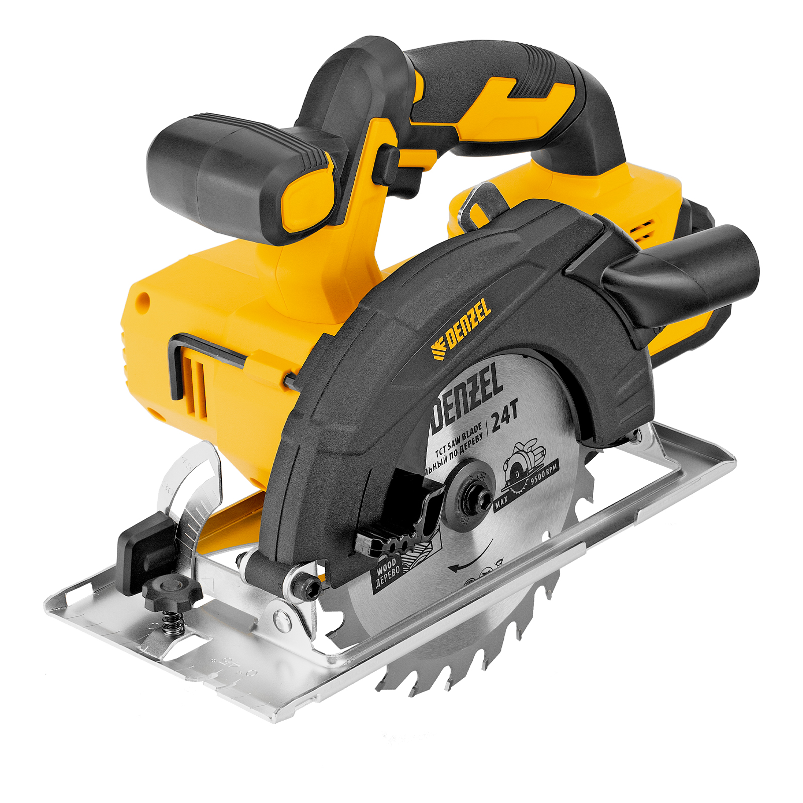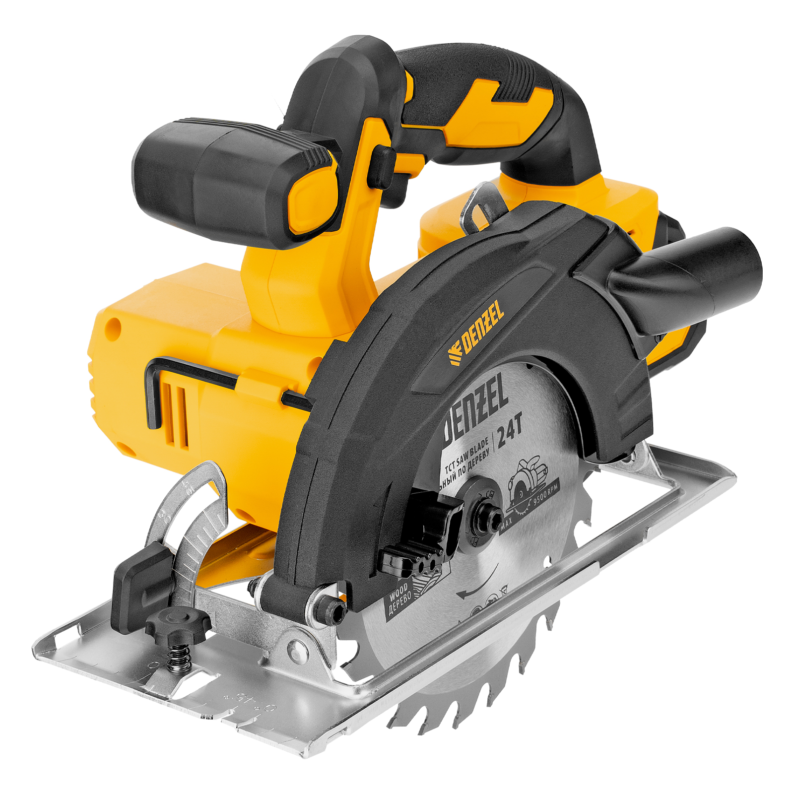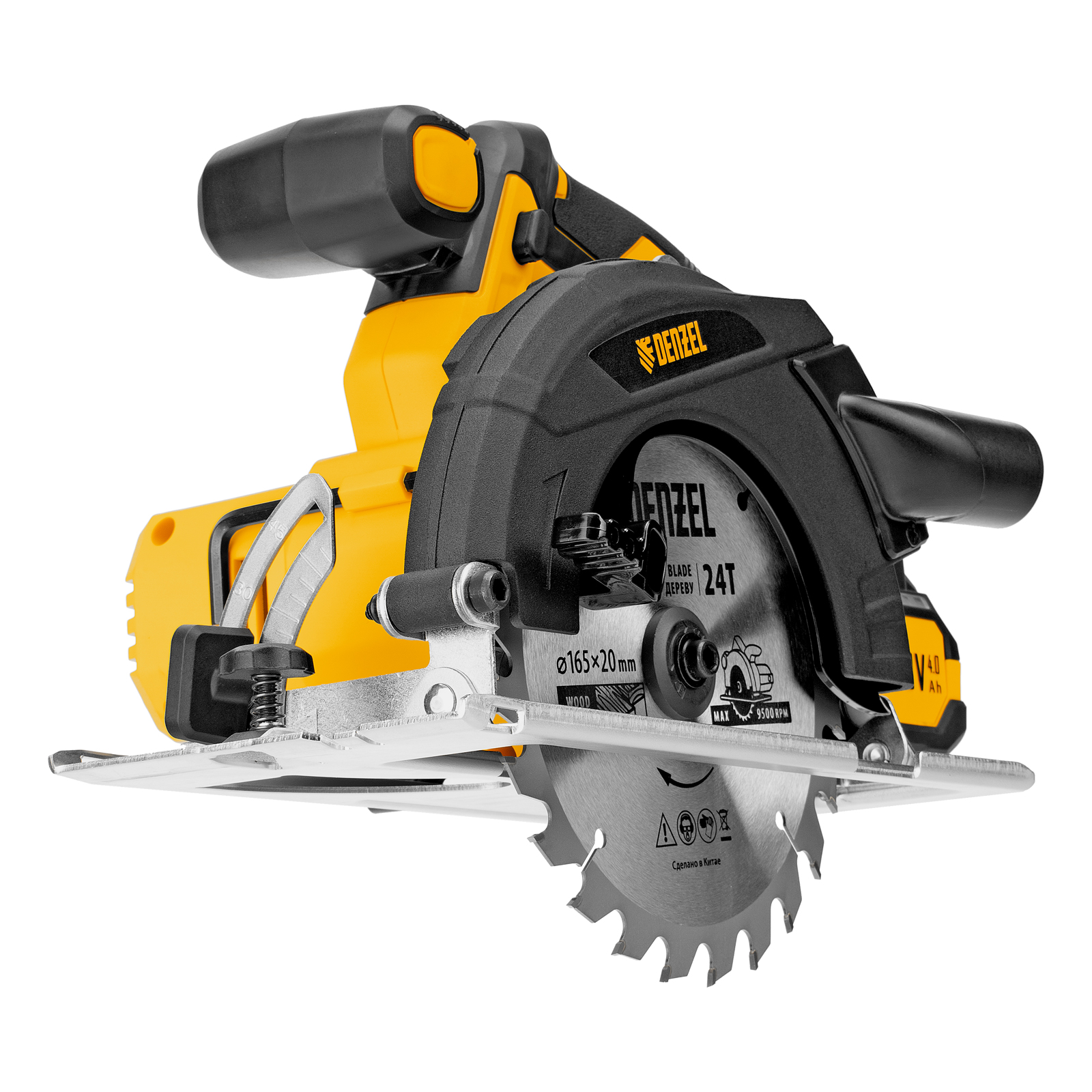 Циркулярная аккумуляторная пила Denzel CCSH-20-165 27405 работает от источника питания Li-Ion 20 В и совместима с пильными дисками диаметром 165 мм. Предназначена для прямого и поперечного реза древесины, также подходит для работы с алюминиевыми заготовками (при использовании соответствующей оснастки). Частота вращения шпинделя составляет 4000 об/мин, что позволяет эффективно решать поставленные задачи. Глубина пропила регулируется и достигает 54 мм под углом 90° и 38 мм под углом 45°. Инструмент оптимален для бытового применения.