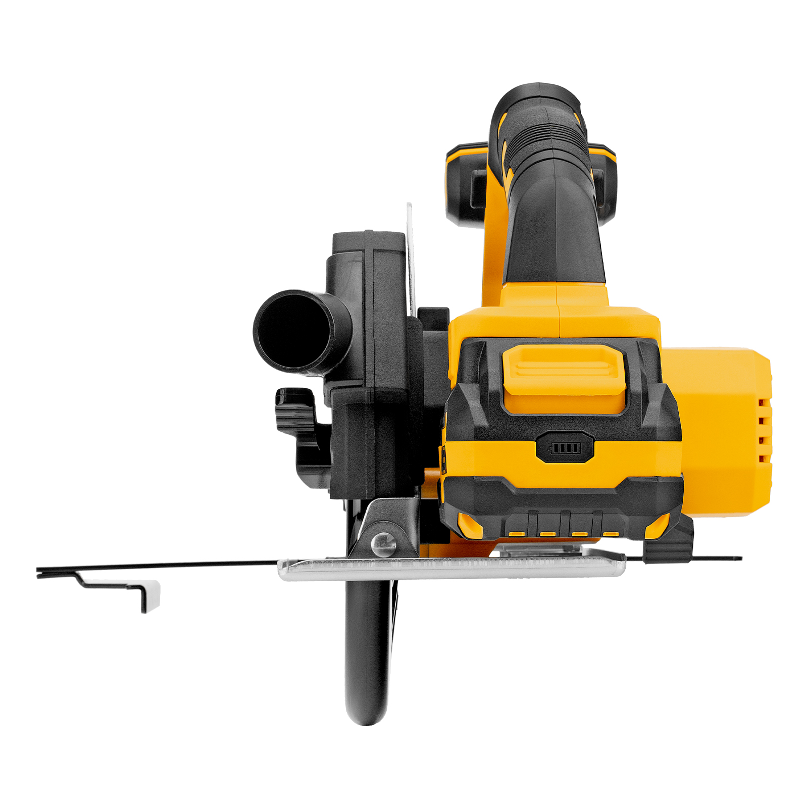 - Продуманная комплектация — пила поставляется с аккумулятором, зарядным устройством, пильным диском, параллельной направляющей и шестигранным ключом.