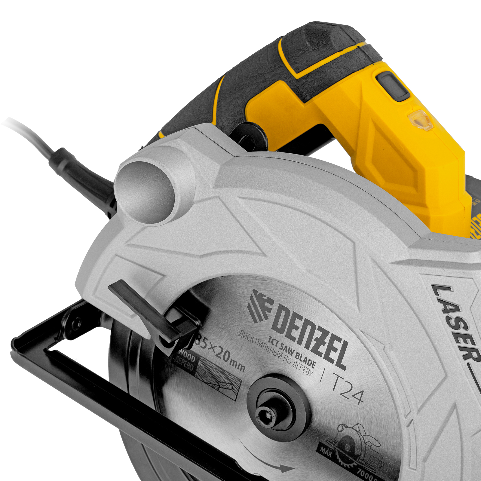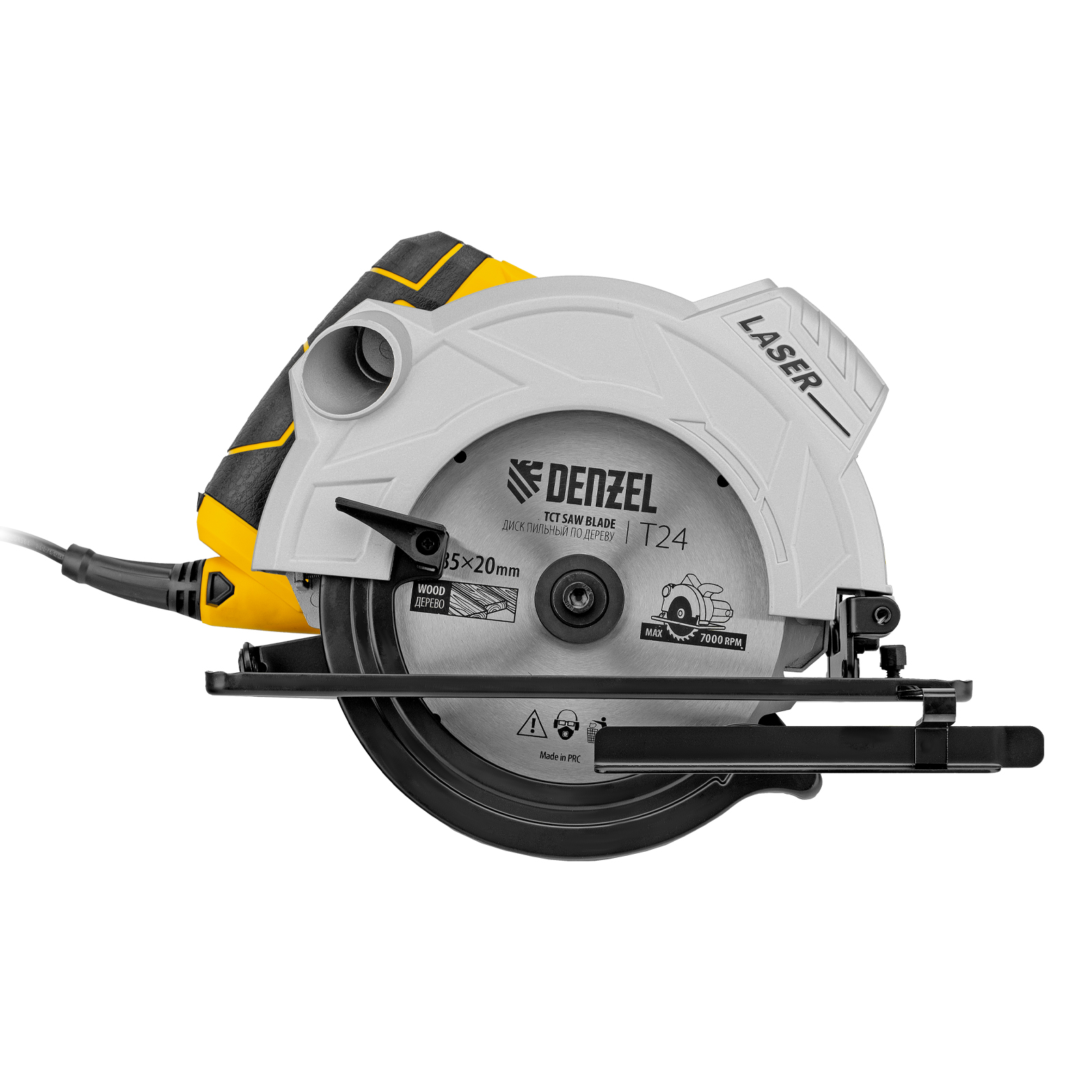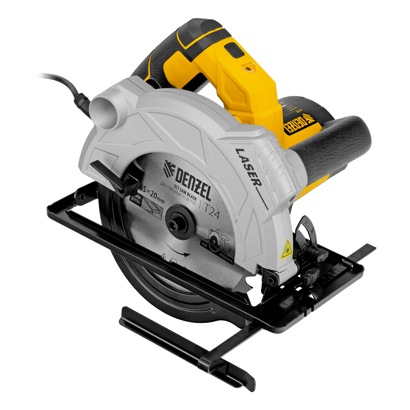 Циркулярная пила Denzel CS-185 27303 мощностью 1500 Вт с пильным диском диаметром 185 мм предназначена для раскроя фанеры, быстрого прямого реза листового материала на основе древесины, ДСП и ДВП.,Двигатель мощностью 1,5 кВт обеспечивает частоту вращения пильного диска 5800 об/мин. Высокая скорость работы позволяет выполнять более аккуратные и ровные срезы в сравнении с менее быстрыми аналогами. С помощью специального рычага легко регулировать глубину пропила от до 65 мм.