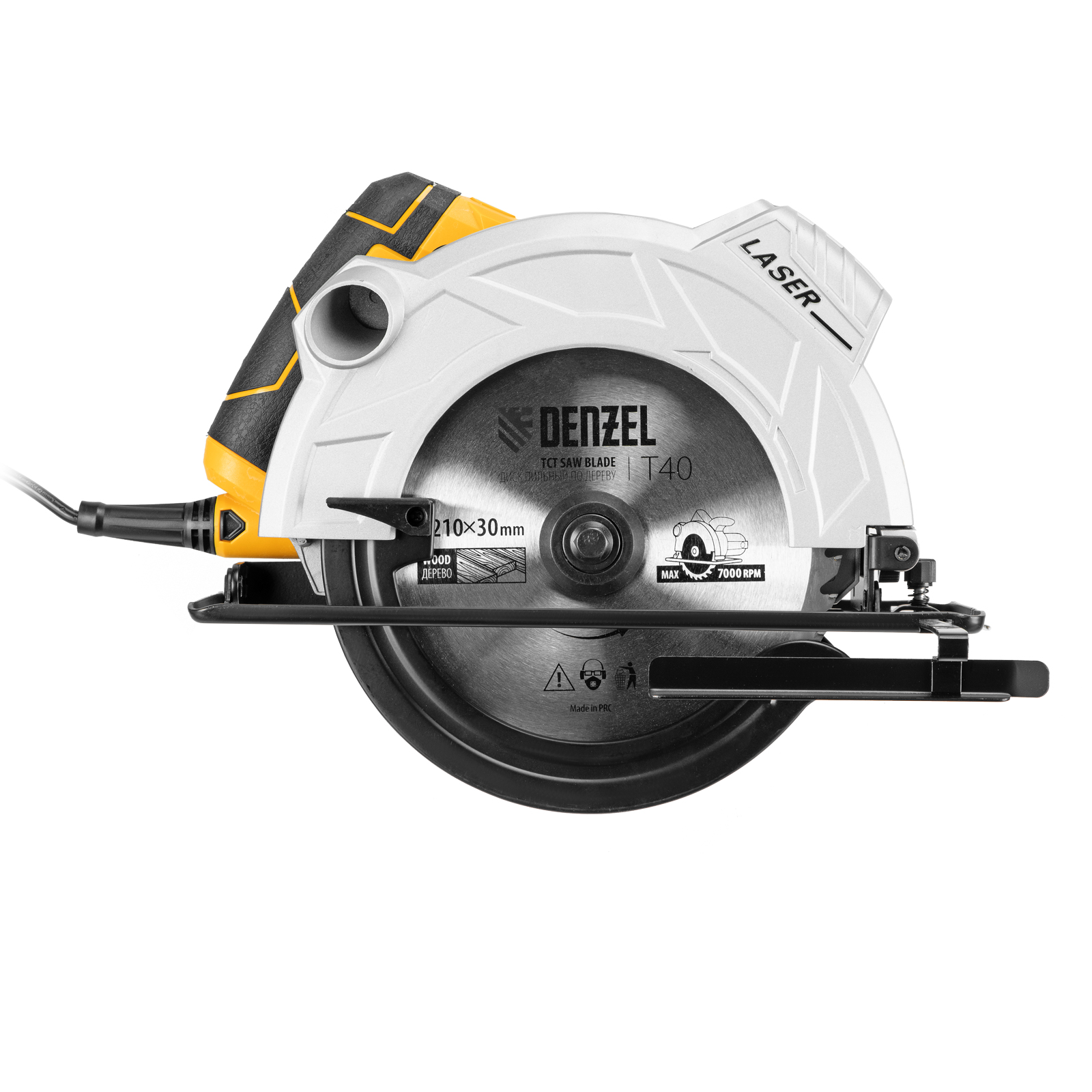 Циркулярная пила Denzel CS-210 27305 — мощная и производительная, имеет максимальную глубину реза в линейке Denzel CS — 73 мм, что обеспечивает эффективную работу с досками, фанерой, ДСП и другими листовыми древесными материалами.,Справляться с поставленными задачами помогают коллекторный двигатель мощностью 1,8 кВт, который обеспечивает частоту вращения 5000 об/мин, и пильный диск 210 х 3 мм. Глубина пропила регулируется до 73 мм, что позволяет работать с материалами разной толщины.