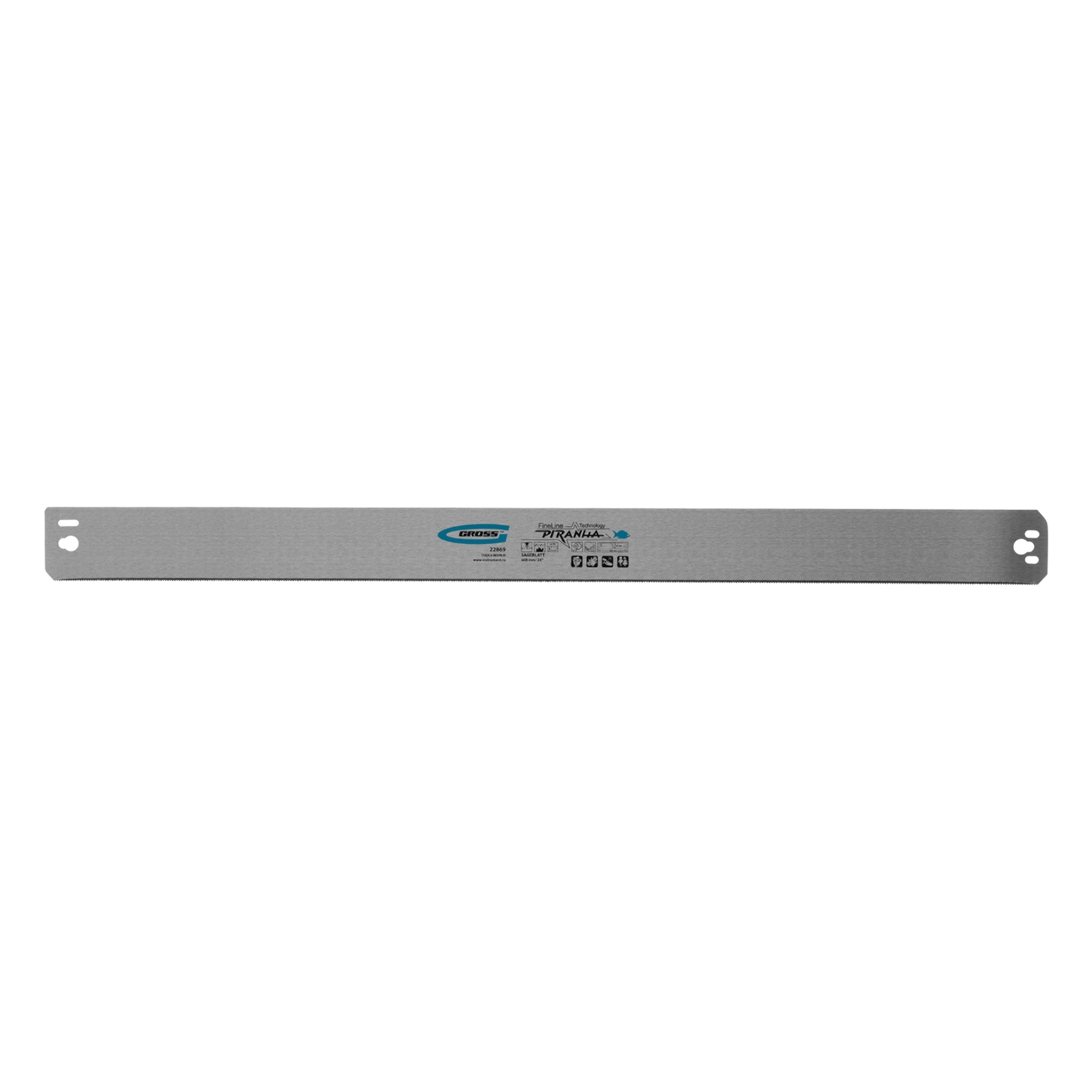 Пильное полотно Gross «PIRANHA» 22869 длиной 600 мм, с каленым зубом с 2D-заточкой, 18 TPI — режущий элемент для прецизионного стусла, применяемый для распила под углом заготовок из дерева, мягкого металла и пластика. Мелкие зубья с шагом 18 TPI позволяют получить точный и чистый рез. Полотно используется для пиления плинтусов, реек, дверных наличников и других деталей.