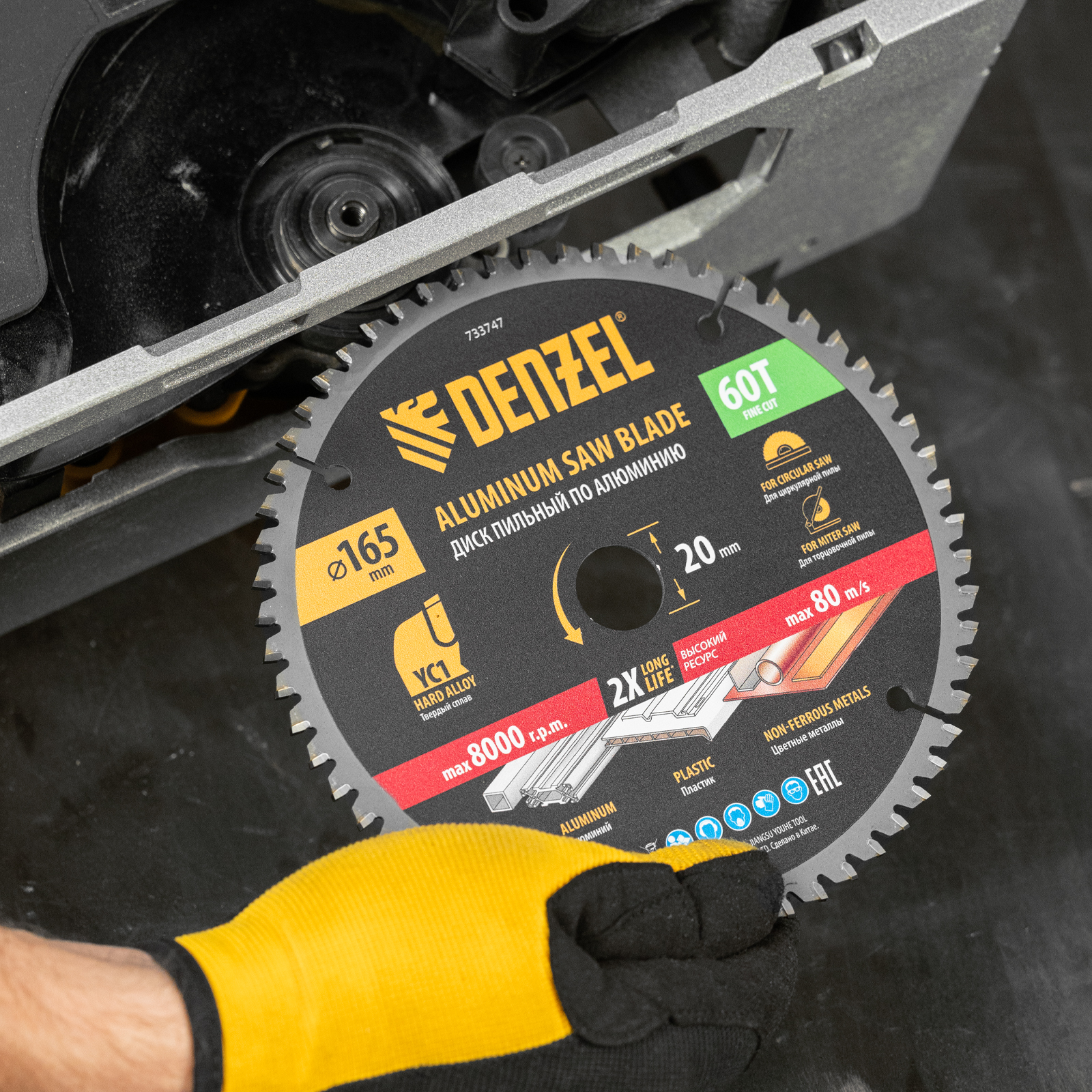 Пильный диск Denzel 733747 диаметром 165 x 20 мм, с 60 зубьями, предназначен для распиливания заготовок из алюминия, пластика, цветных металлов. Устанавливается на циркулярную или торцовочную пилу, поддерживающую максимальную частоту вращения 12000 об/мин, также возможно использование с распиловочным станком. Зубья трапециевидно-плоского типа (TCG) с отрицательным углом заточки обеспечивают ровный рез без сколов. В комплект поставки входит переходное кольцо 20/16 мм, позволяющее изменить посадочный диаметр при необходимости.