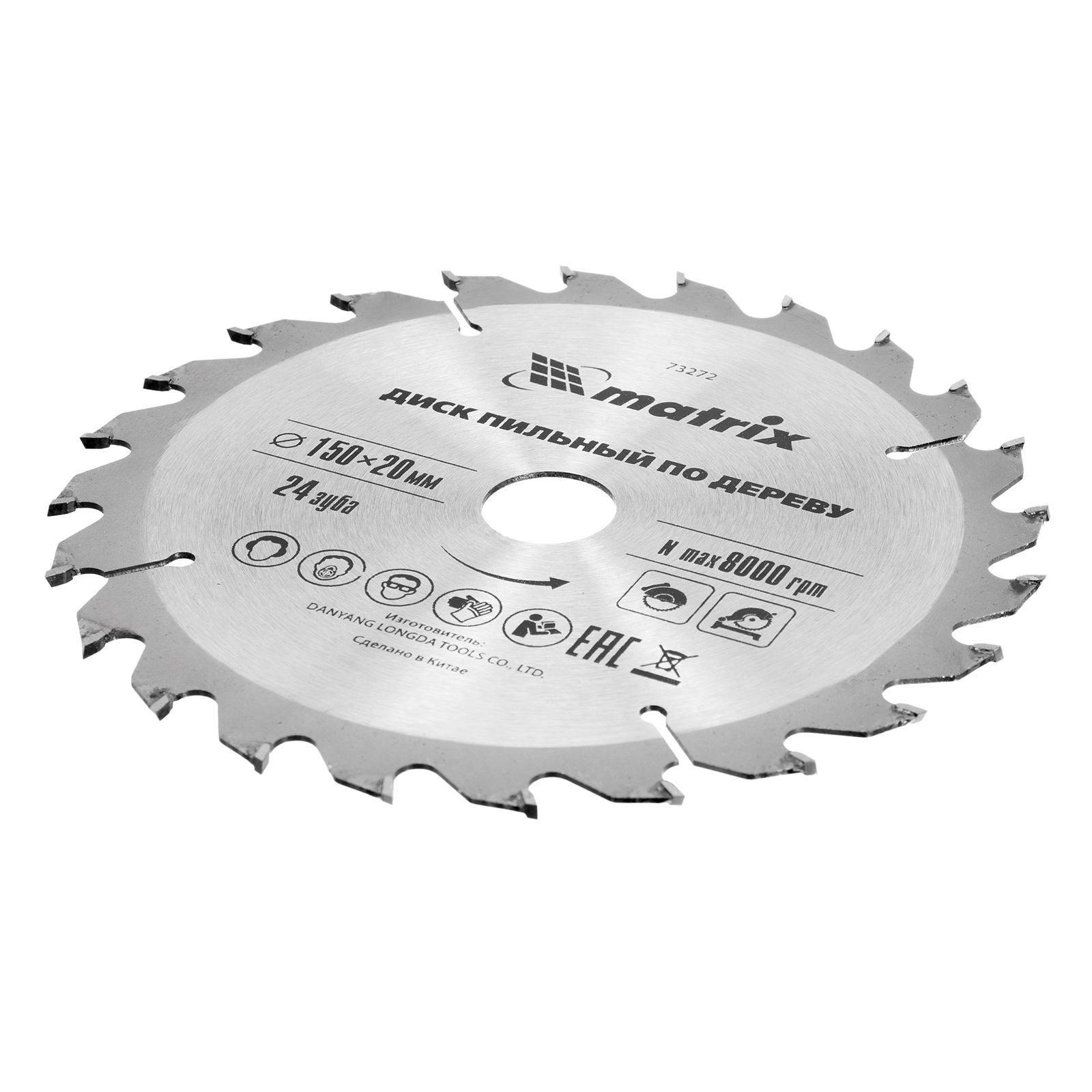 Пильный диск по дереву Matrix 73272 диаметром 150 х 20 мм, с 24 зубьями и переходным кольцом 20/16, — оснастка для циркулярных и торцовочных пил с соответствующим посадочным и внешним диаметром. Используется для продольного/поперечного реза материалов из мягкой и твердой древесины, ДСП, ДВП, фанеры, столярных плит. В комплект поставки входит переходное кольцо 20/16, позволяющее самостоятельно изменить посадочный диаметр при необходимости. Диск подходит для бытового и профессионального применения.