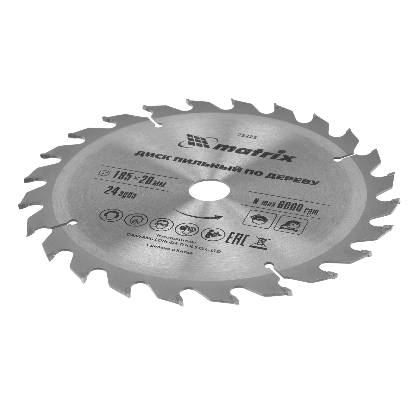 <p>Пильный диск по дереву Matrix 73223 диаметром 185 х 20 мм, с 24 зубьями и переходным кольцом 20/16, — оснастка для циркулярных и торцовочных пил с соответствующим посадочным и внешним диаметром. Используется для продольного/поперечного реза материалов из мягкой и твердой древесины, ДСП, ДВП, фанеры, столярных плит. В комплект поставки входит переходное кольцо 20/16, позволяющее самостоятельно изменить посадочный диаметр при необходимости. Диск подходит для бытового и профессионального применения.</p><h2>Преимущества</h2><ul><li>Быстрый рез — крупные зубья с попеременной заточкой обеспечивают высокую скорость работы.</li><li>Прочность и высокий ресурс — основание изготовлено из стали 65Mn, режущие пластины выполнены из сплава YG8 твердостью более 88 HRA, зубья прошли алмазную заточку.</li><li>Стабильная работа — компенсационные прорези снижают риск заклинивания диска.</li></ul>