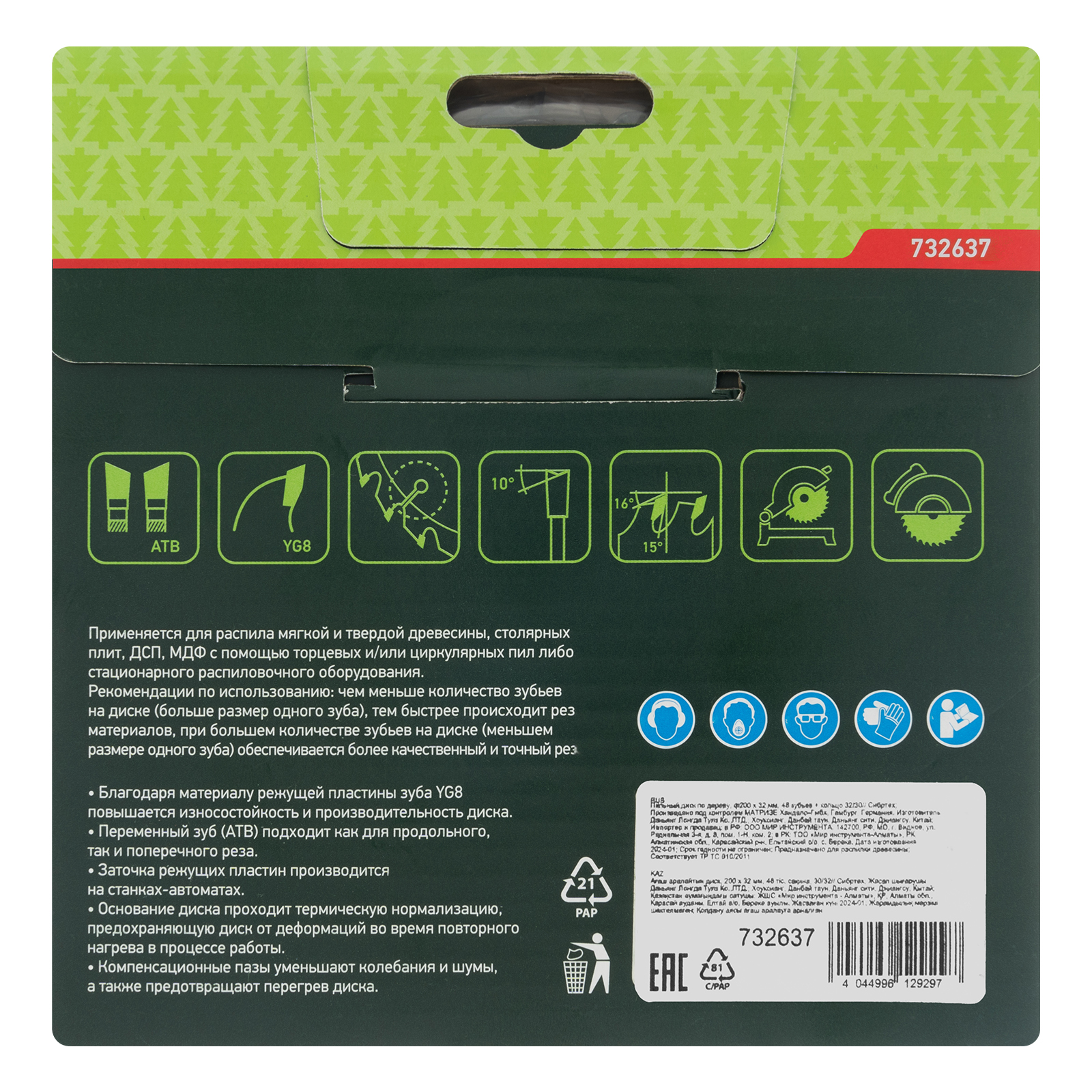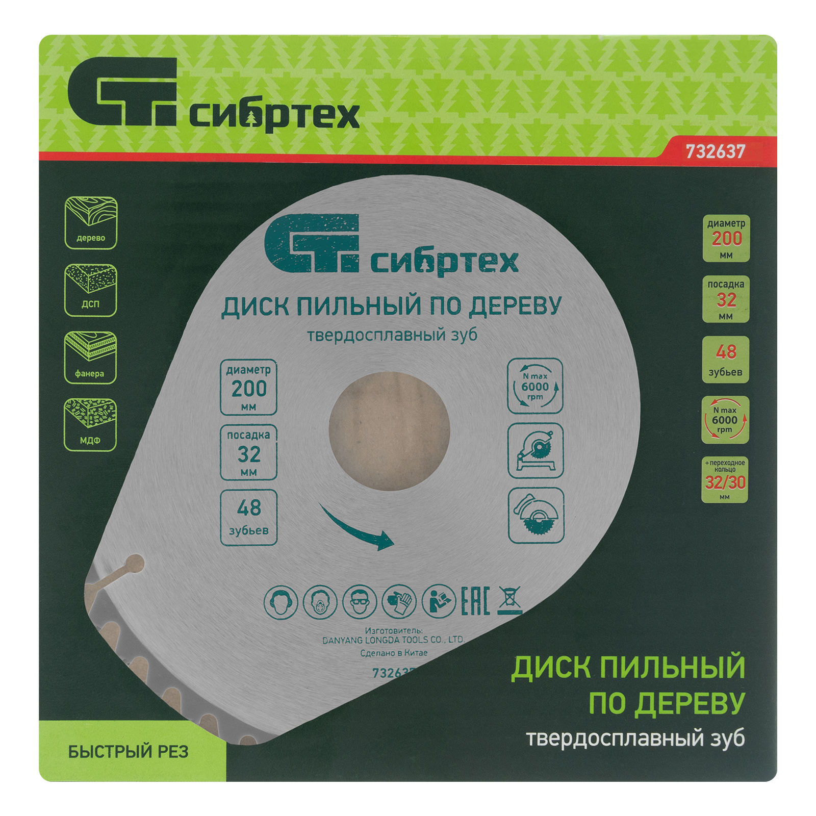 Пильный диск по дереву Сибртех 732637 диаметром 200 х 32 мм, с 48 зубьями и переходным кольцом 32/30, предназначен для быстрого распила древесины мягких и твердых пород, фанеры, ДСП, МДФ. Используется с циркулярными и торцовочными пилами с посадочным диаметром 32 мм. Переходное кольцо 32/30 позволяет при необходимости изменить размер посадки. Средние зубья позволяют добиться оптимального соотношения качества и скорости реза. Диск подходит для бытового применения.