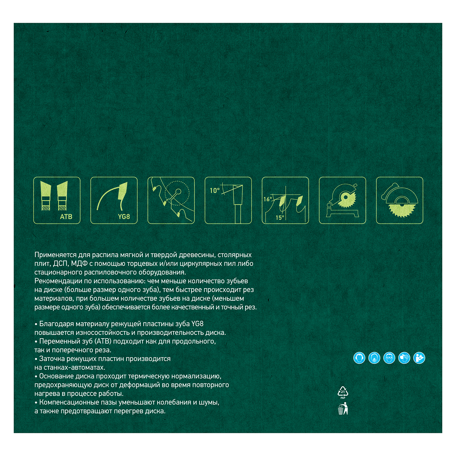 Стабильно качественный рез — диск пилит быстро и ровно за счет попеременной заточки зубьев, компенсационные пазы защищают диск от деформации в результате нагрева, предотвращая его заклинивание.