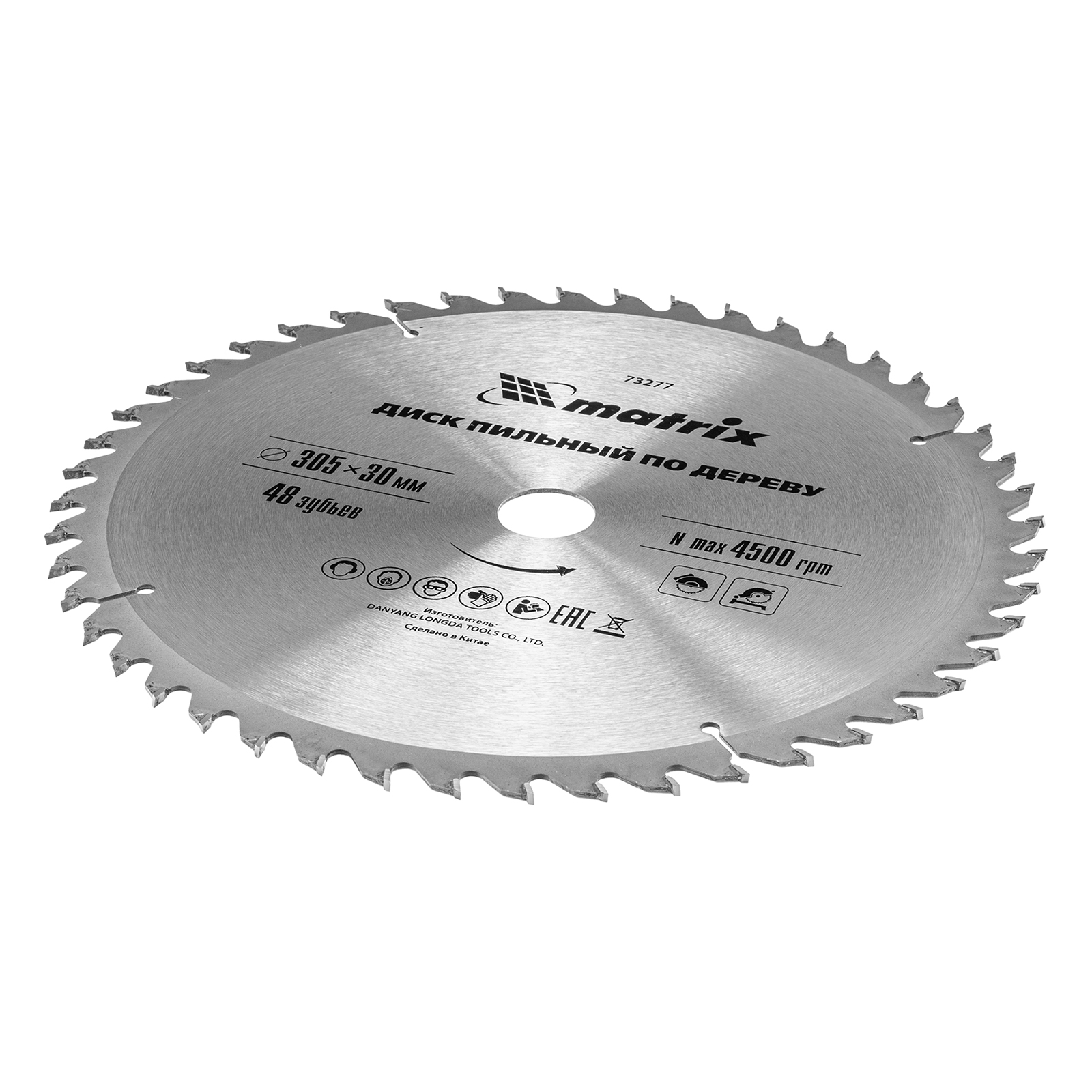 Пильный диск по дереву Matrix 73277 диаметром 305 х 30 мм, с 48 зубьями, — оснастка для циркулярных и торцовочных пил с соответствующим посадочным и внешним диаметром. Используется преимущественно для поперечного реза материалов из мягкой и твердой древесины, ДСП, ДВП, фанеры, столярных плит. Диск подходит для бытового и профессионального применения.
